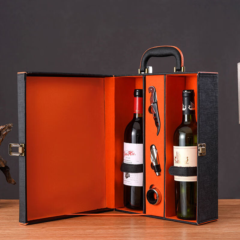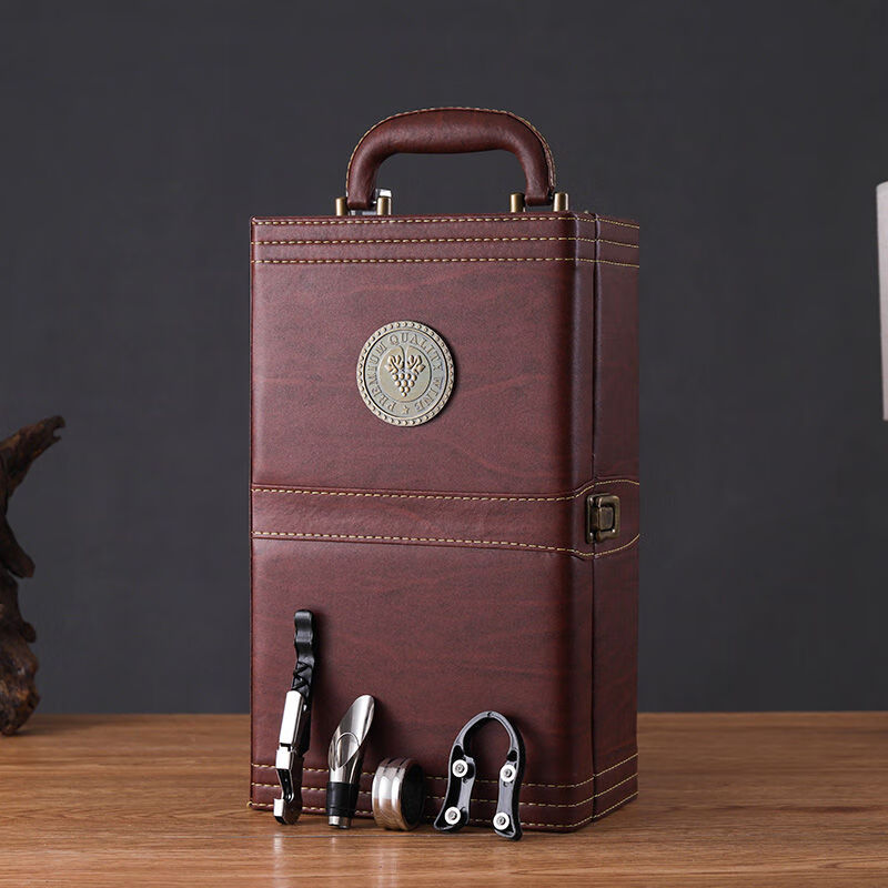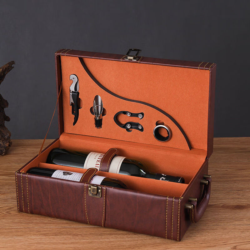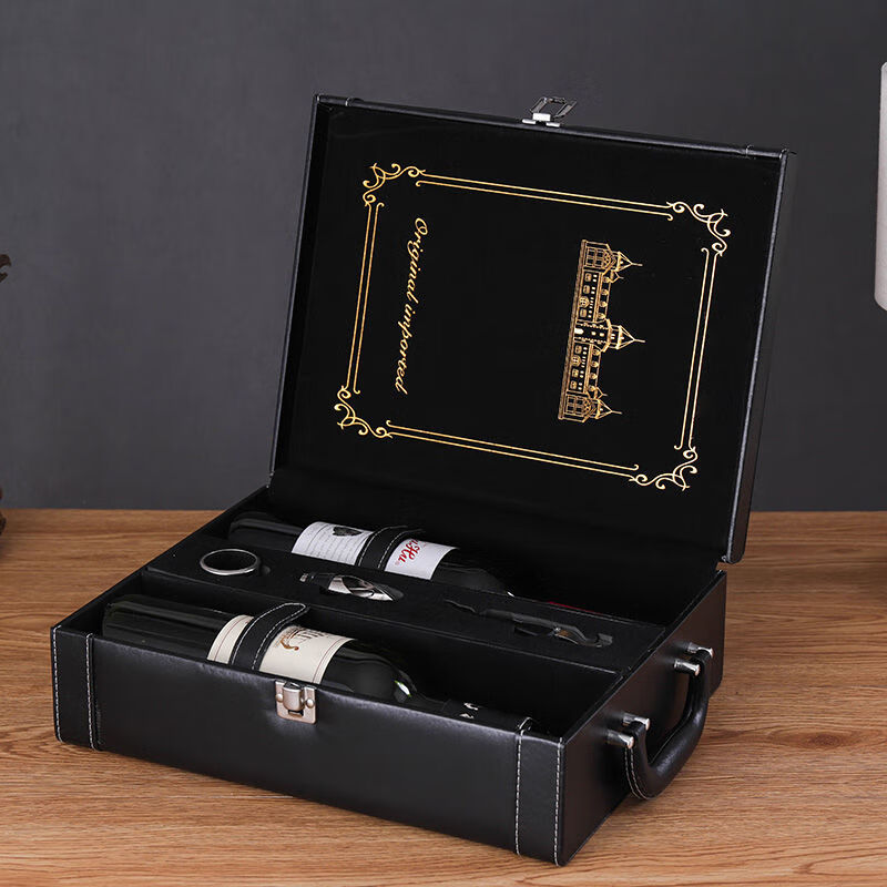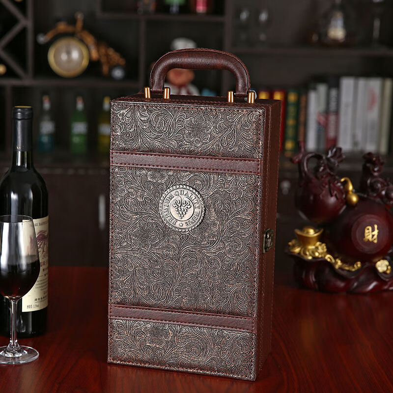 Fantasy red wine packaging gift box single and double leather boxes 2 red wine boxes wine red wine gift box antique widened double style