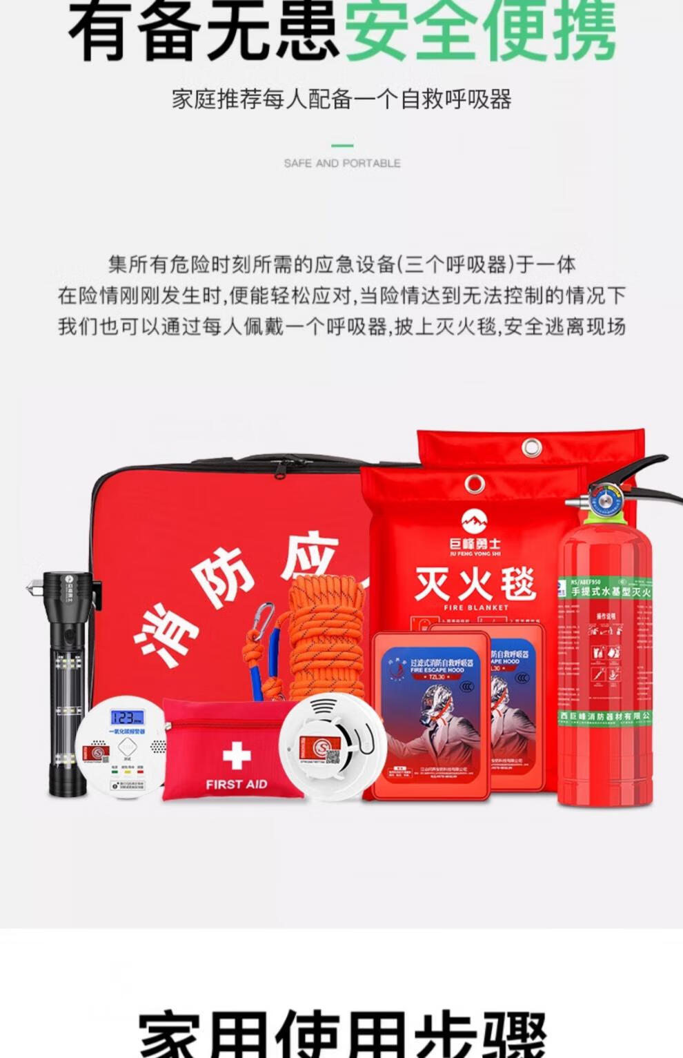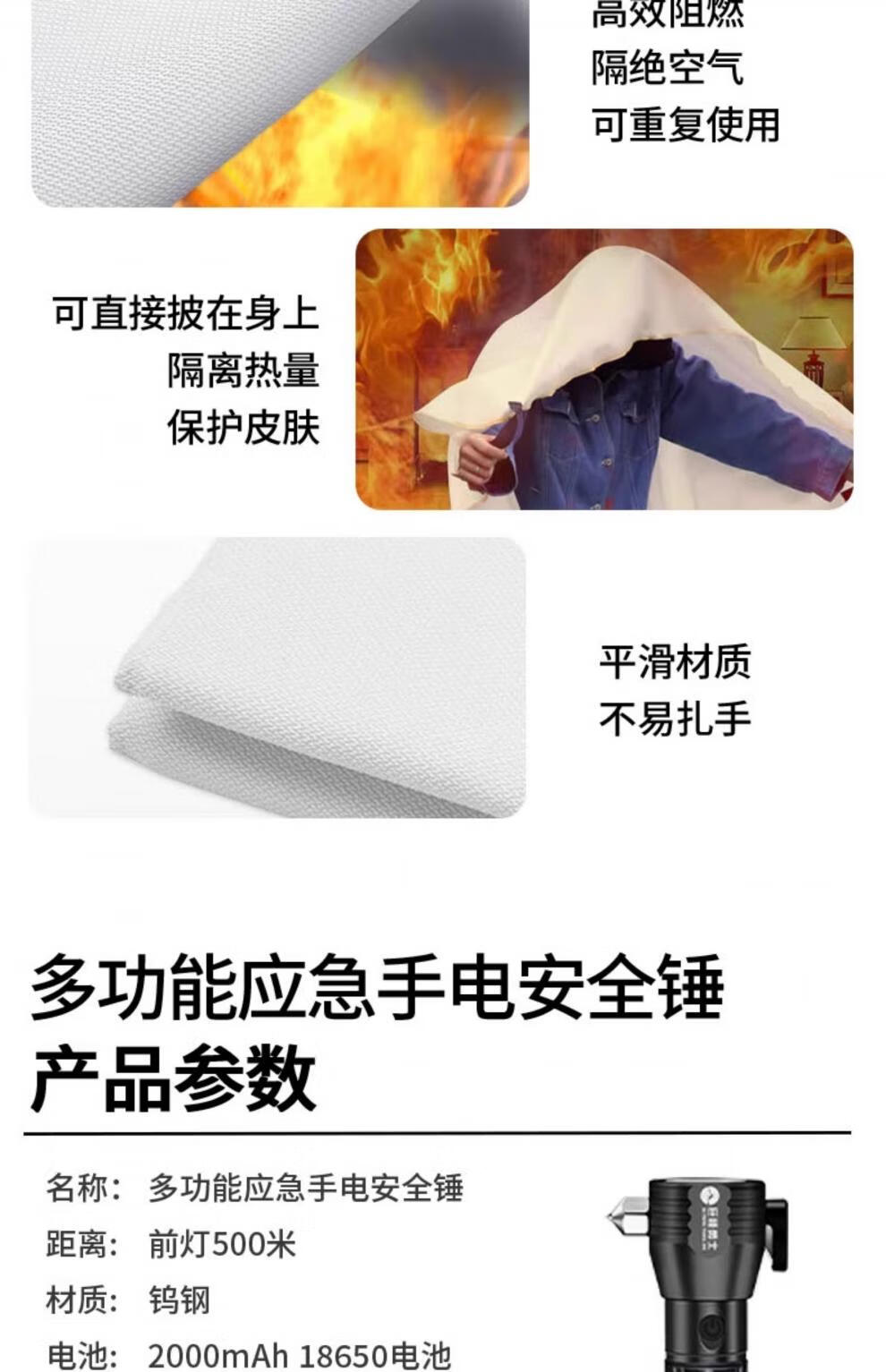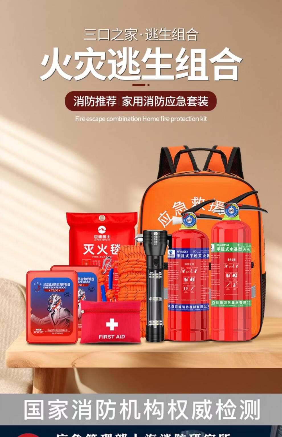 Household fire equipment set, four-piece household fire blanket, water-based fire extinguisher, high floor fire escape equipment, double escape set, deluxe version