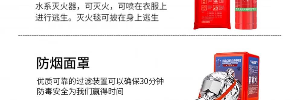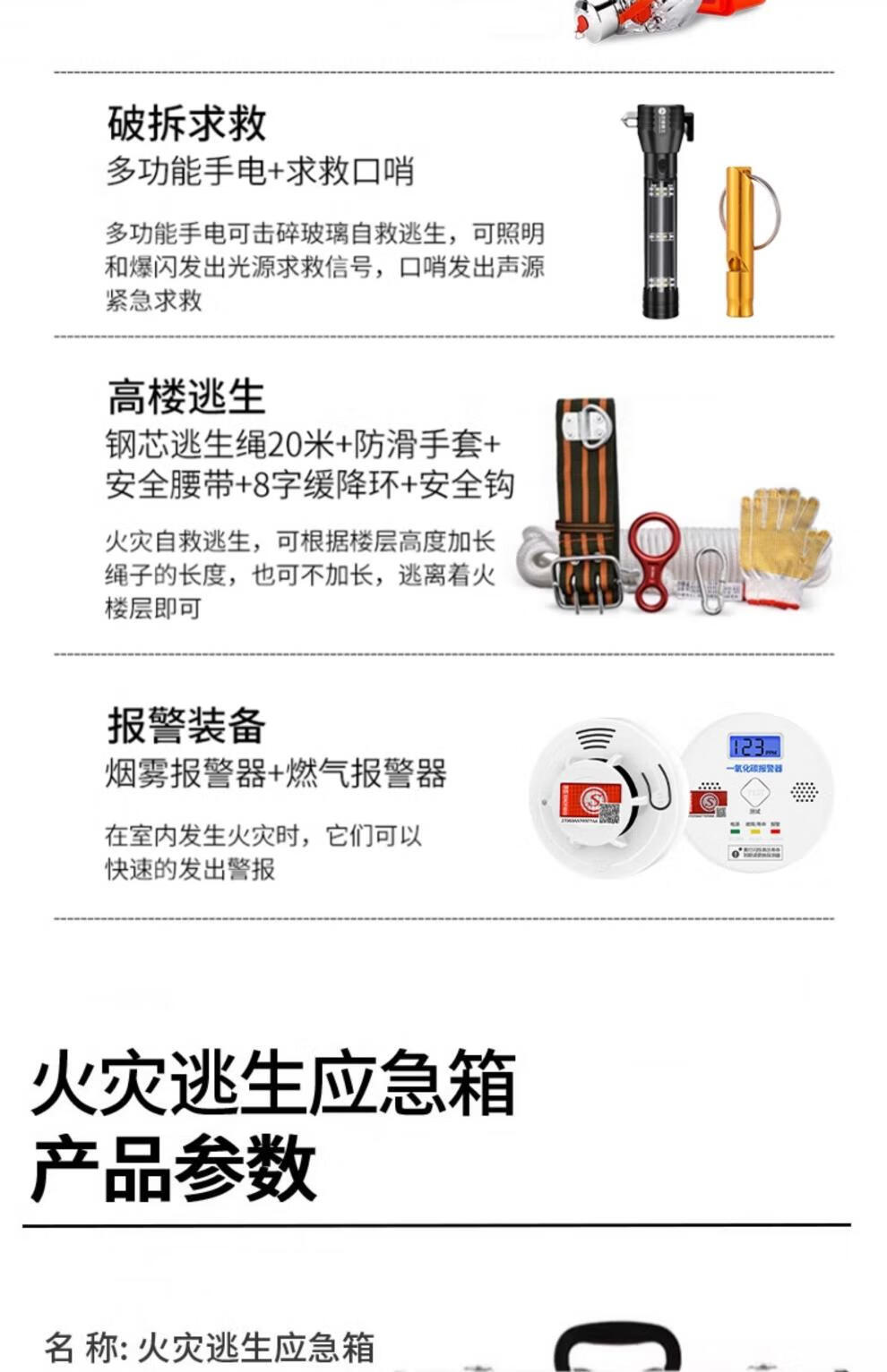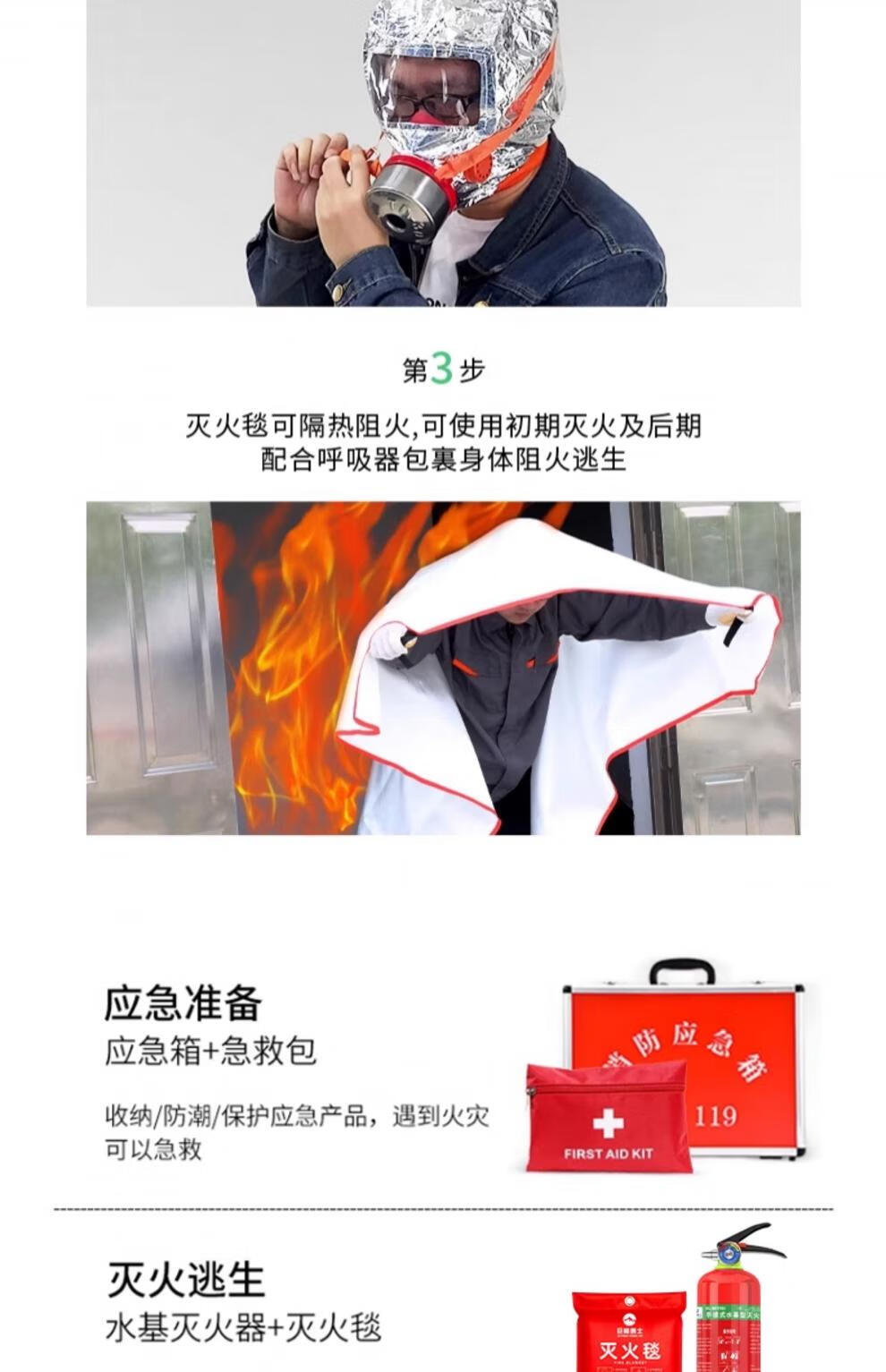 Household fire equipment set, four-piece household fire blanket, water-based fire extinguisher, high floor fire escape equipment, double escape set, deluxe version