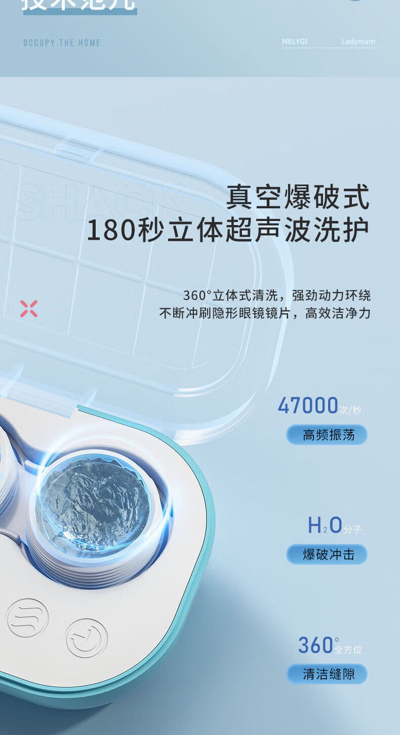Universal MUGLE contact lens cleaner, electric contact lens box automatic cleaning machine, ultrasonic rinse instrument, sterilization, mint soda