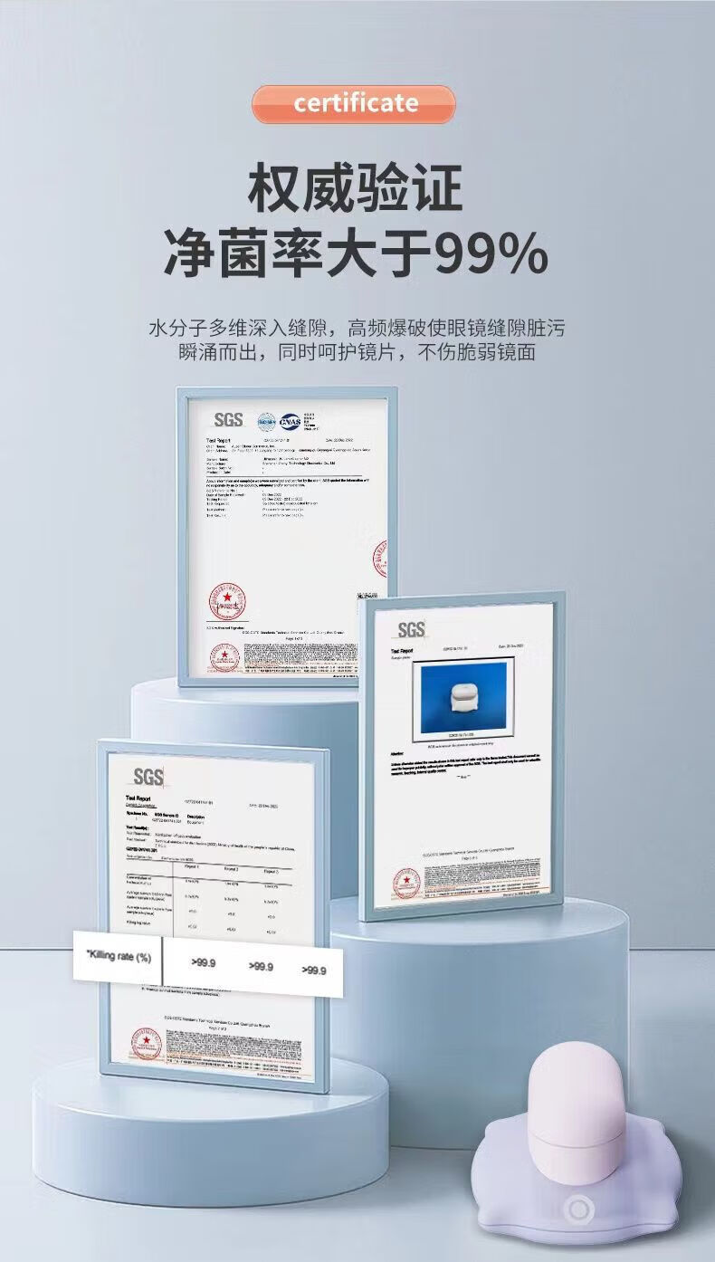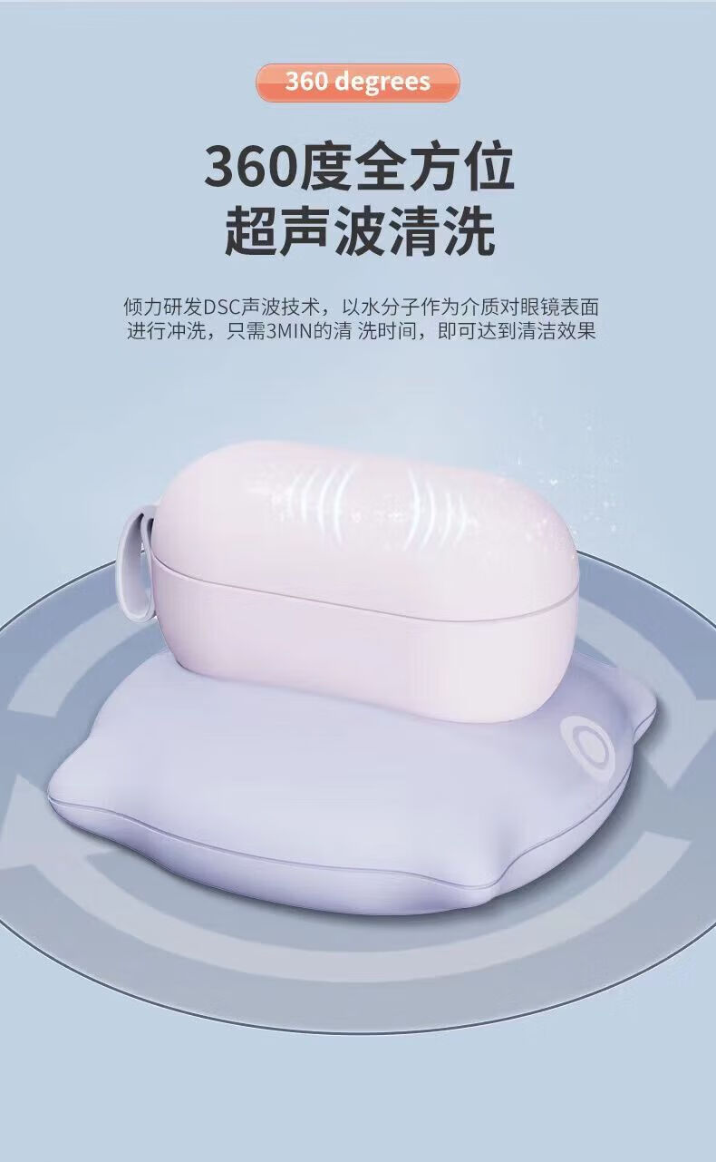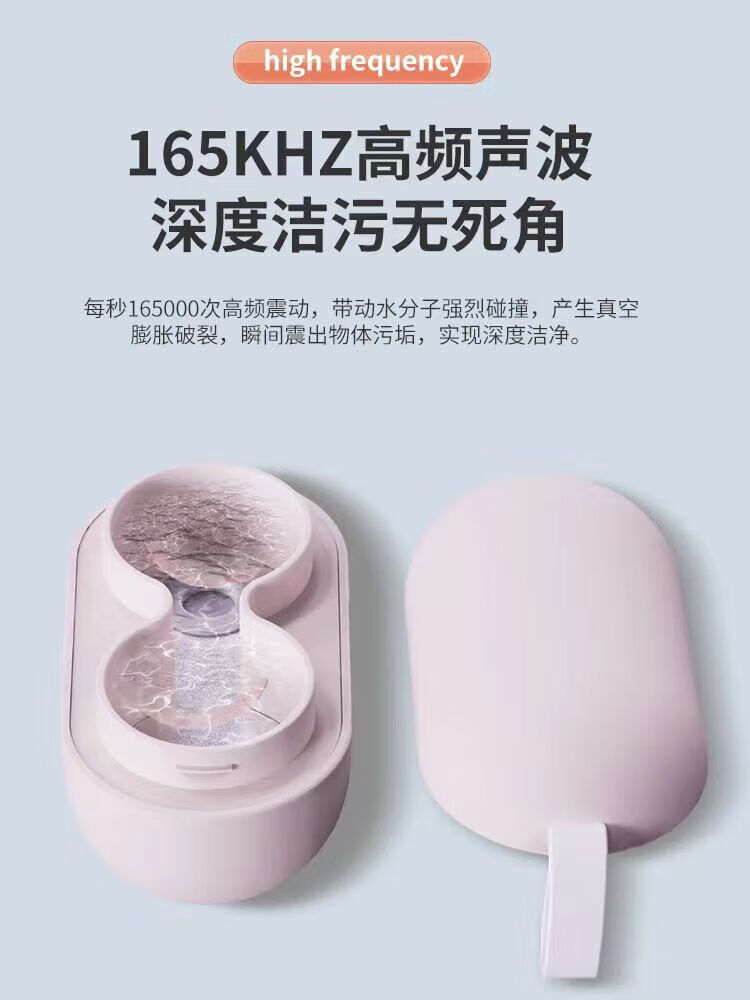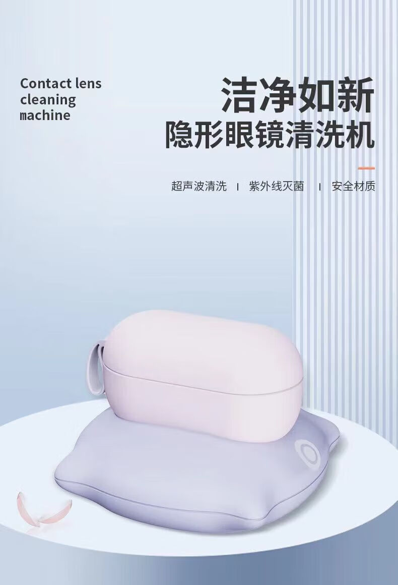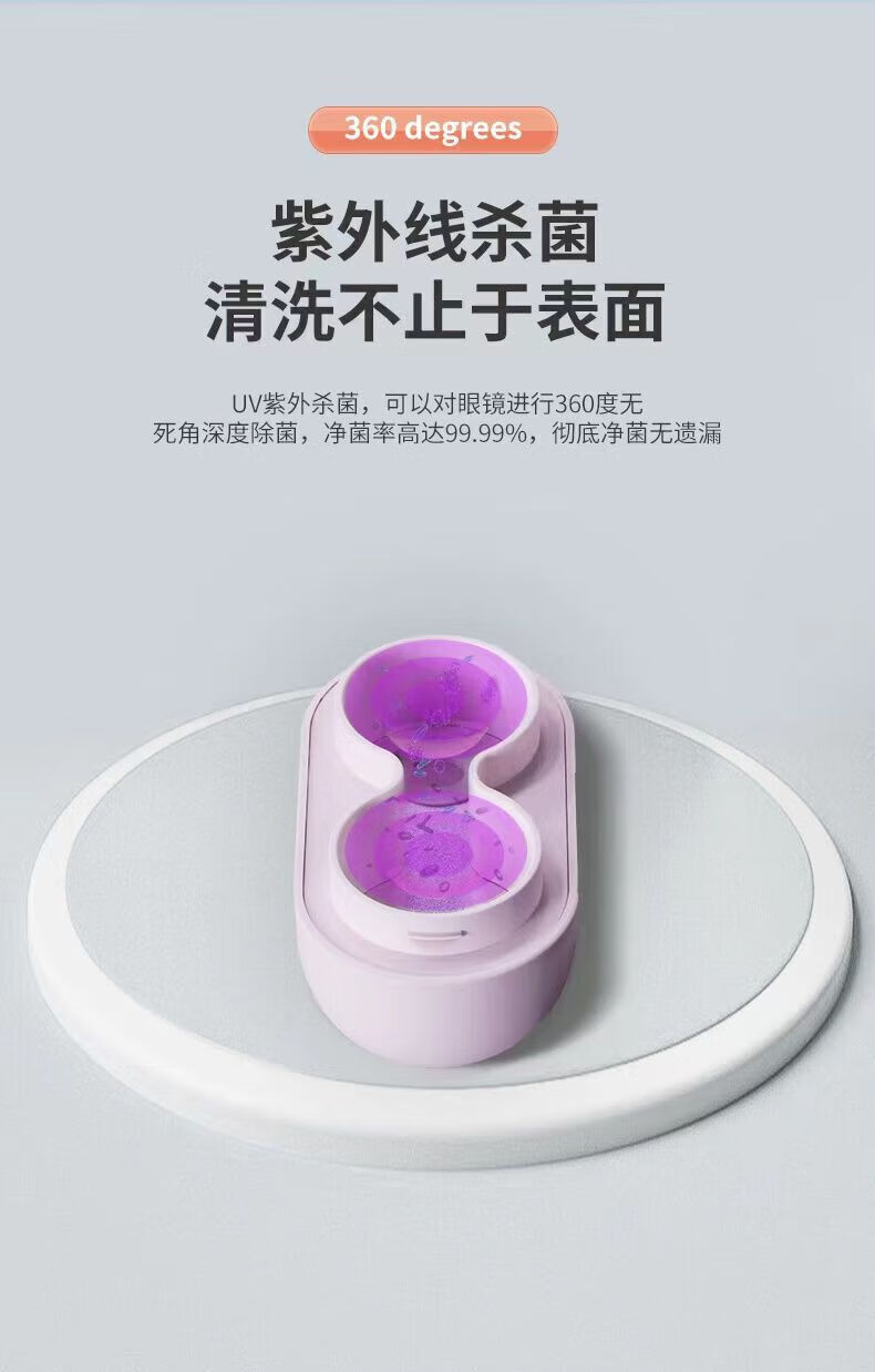 Universal UltraNu M2 small rechargeable UV UVC ultrasonic contact lens cleaner, pink gray gift box packaging