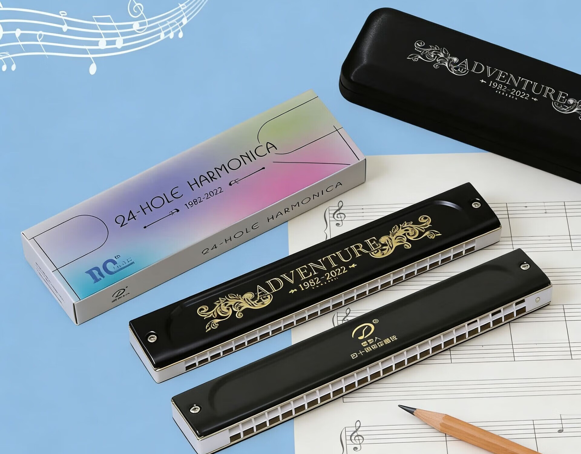 SWAN Swan High-end Dream Chaser 24-hole Polyphonic Harmonica Student Beginner Adult Professional Performance Level Harmonica Instrument 24-hole Polyphonic C Key Magic Night Black + Gift