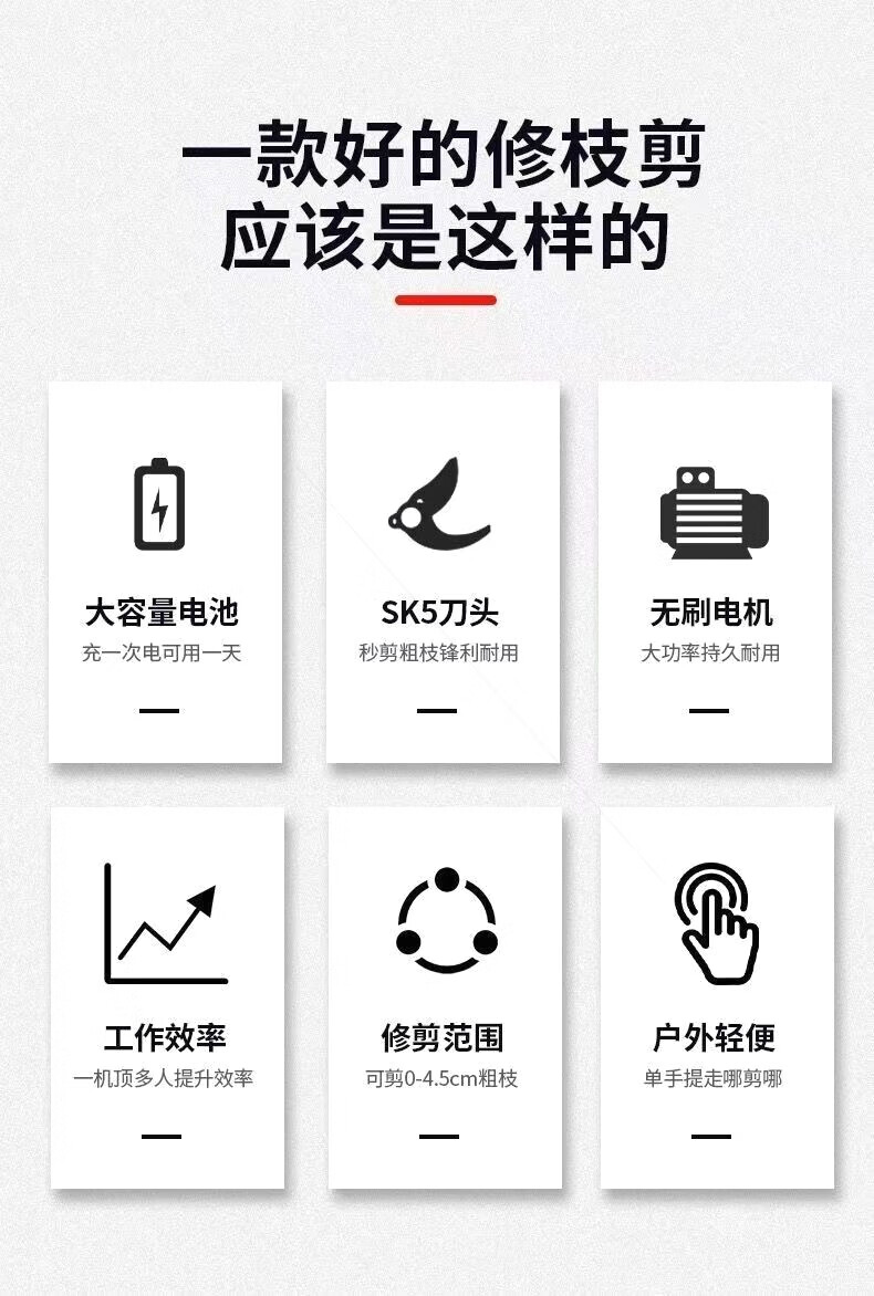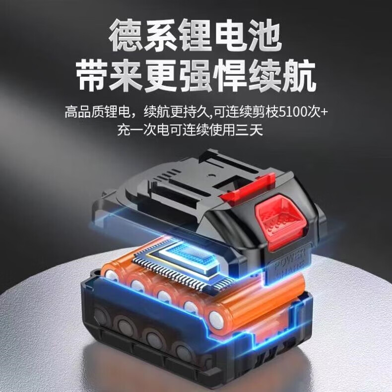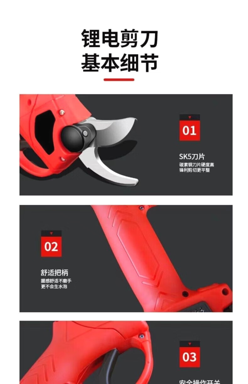 Yong Huan German imported electric scissors, fruit tree pruning shears, rechargeable, powerful wireless lithium battery, dedicated for gardening and thick branches, brushless 5 cm, one electric + 2 knives, free folding saw