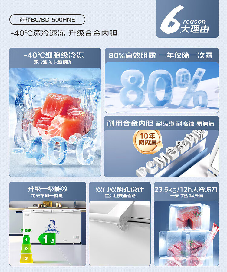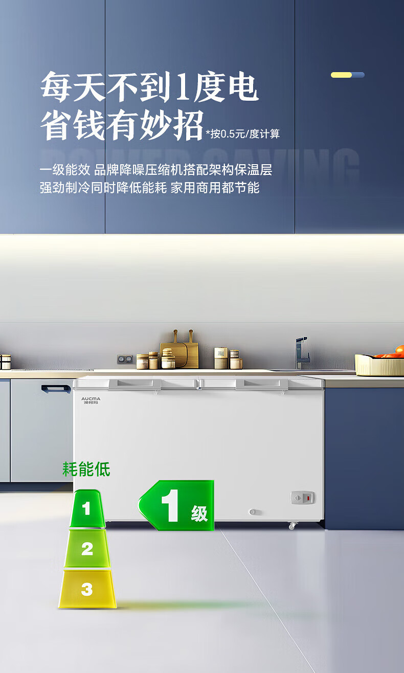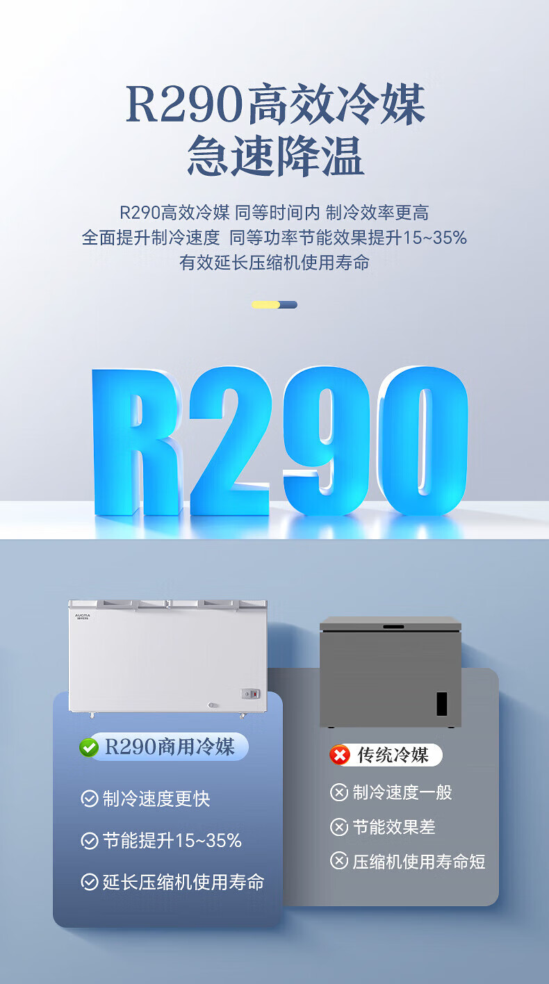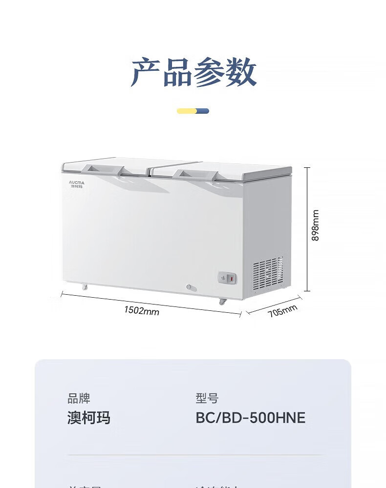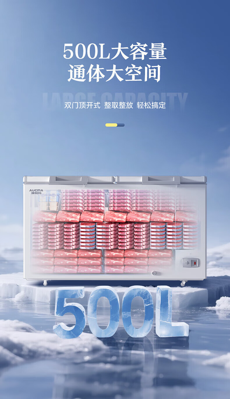 AUCMA 500L single-temperature commercial freezer, ultra-low temperature cryogenic freezer, large-capacity refrigeration and freezing conversion double-door top-opening, first-level energy saving, minus-40 degree quick freezer, 500HNE accessories (single shot not shipped)