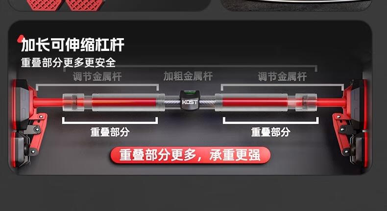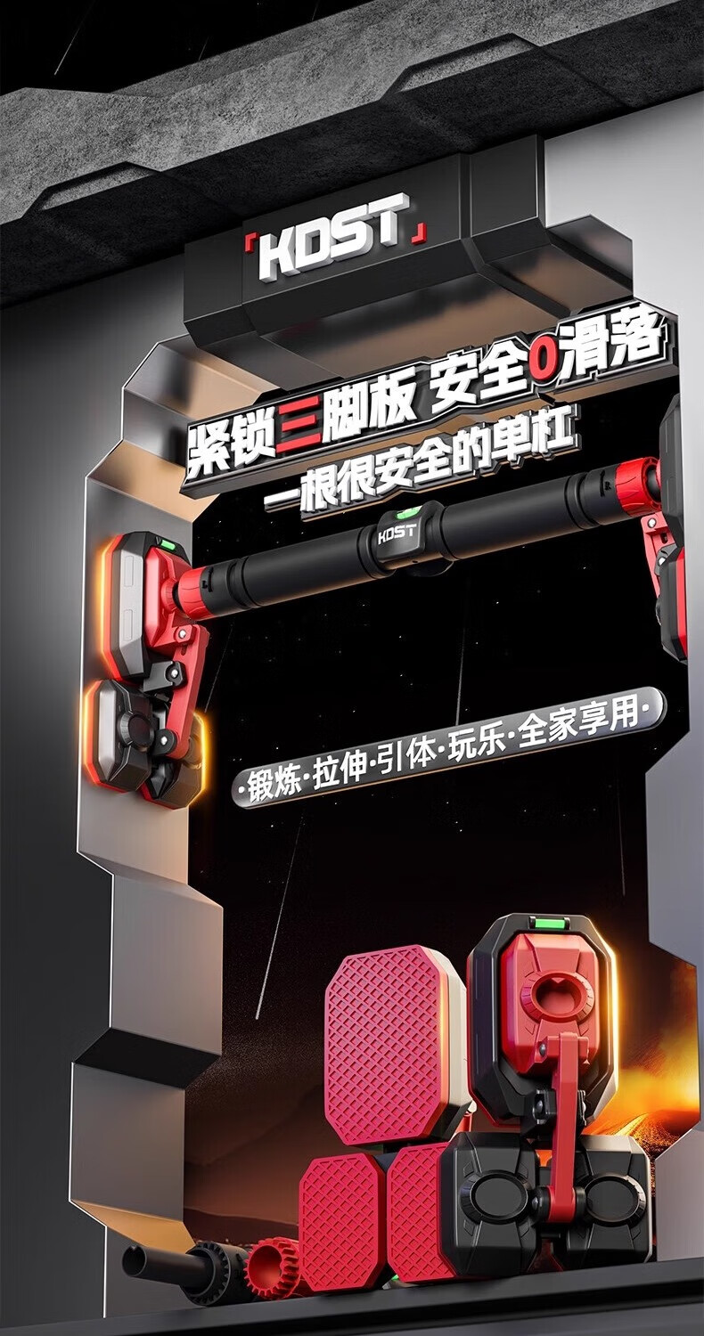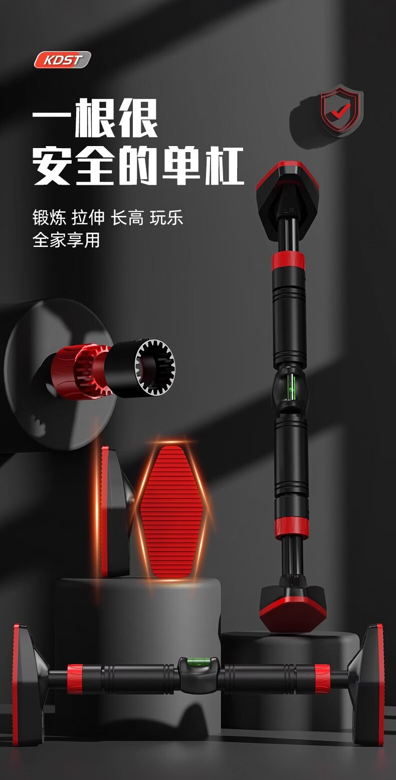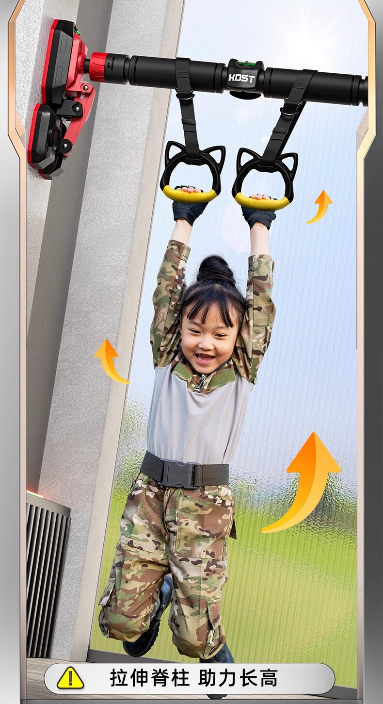 KDST door-mounted horizontal bar home indoor children's punch-free wall pull-up device horizontal bar home fitness equipment tripod plate anti-slip model + three levels + hanging rings 138-185CM - load bearing 2360 catties