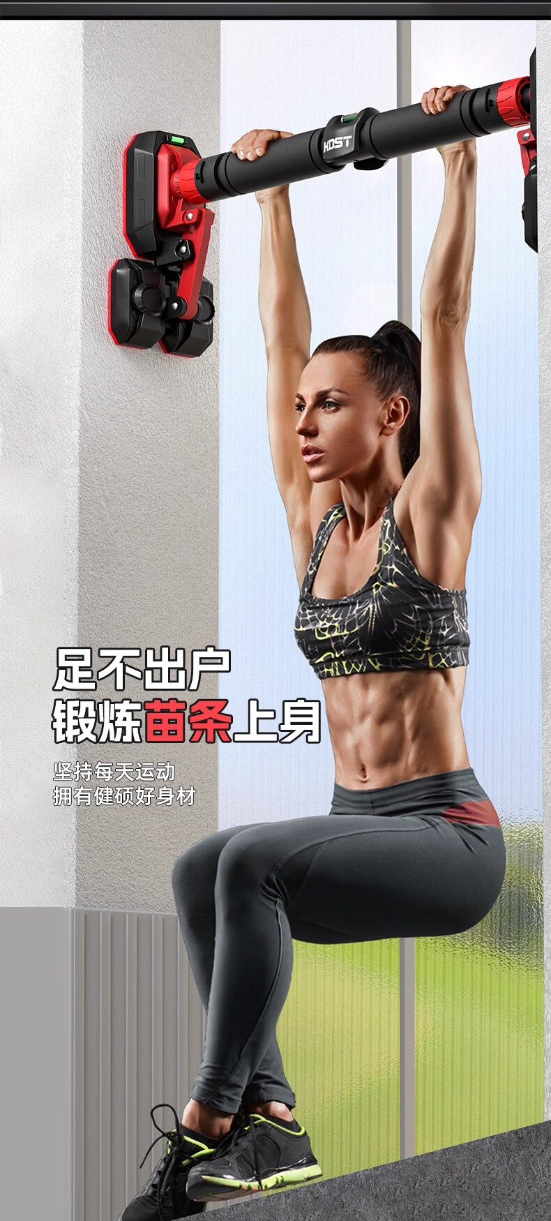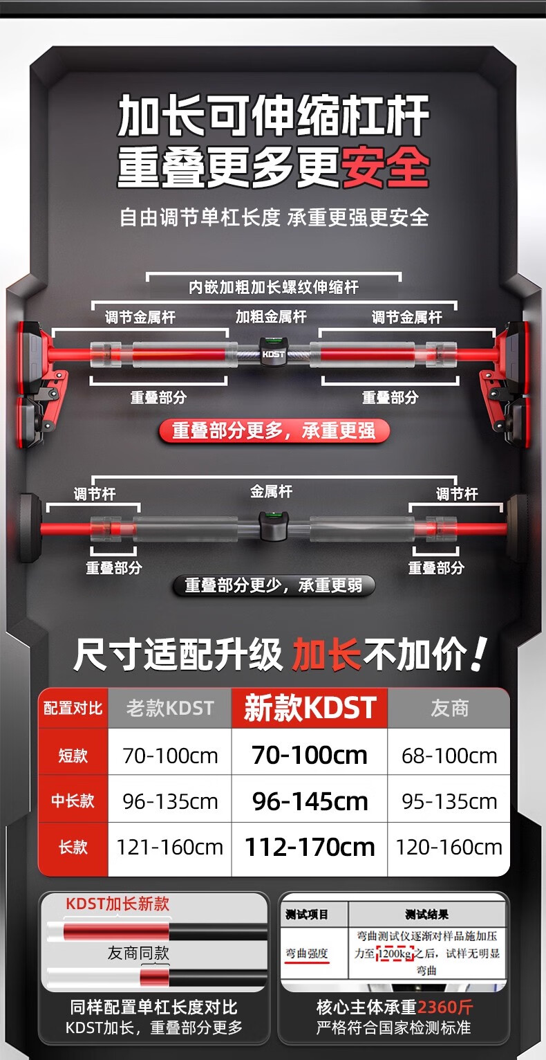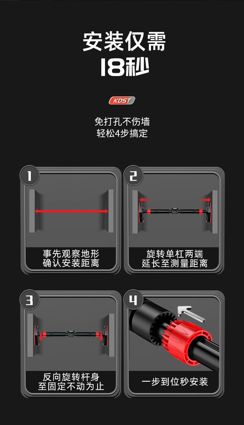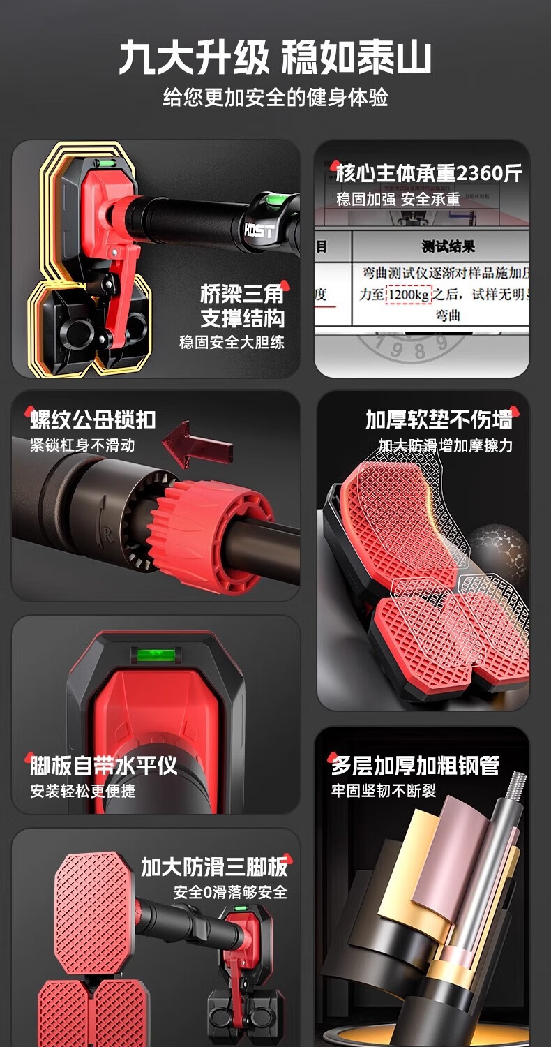 KDST door-mounted horizontal bar home indoor children's punch-free wall pull-up device horizontal bar home fitness equipment tripod plate anti-slip model + three levels + hanging rings 138-185CM - load bearing 2360 catties
