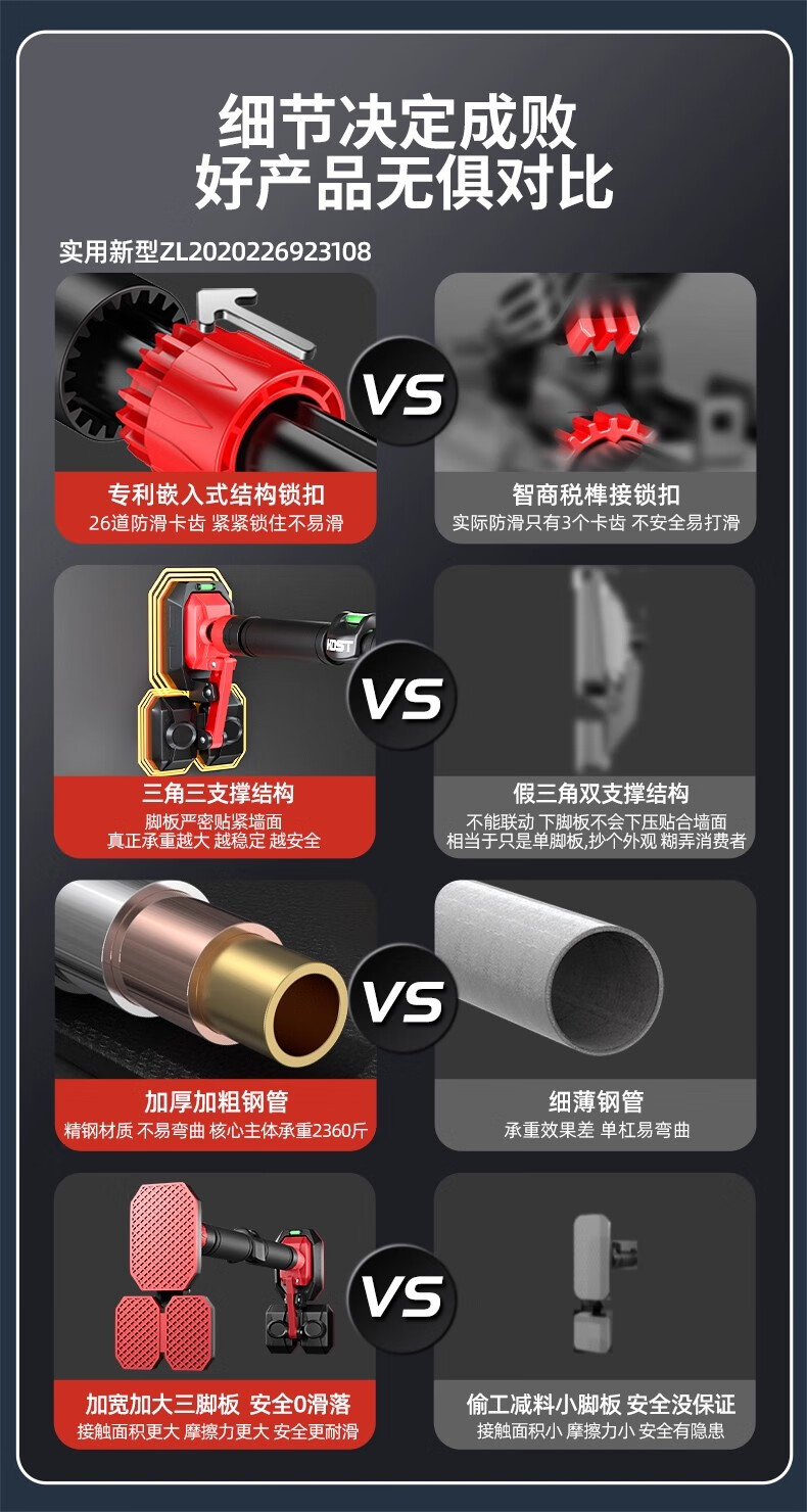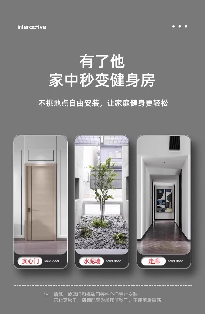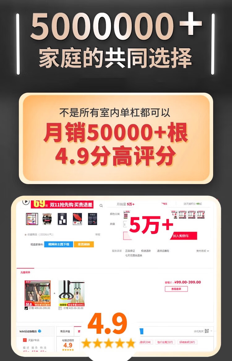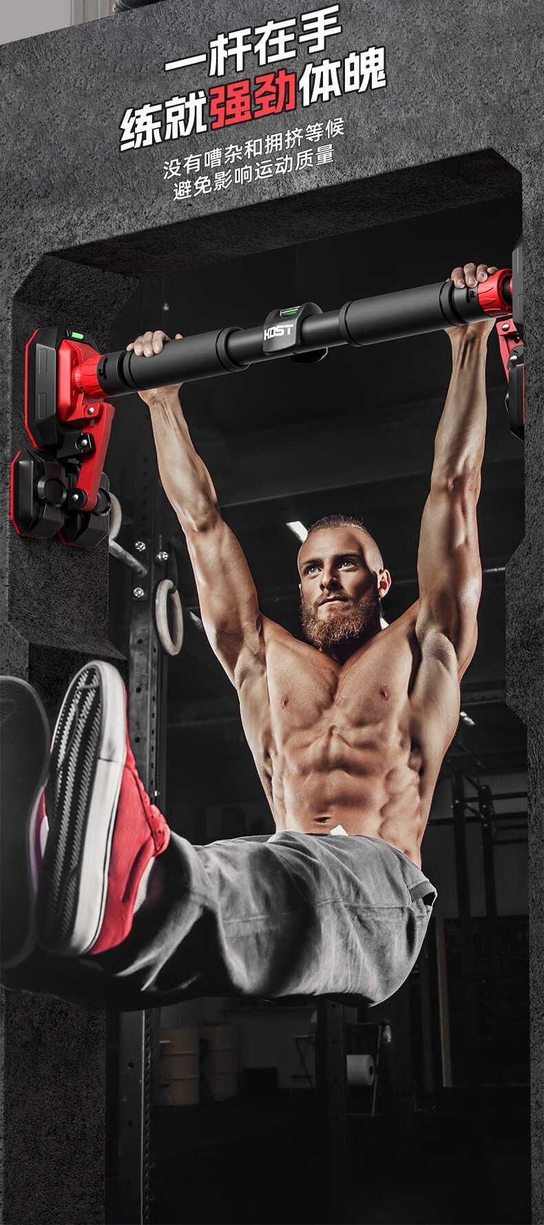 KDST door-mounted horizontal bar home indoor children's punch-free wall pull-up device horizontal bar home fitness equipment tripod plate anti-slip model + three levels + hanging rings 138-185CM - load bearing 2360 catties