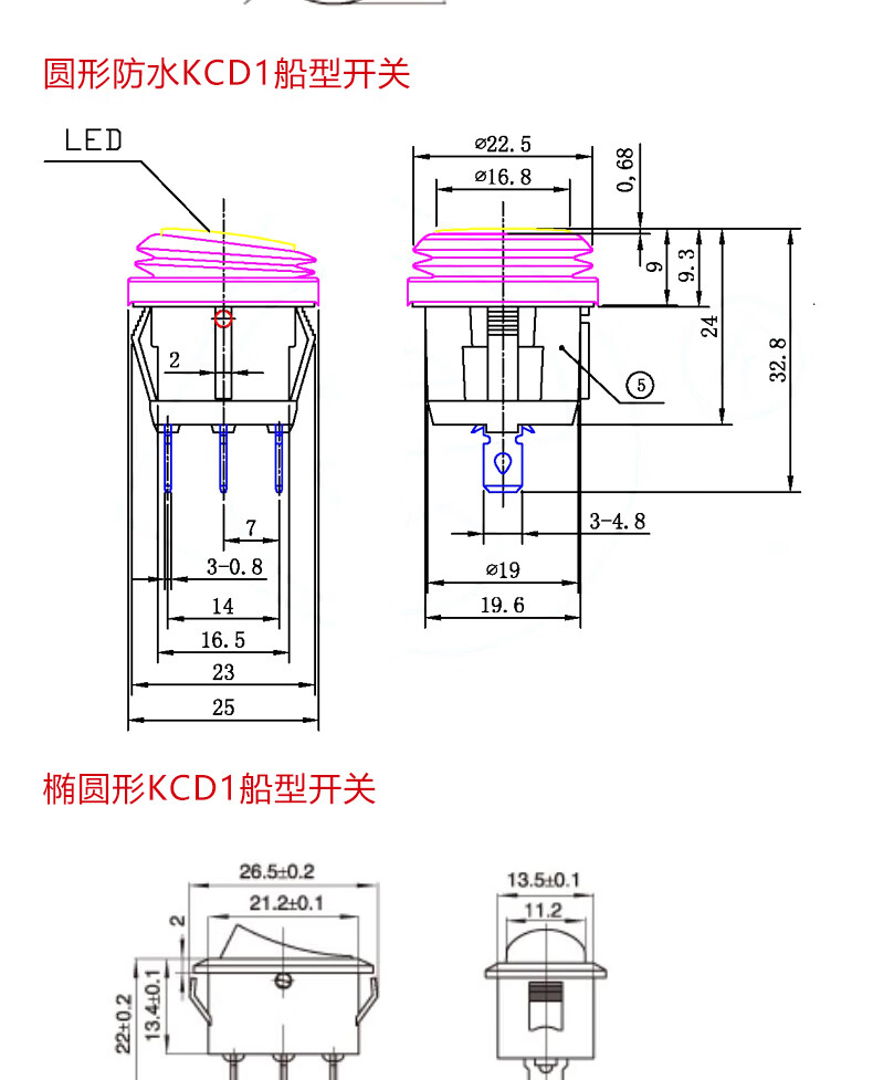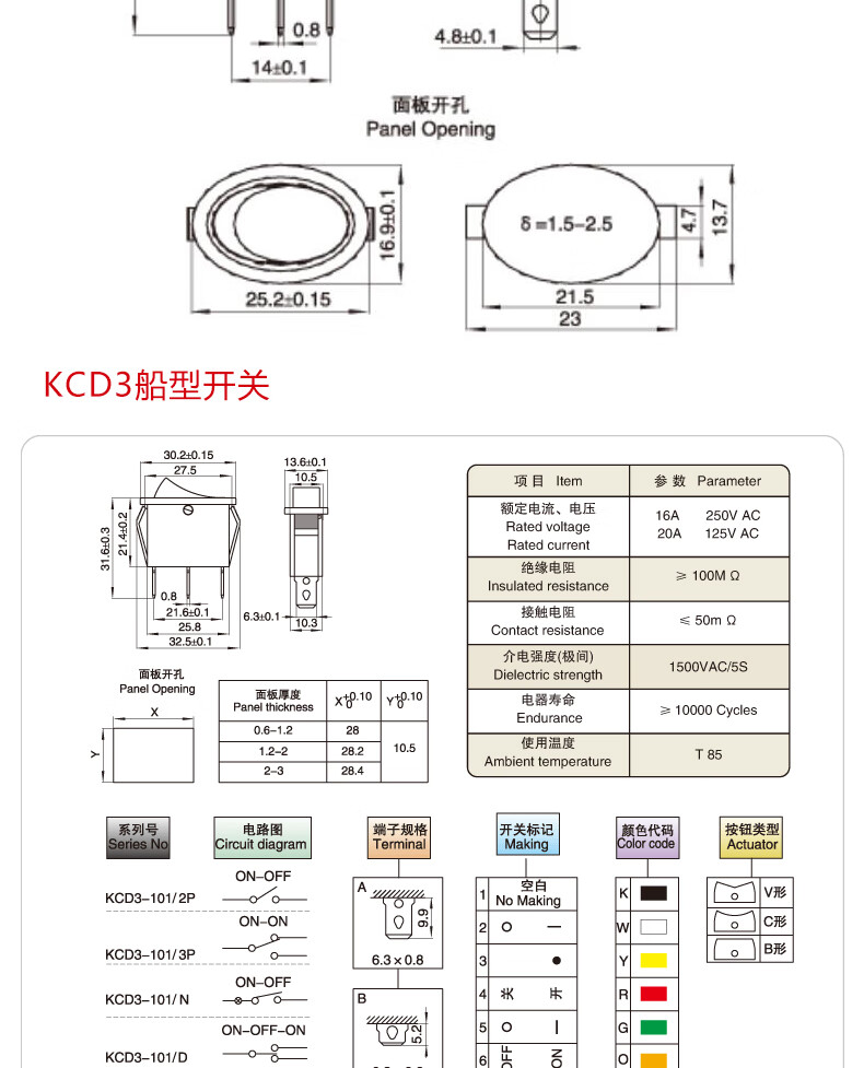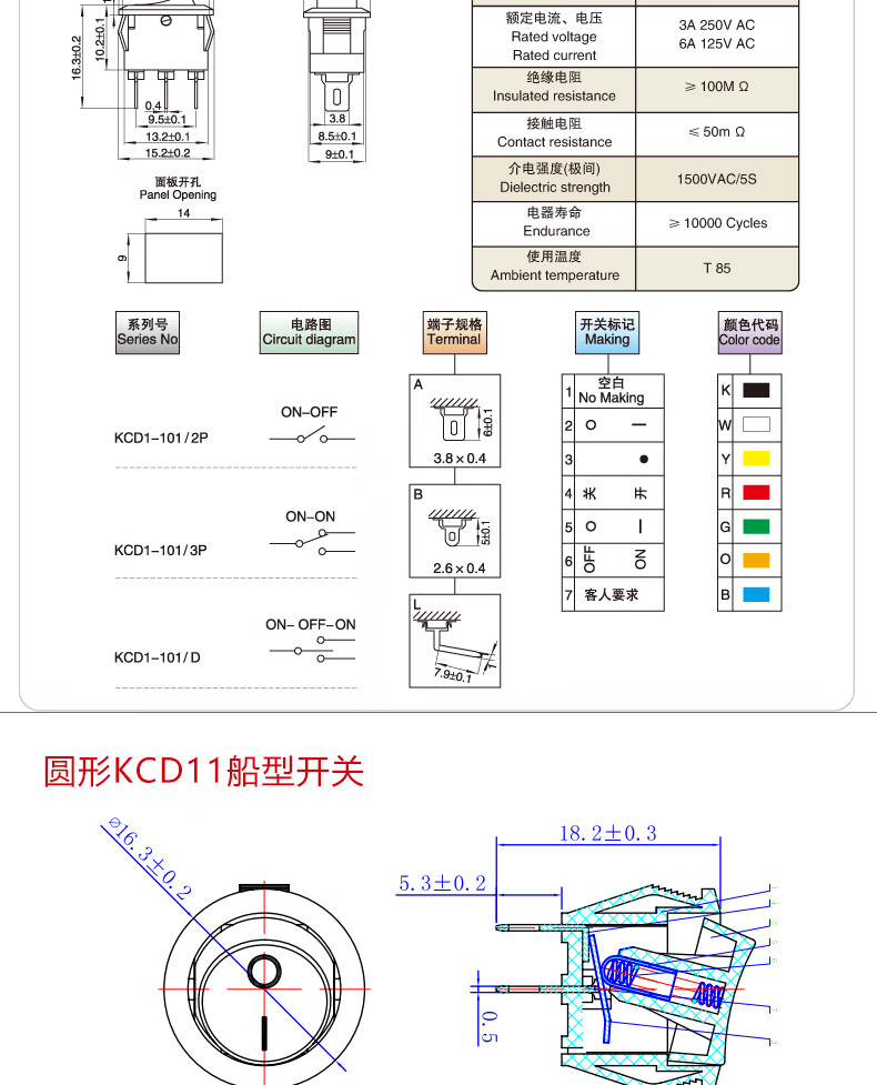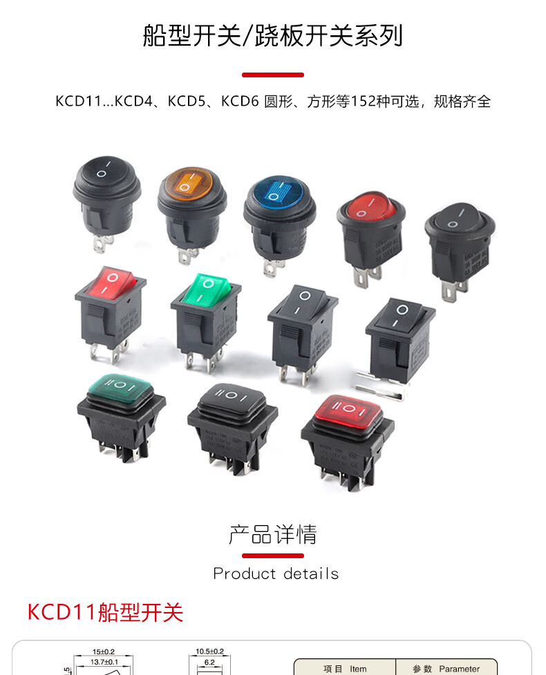 Small boat-shaped/shaped switch KCD11 2-position 2-pin 2-position 3-pin 3-position 3-pin rocker switch KCD11_2-pin 2-position_Black No specifications