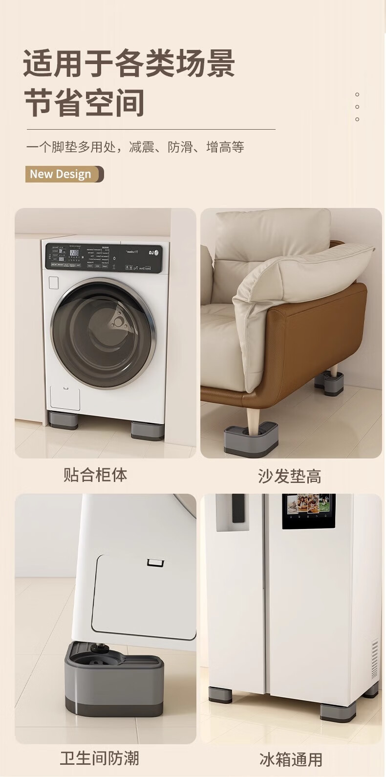Fat Donglai same style washing machine base frame heightening foot pads anti-slip anti-vibration silent foot bracket drum special refrigerator plus pad high support single layer four height increase 4.5cm-dark gray shock filter/silence/anti-slip/wash