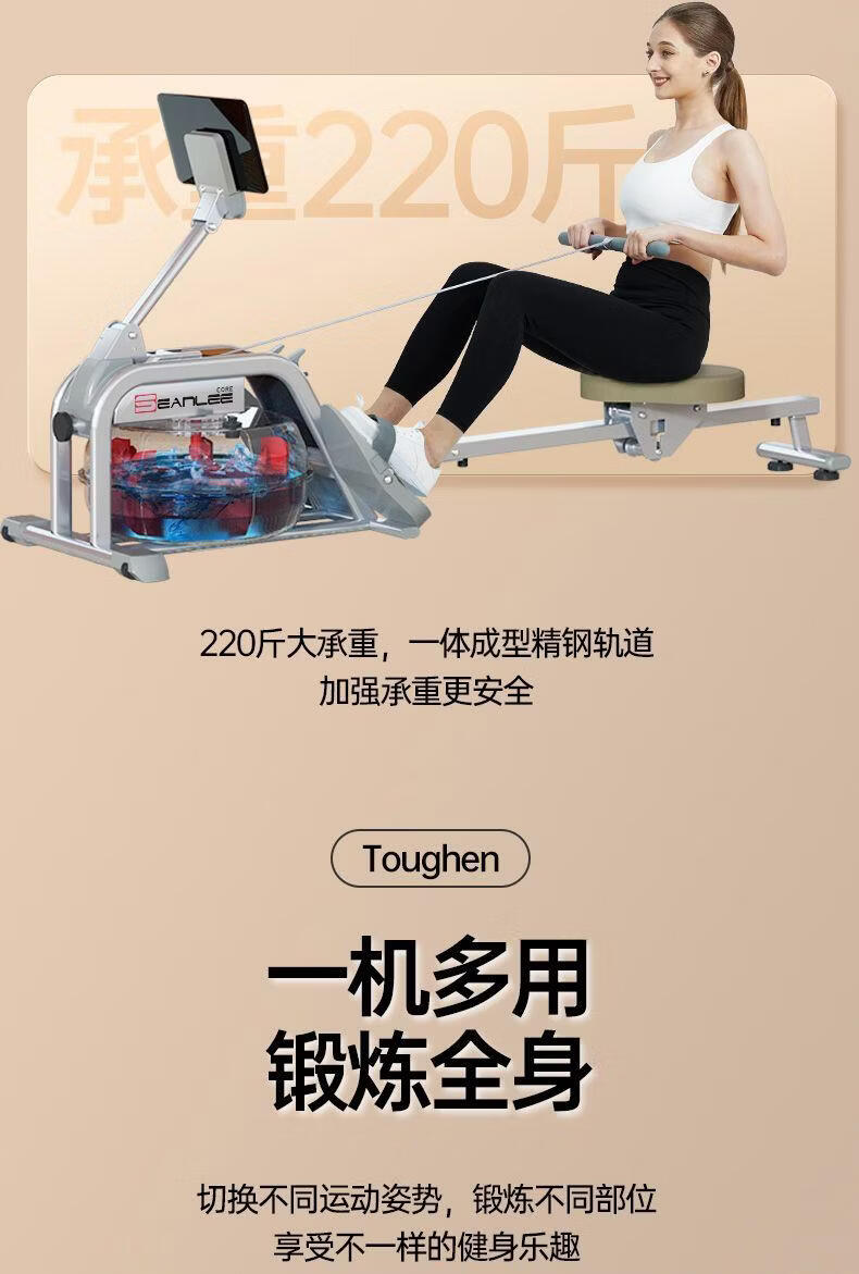 Water Resistance Smart Painting Rowing Machine Indoor Aerobic Household Fat Burning Painting Rowing Machine Weight Loss Sports and Fitness Equipment Monorail Silver Gray