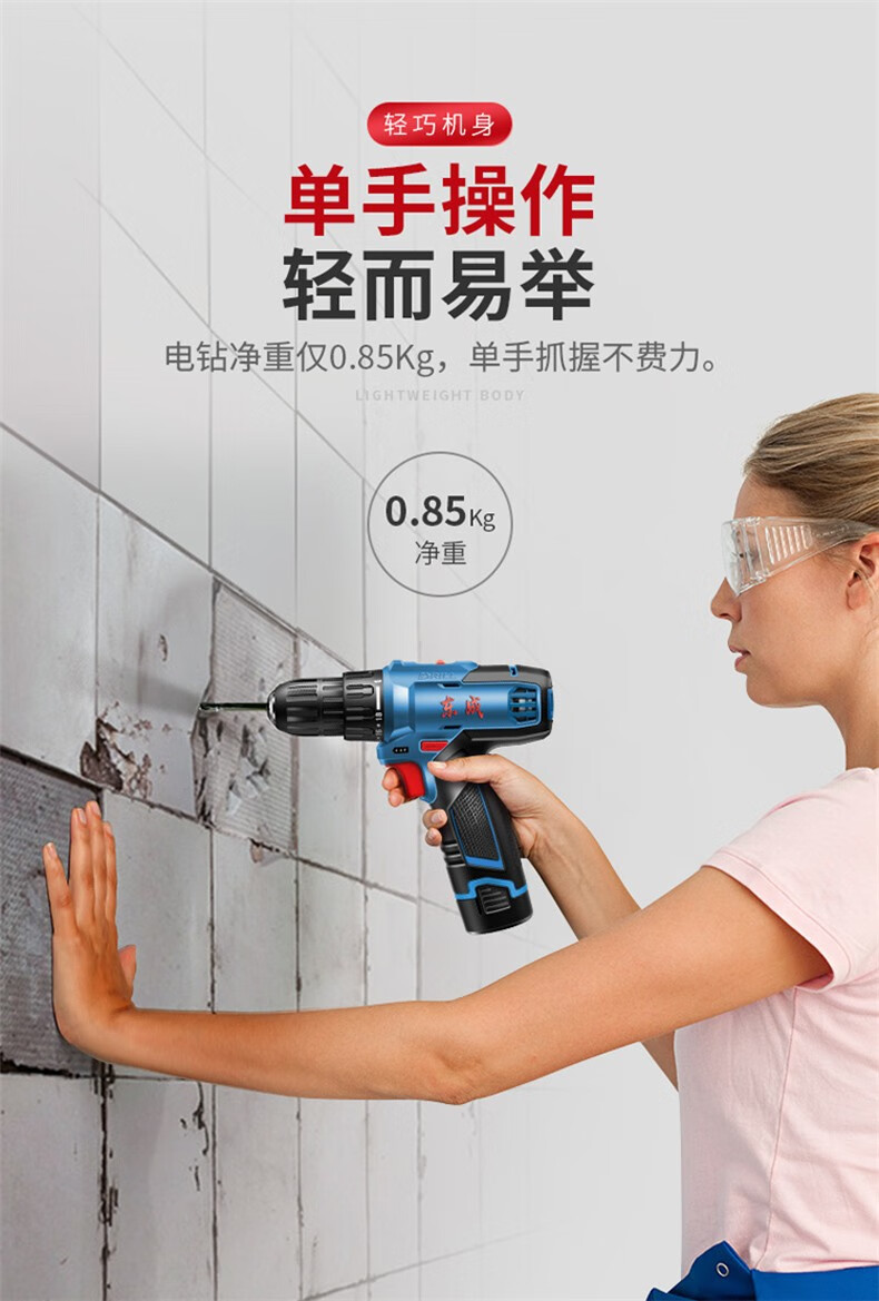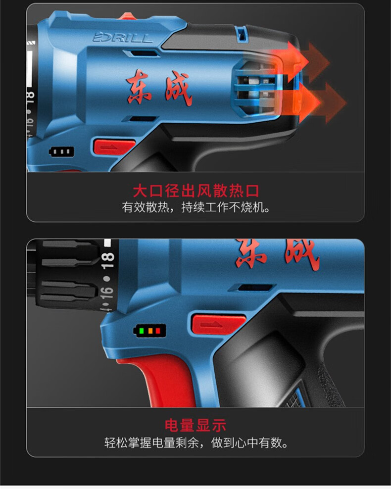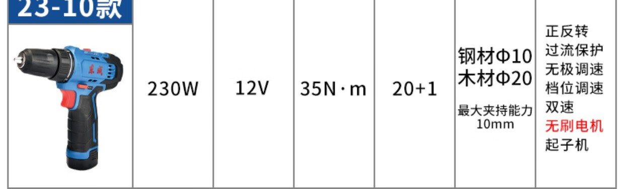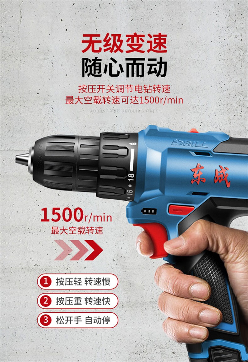 Dongcheng electric hand drill to rechargeable brushless lithium battery impact drill household tools Dongcheng electric hand drill screwdriver 12V standard dual electric family portrait