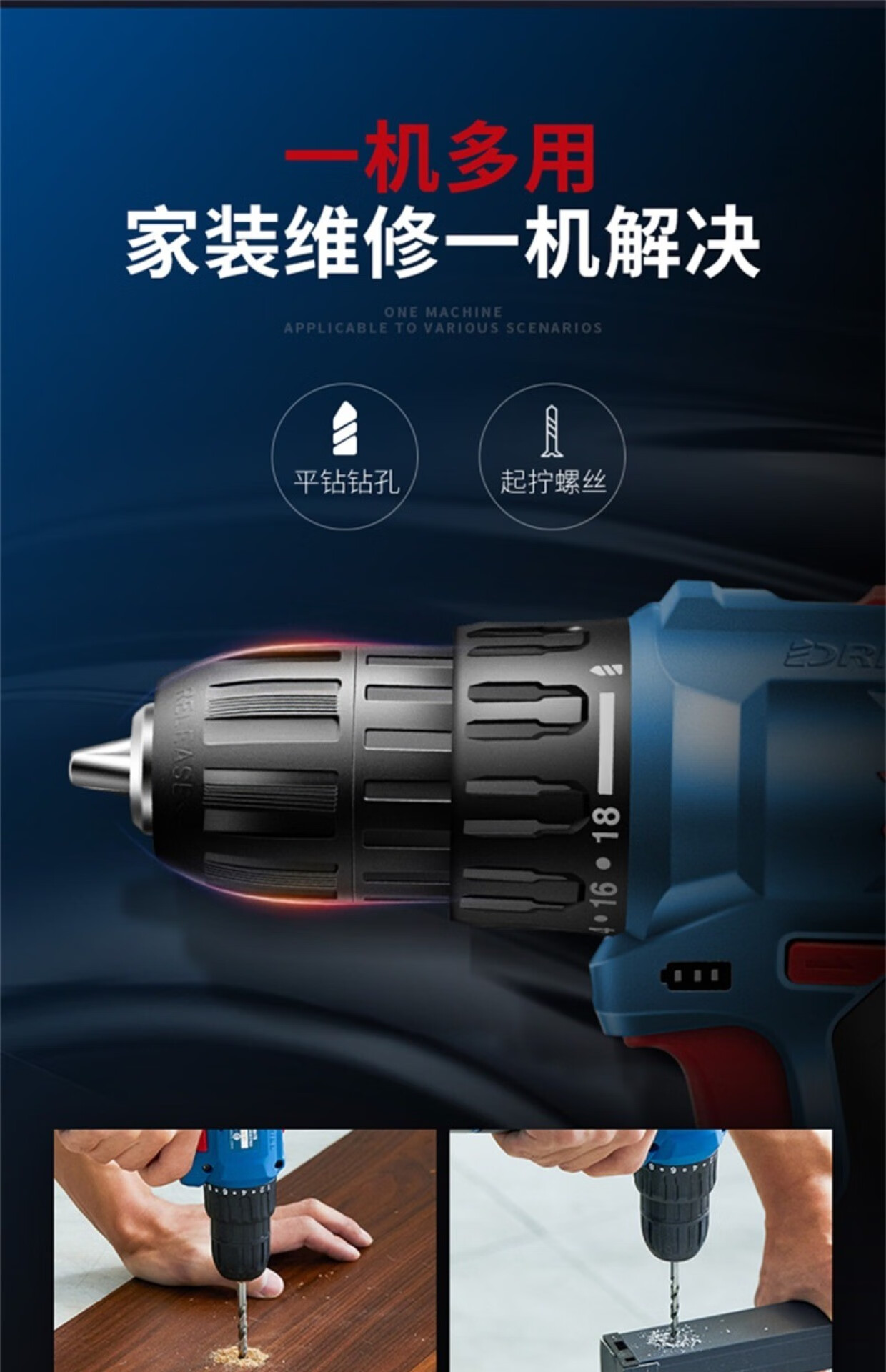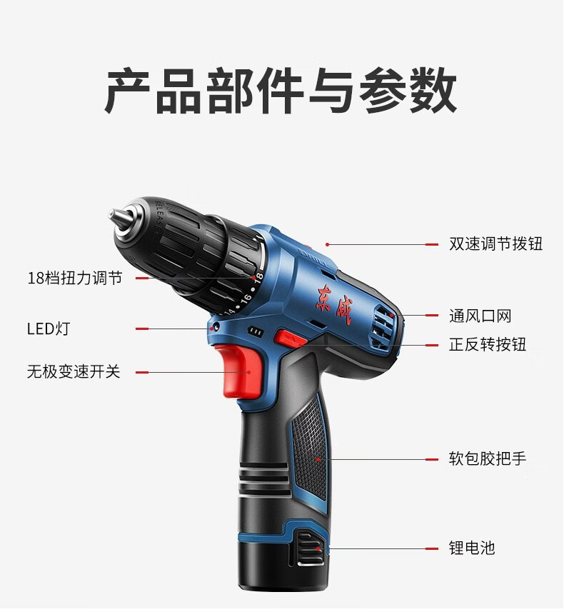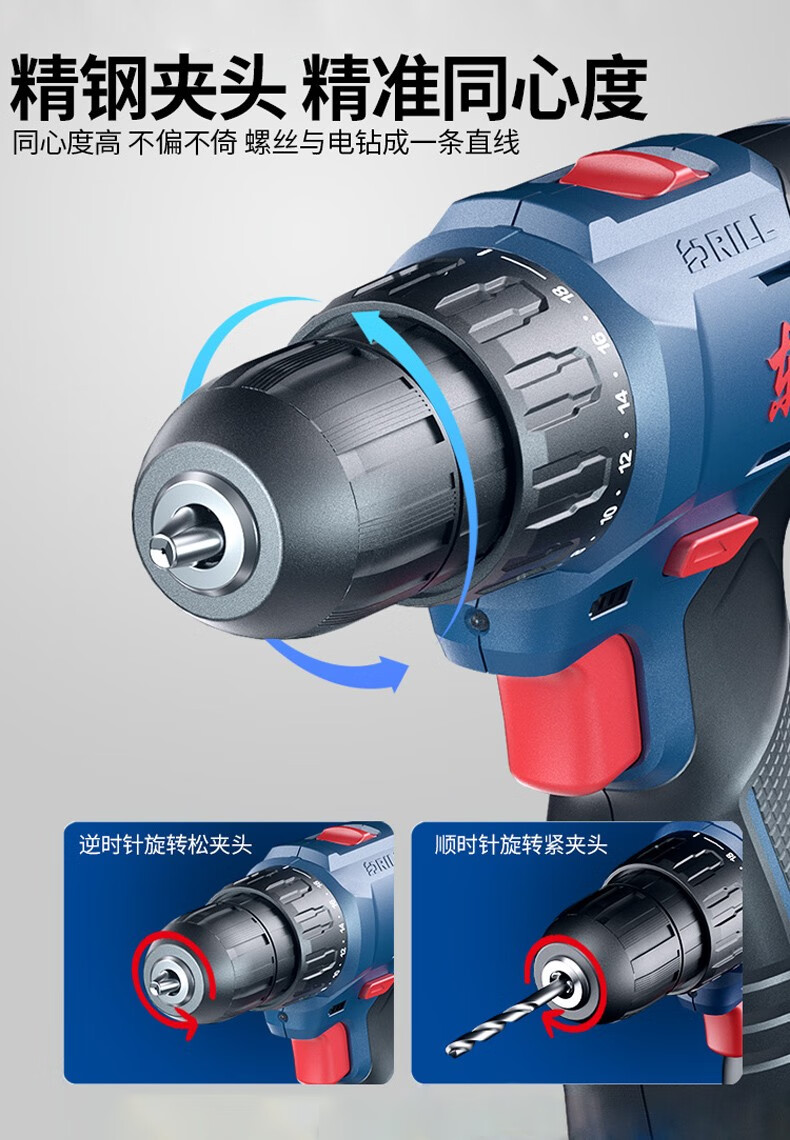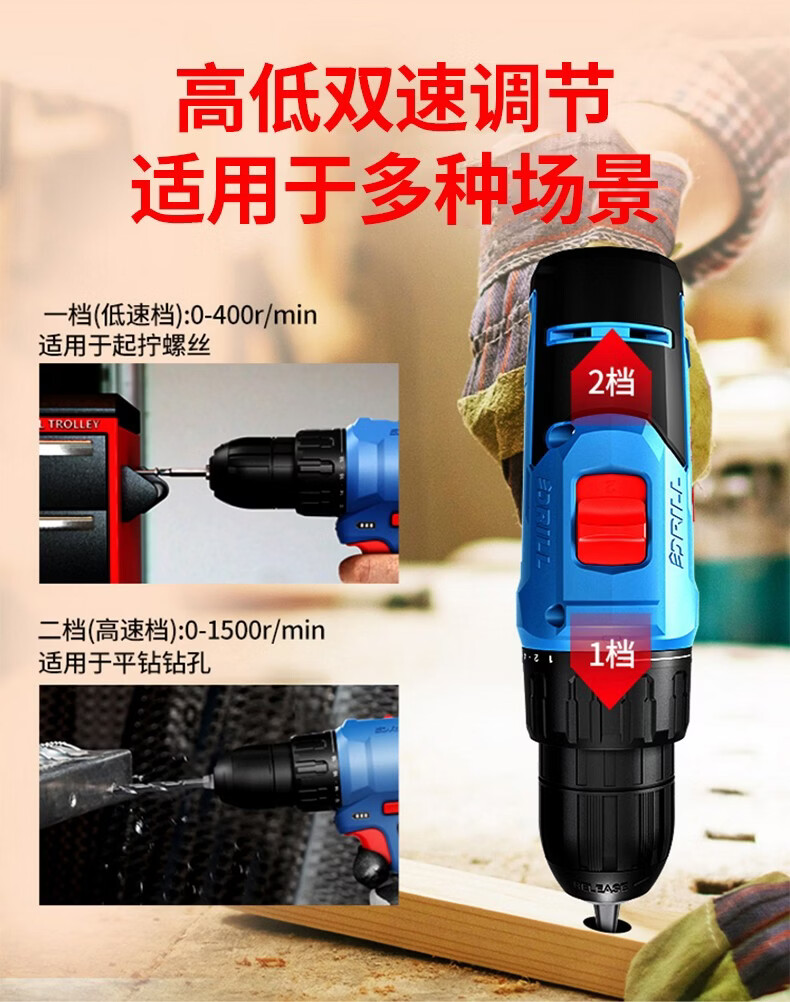 Dongcheng electric hand drill to rechargeable brushless lithium battery impact drill household tools Dongcheng electric hand drill screwdriver 12V standard dual electric family portrait