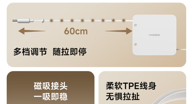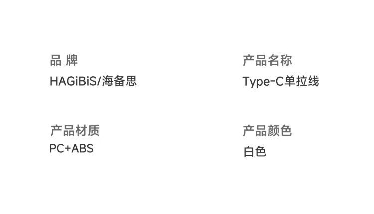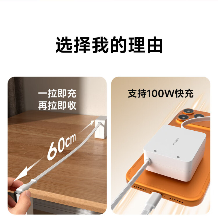 Haibisi single-stretch typec charging cable data cable pull-out cable storage cable car ctoc suitable for Apple iPhone17 mobile phone computer PD100W fast charging desktop white