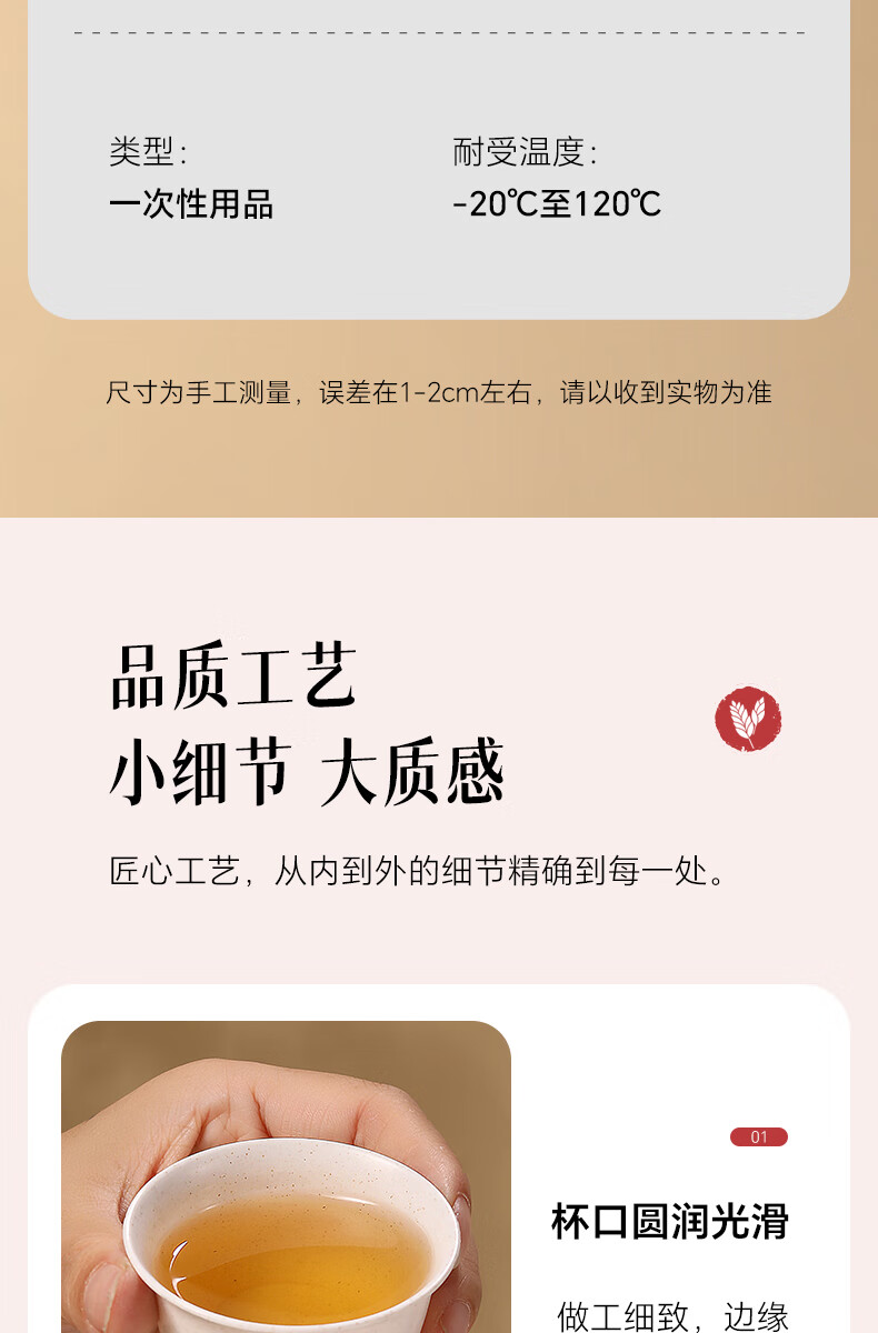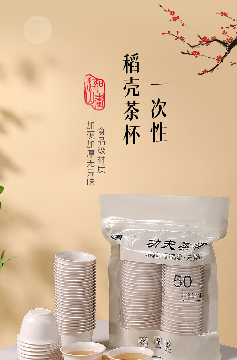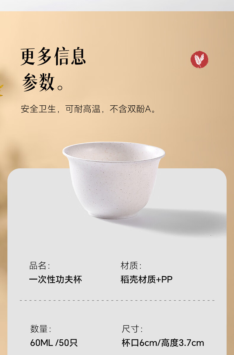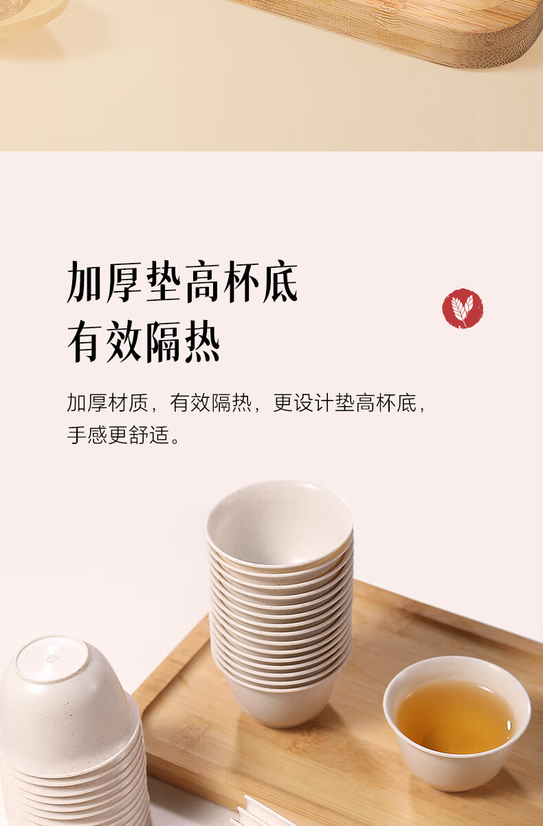 JCZS rice husk disposable kung fu tea cup small rice fragrant tea drinking thickened hospitality cup paper cup tea set thickened rice husk cup four pack (200 pieces) rice husk