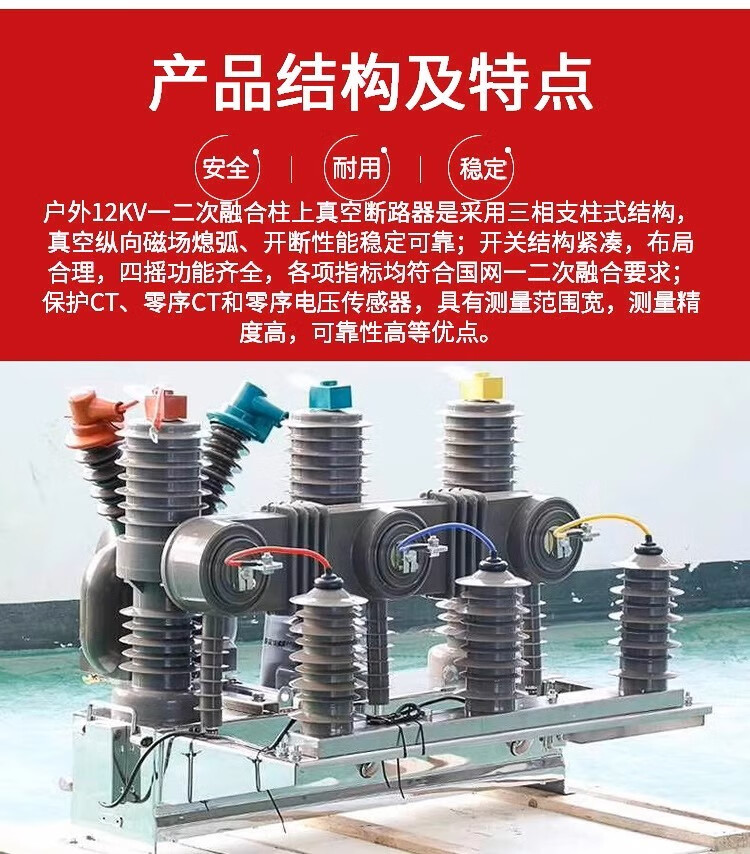 ZW32 primary and secondary fusion column-mounted vacuum circuit breaker 10kv high voltage state grid intelligent three remote independent zero sequence switch ZW32 dual PT state grid primary and secondary fusion 630A 3P