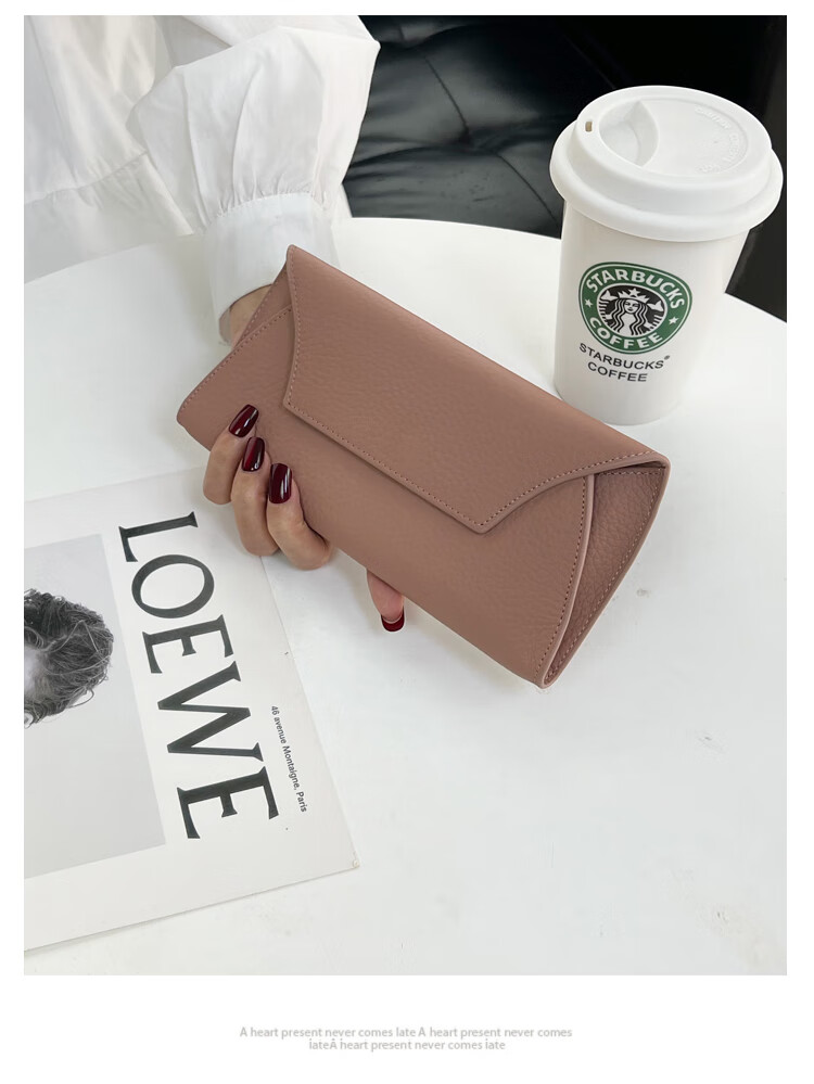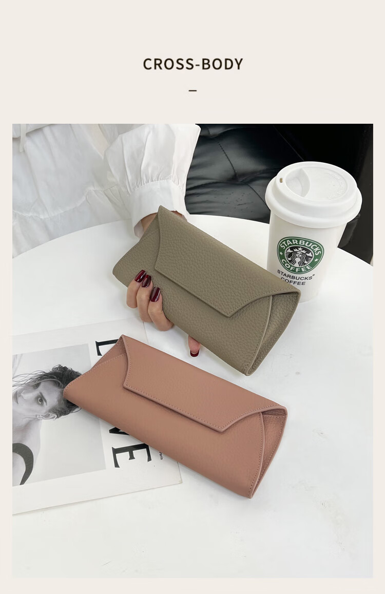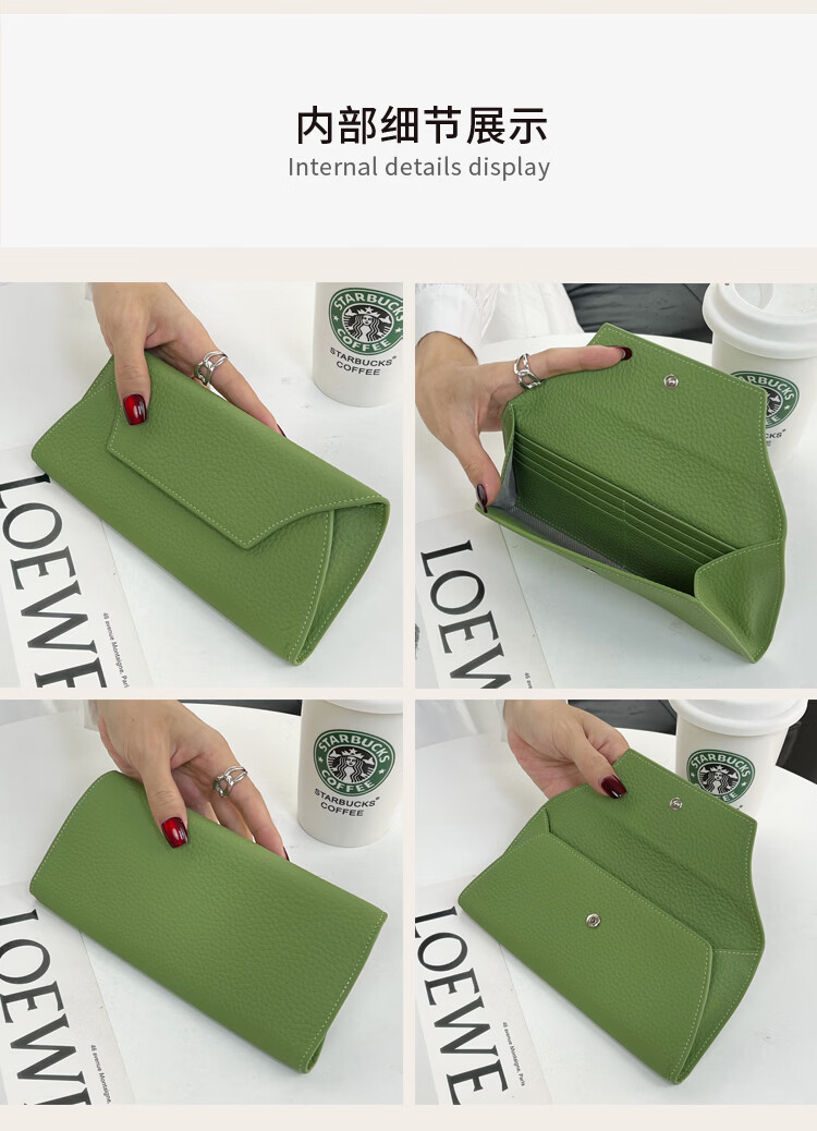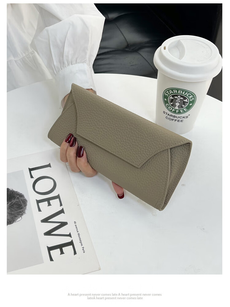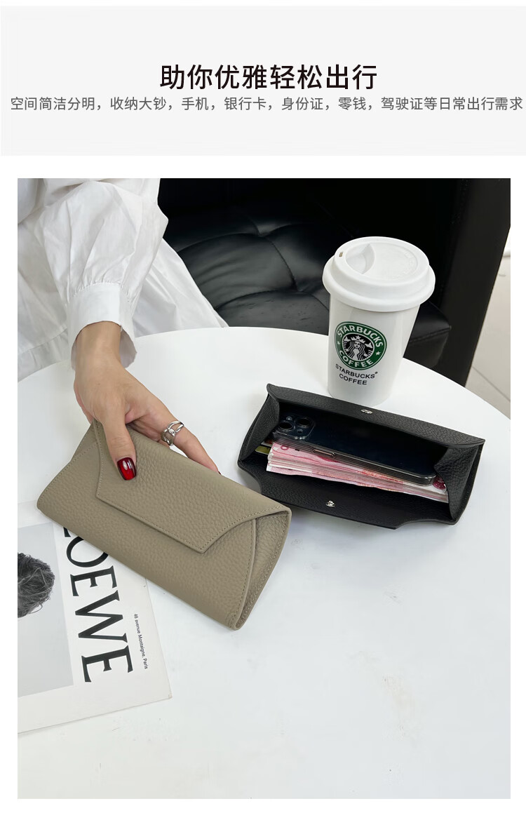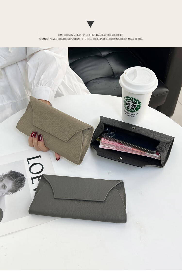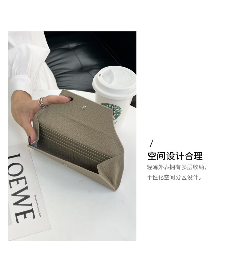 OTHER/Other genuine leather ultra-thin simple long version wallet for women 2024 new versatile pure cowhide wallet for mobile phone clutch khaki first layer cowhide