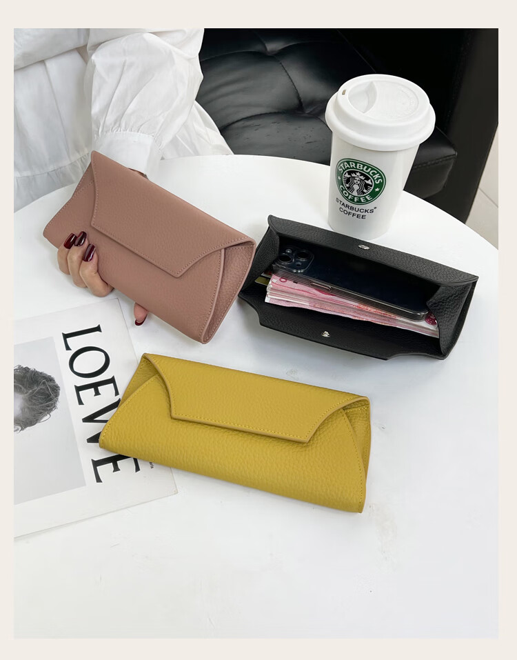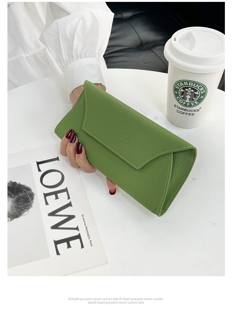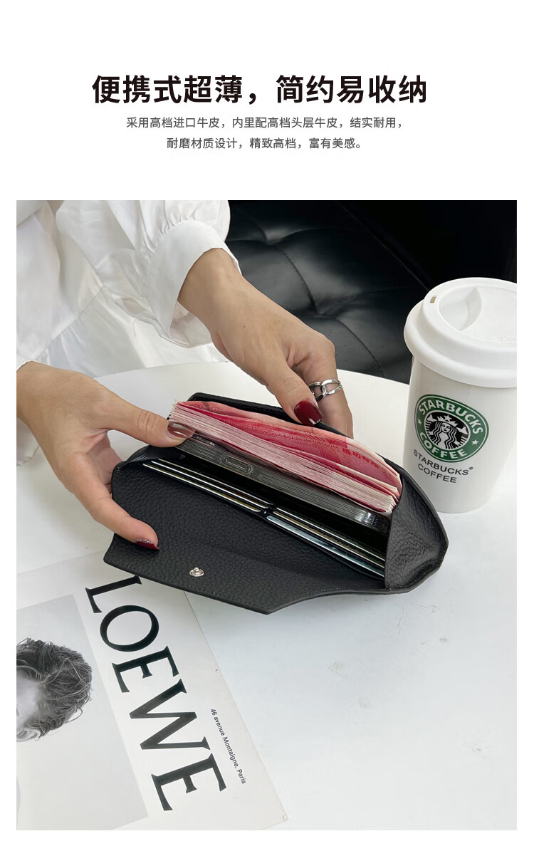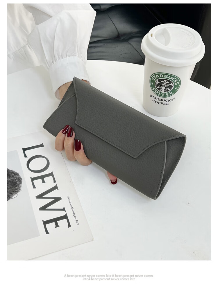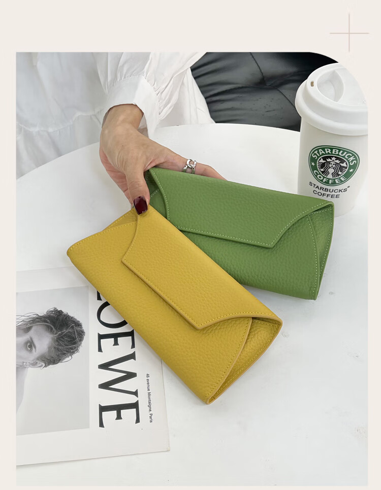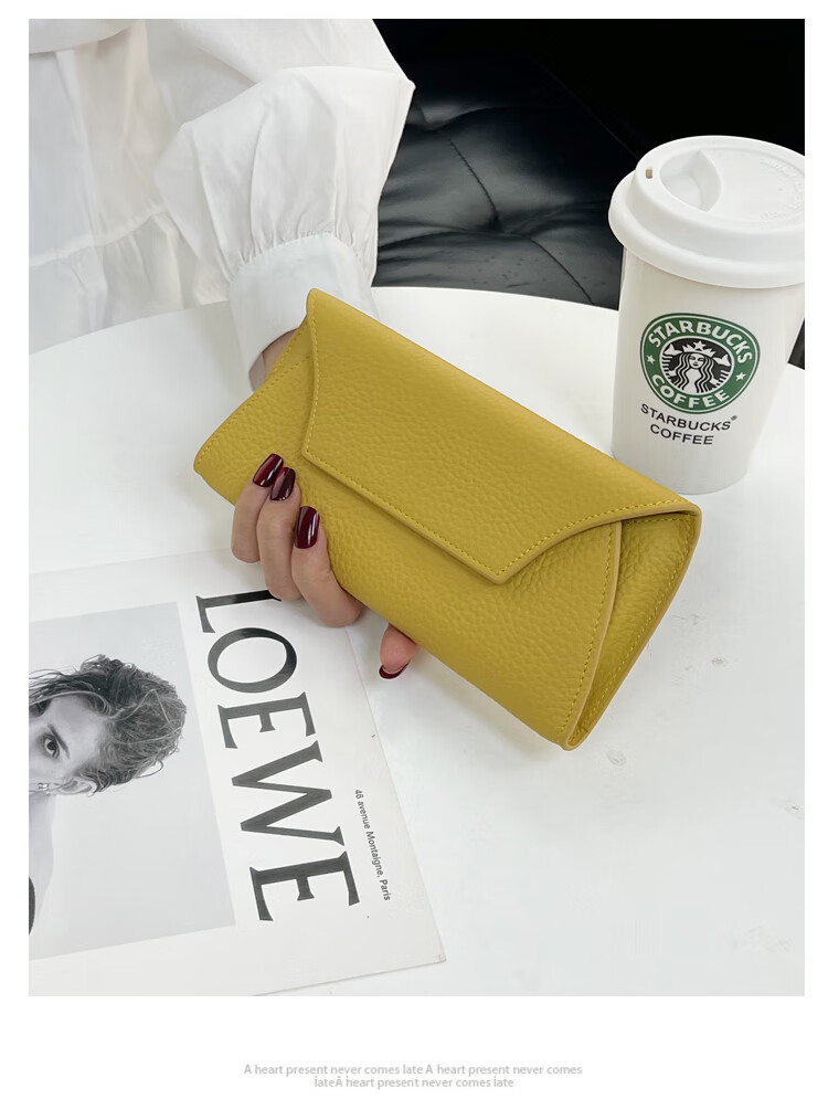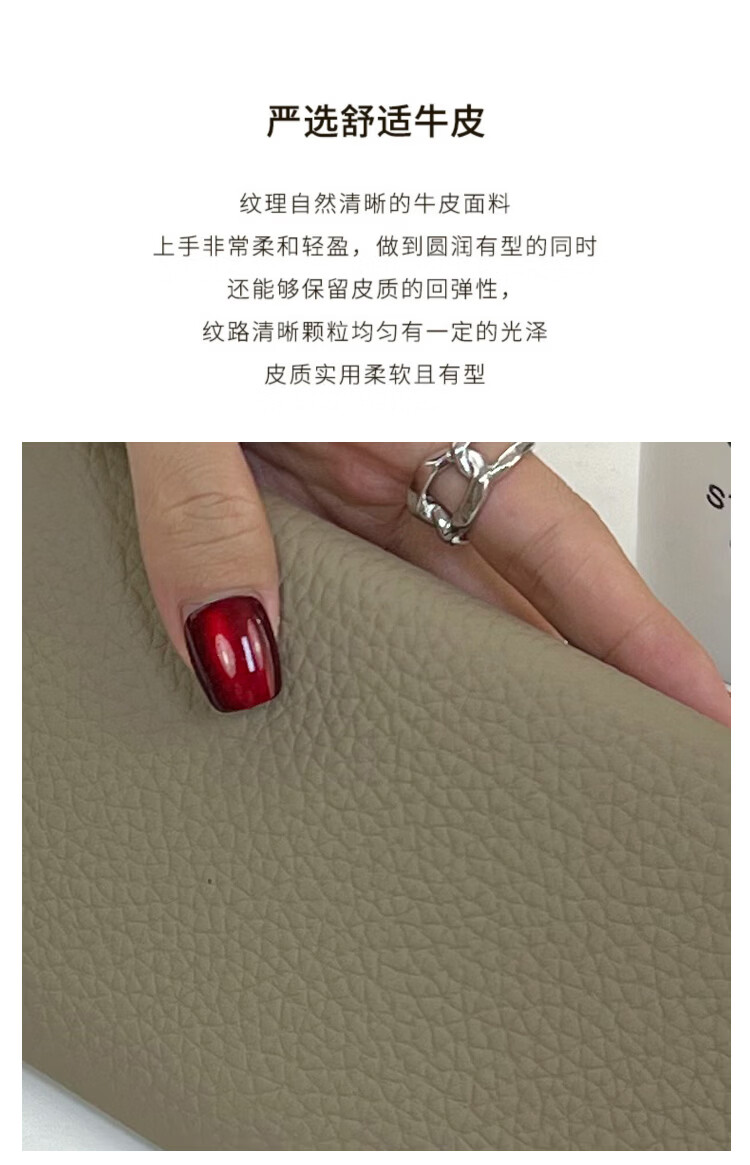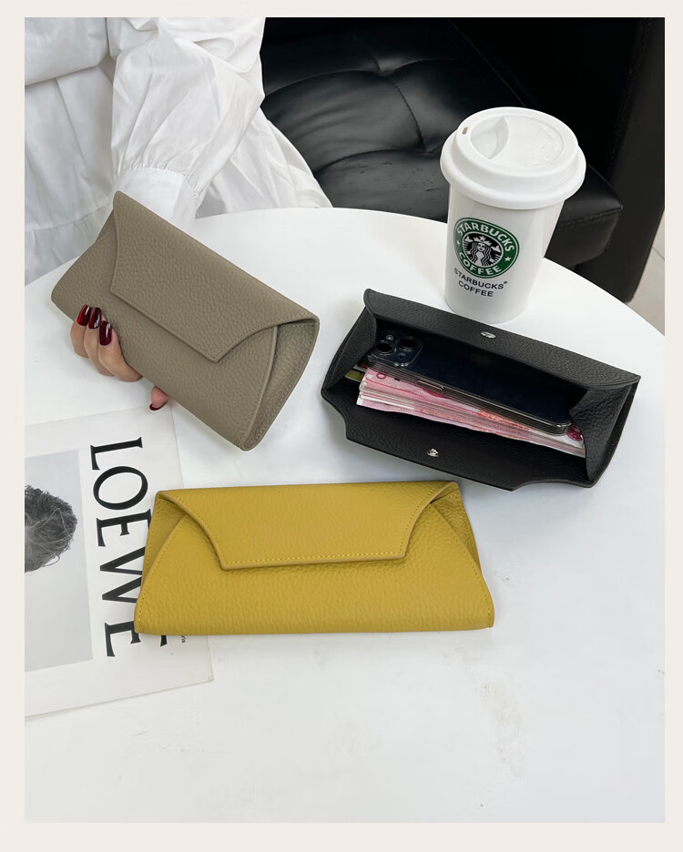 OTHER/Other genuine leather ultra-thin simple long version wallet for women 2024 new versatile pure cowhide wallet for mobile phone clutch khaki first layer cowhide