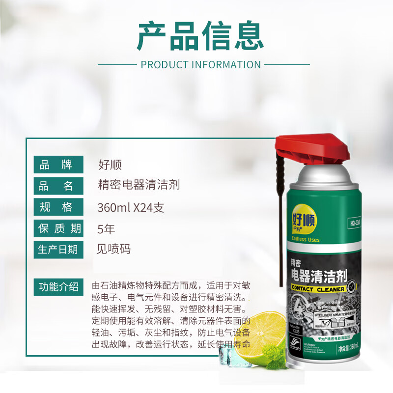 Haoshun Precision Electrical Cleaner removes dirt, removes oil, computer motherboard circuit board instrument electrical components cleaning Precision Electrical Cleaner 1 box
