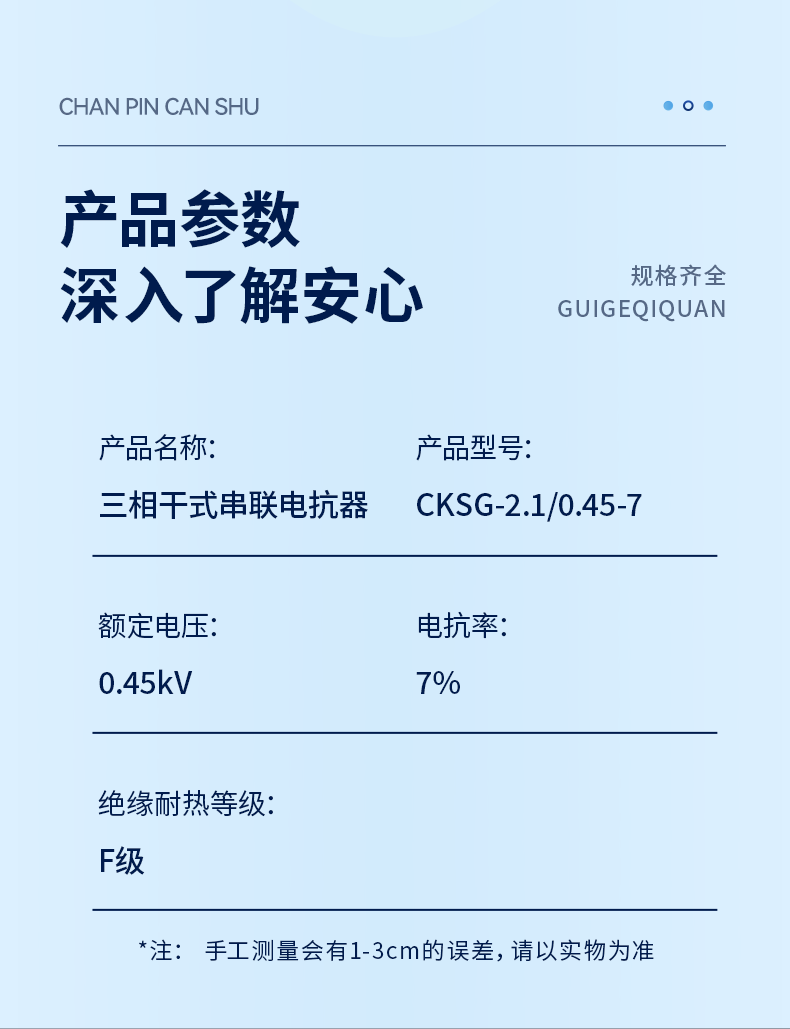 Chint series dry-type series reactor 2.1/0.45-7 is a special reactor for low-voltage capacitor compensation cabinet. Pull down the model parameters to view, consult customer service to enjoy discounts