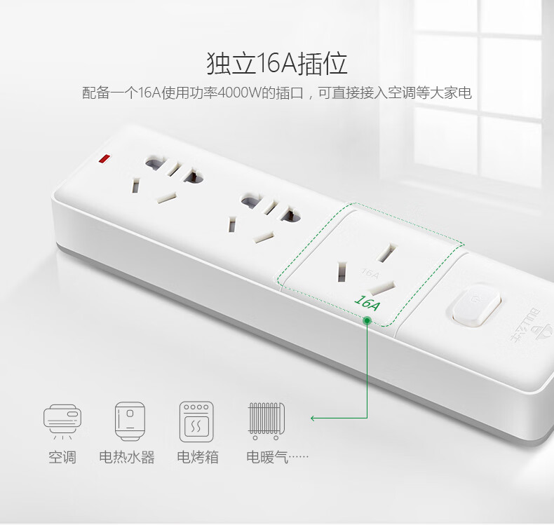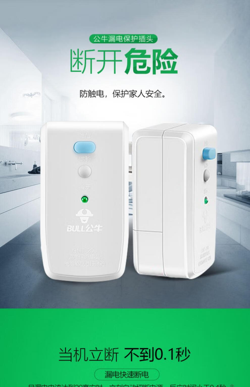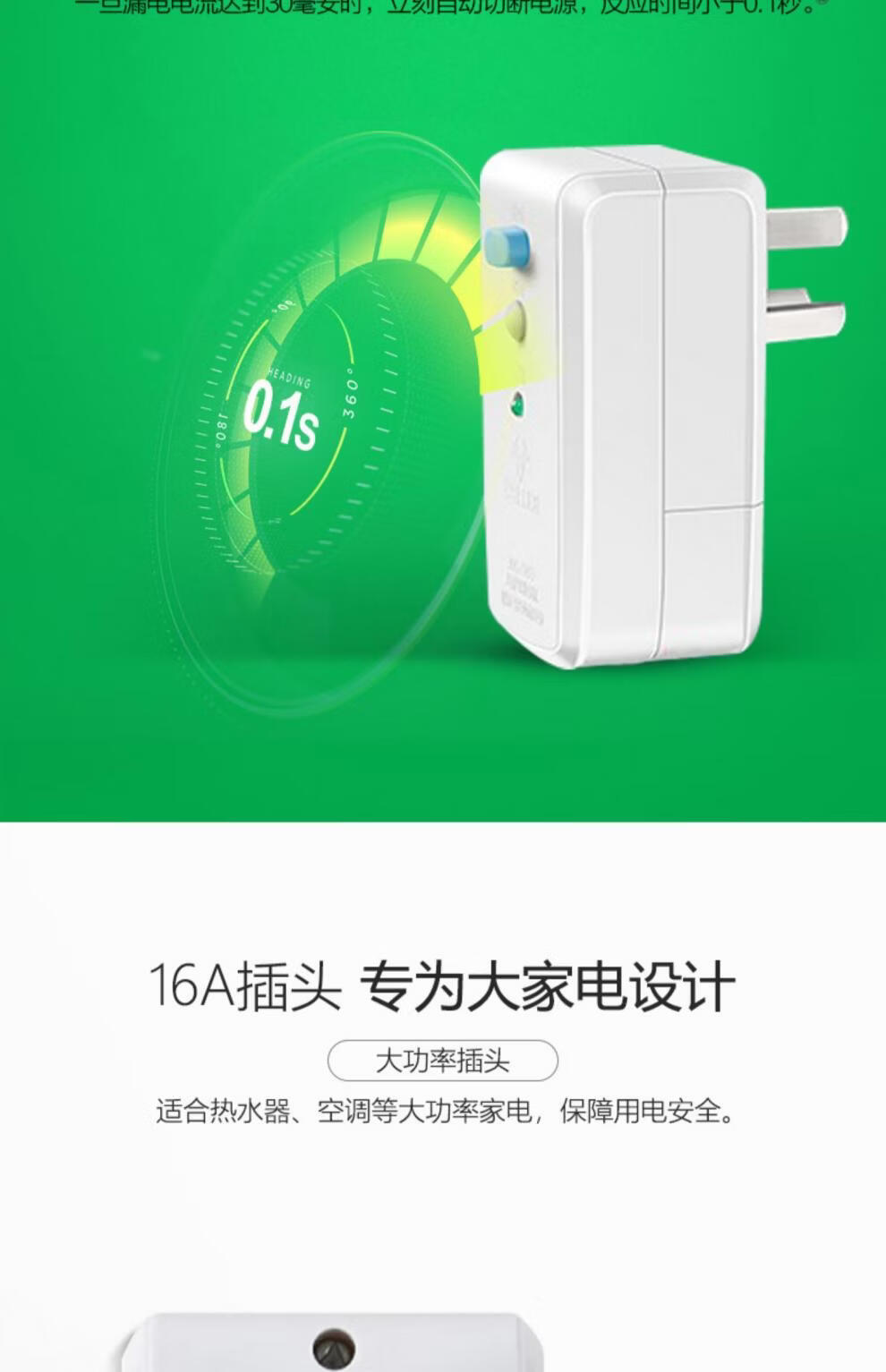 Bull air conditioning socket with leakage protection plug 16 high power 10-turn plug converter strip water heater upgrade 103D_cable length 5cm upgrade
