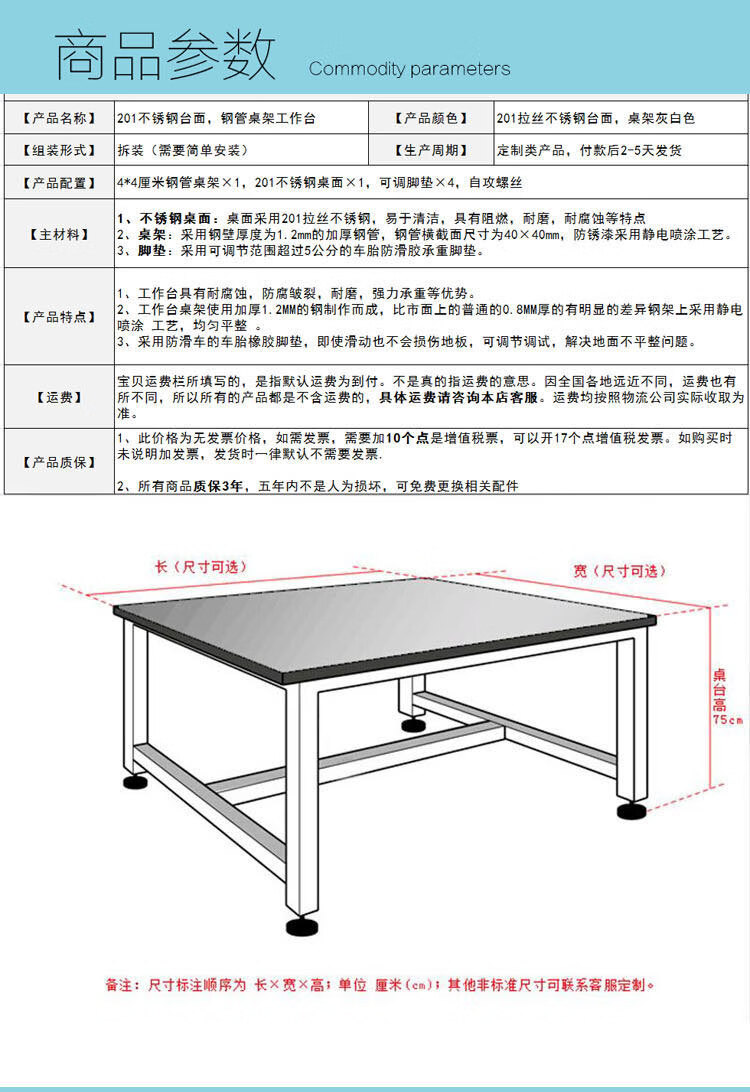 Laboratory stainless steel operating table workbench Customized stainless steel loading table upgrade 24010075_201 stainless steel clad wooden board + iron table legs upgrade
