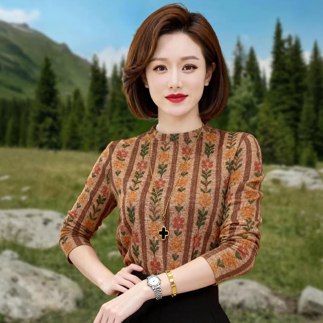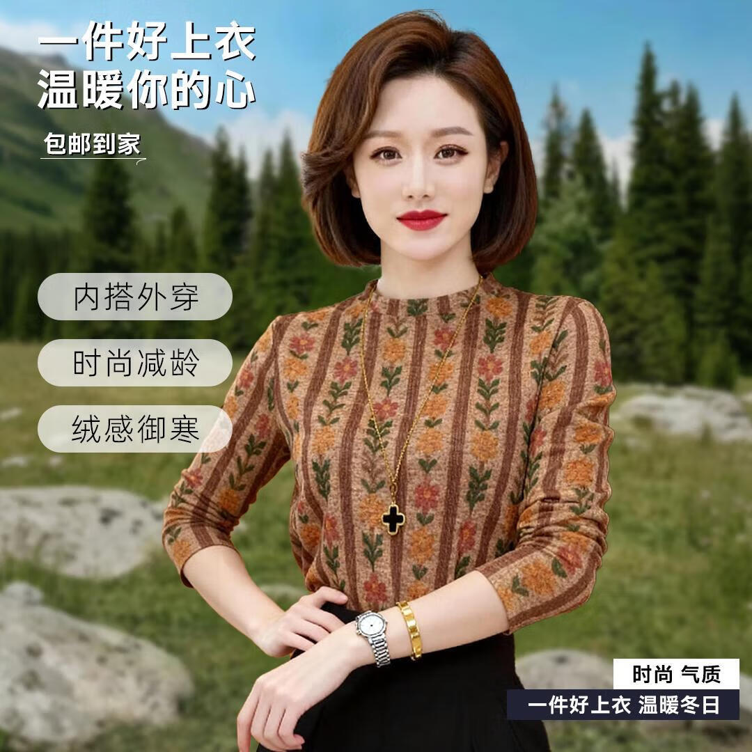 Original counter original autumn and winter printed high-grade flannel bottoming shirt, fashionable and versatile loose shirt that covers the belly and looks slimming, printed bottoming shirt (picture color) XL recommended weight 90-105 catties