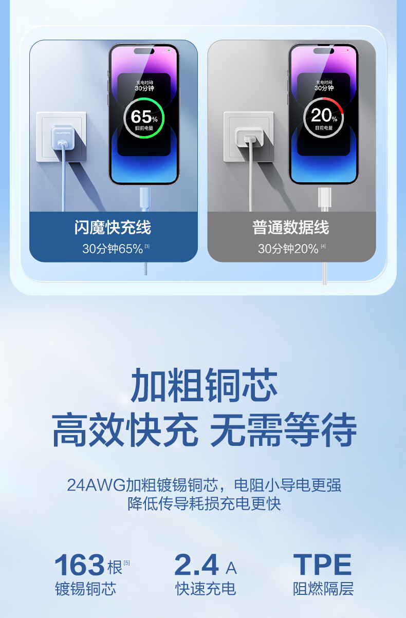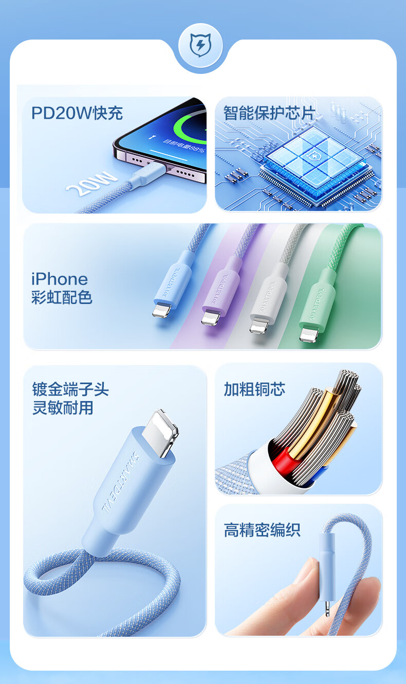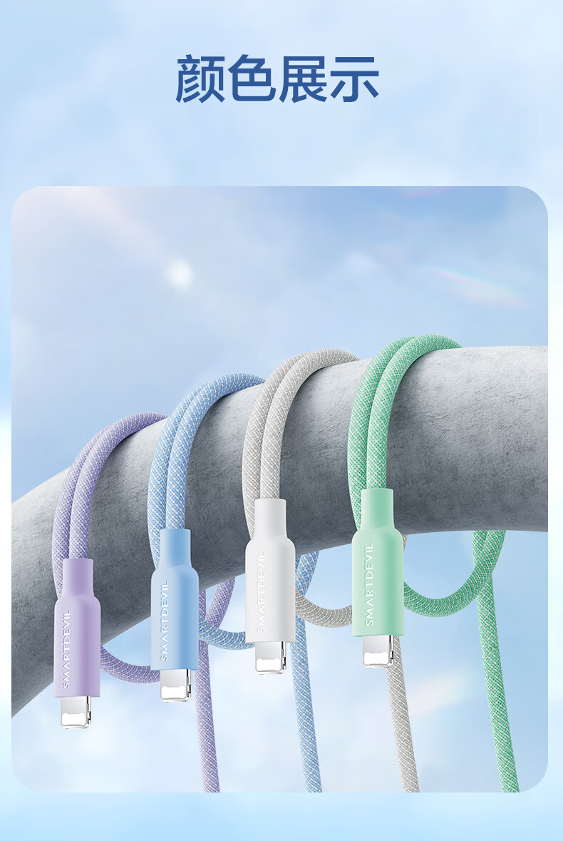 Flash magic suitable for Apple 6-14 universal data cable fast charging cable 14 promax mobile phone Type-C charging ipad tablet 12 suitable for 13 hidden gray 1.2 meters rainbow braided cable PD20W fast charging | safe and durable
