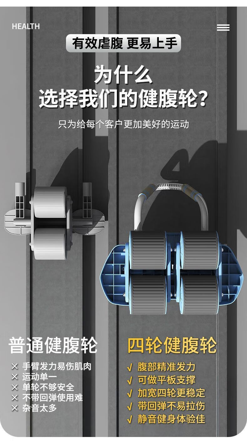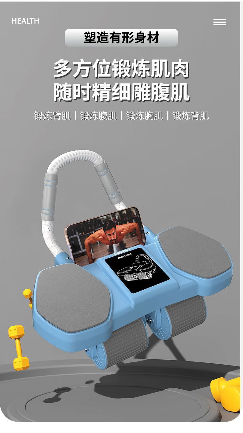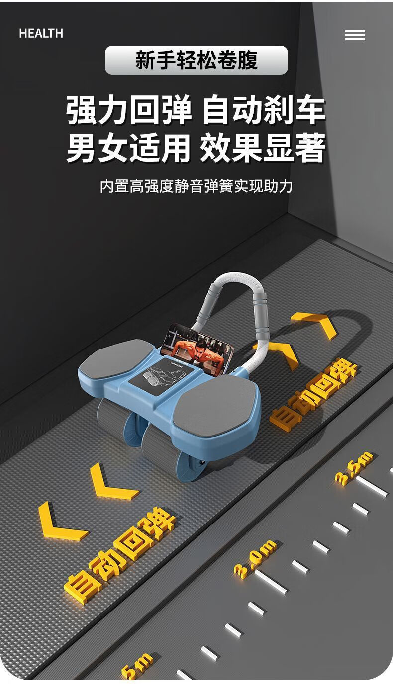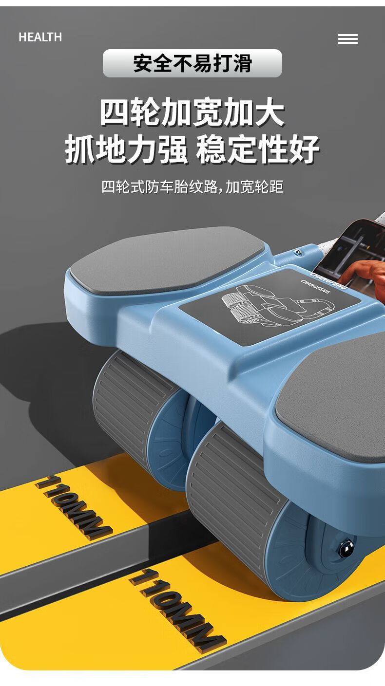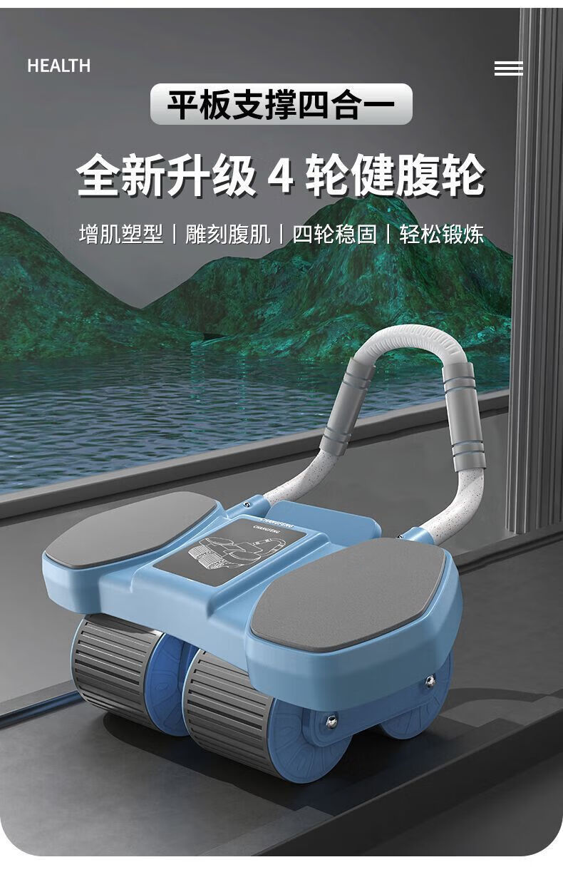 Newly upgraded 4-wheel abdominal wheel, abdominal wheel support type, automatic rebound, abdominal muscle contraction, men's and women's fitness equipment, abdominal wheel + yoga mat + kneeling mat (divided into two express delivery