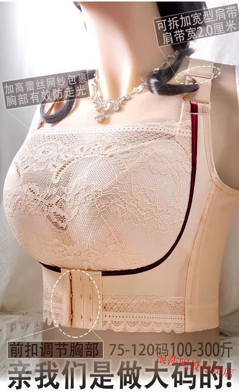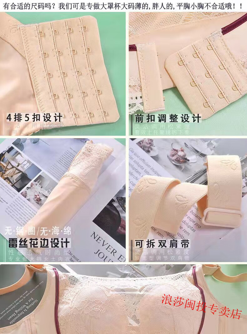 LangSha underwear fat mm large size bra front button bra front button new breathable lace anti-sag and anti-exposure bra skin color 90E (thin cup big breast wear #232) 40