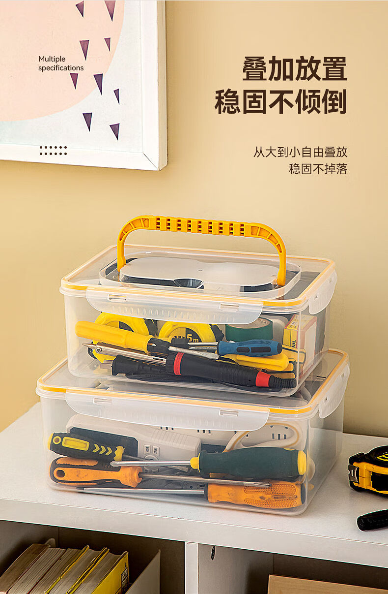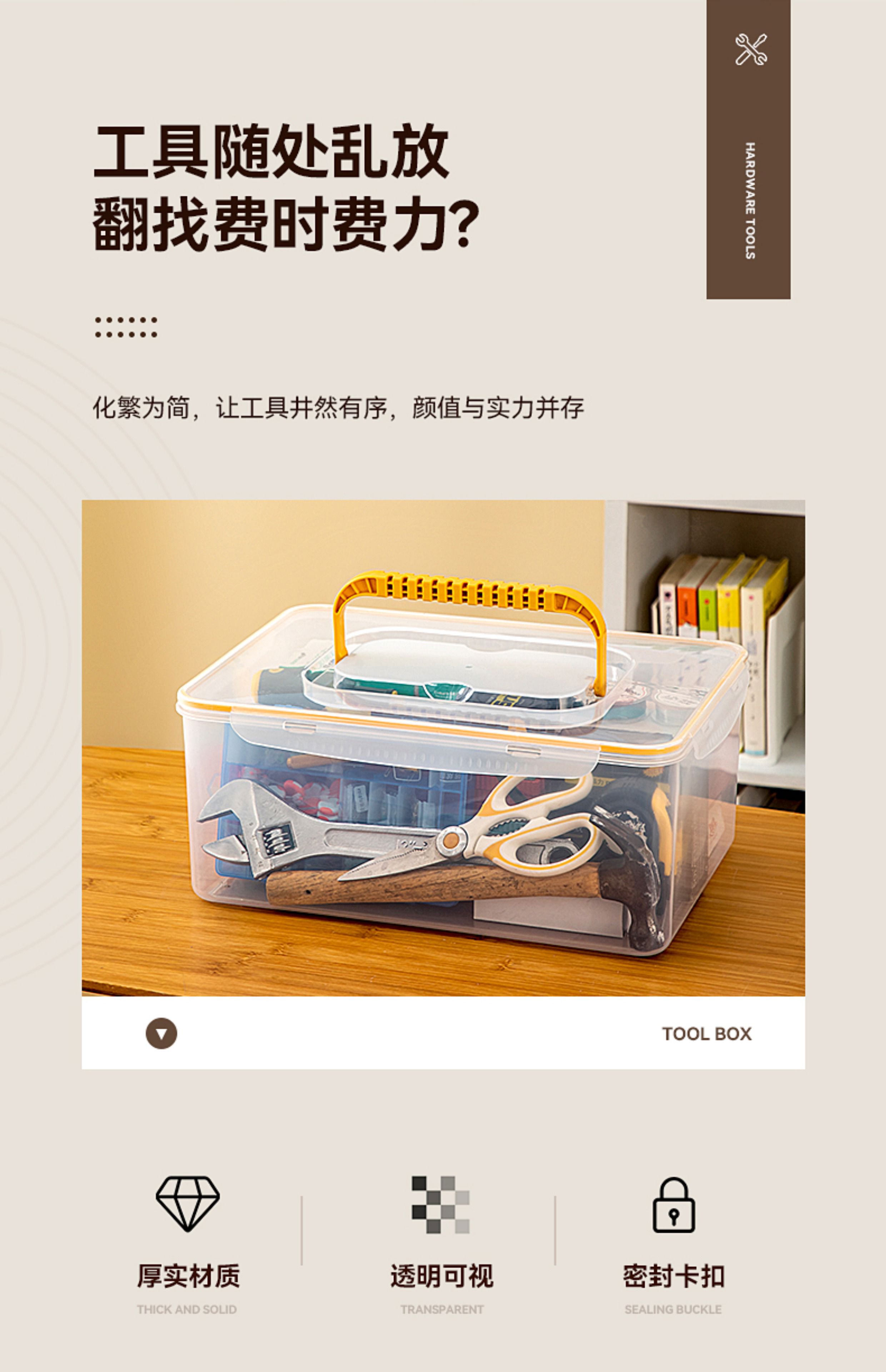 Jieyunmao Hardware Tool Box Screw Parts Accessories Storage Box Household Multi-Function Portable Transparent Plastic Storage Organizing Box Large Size 1 Pack