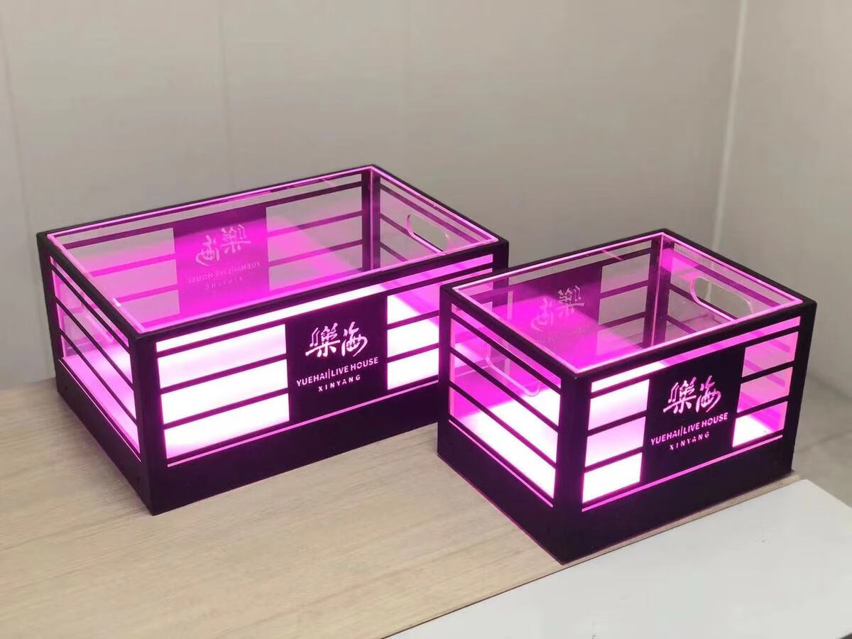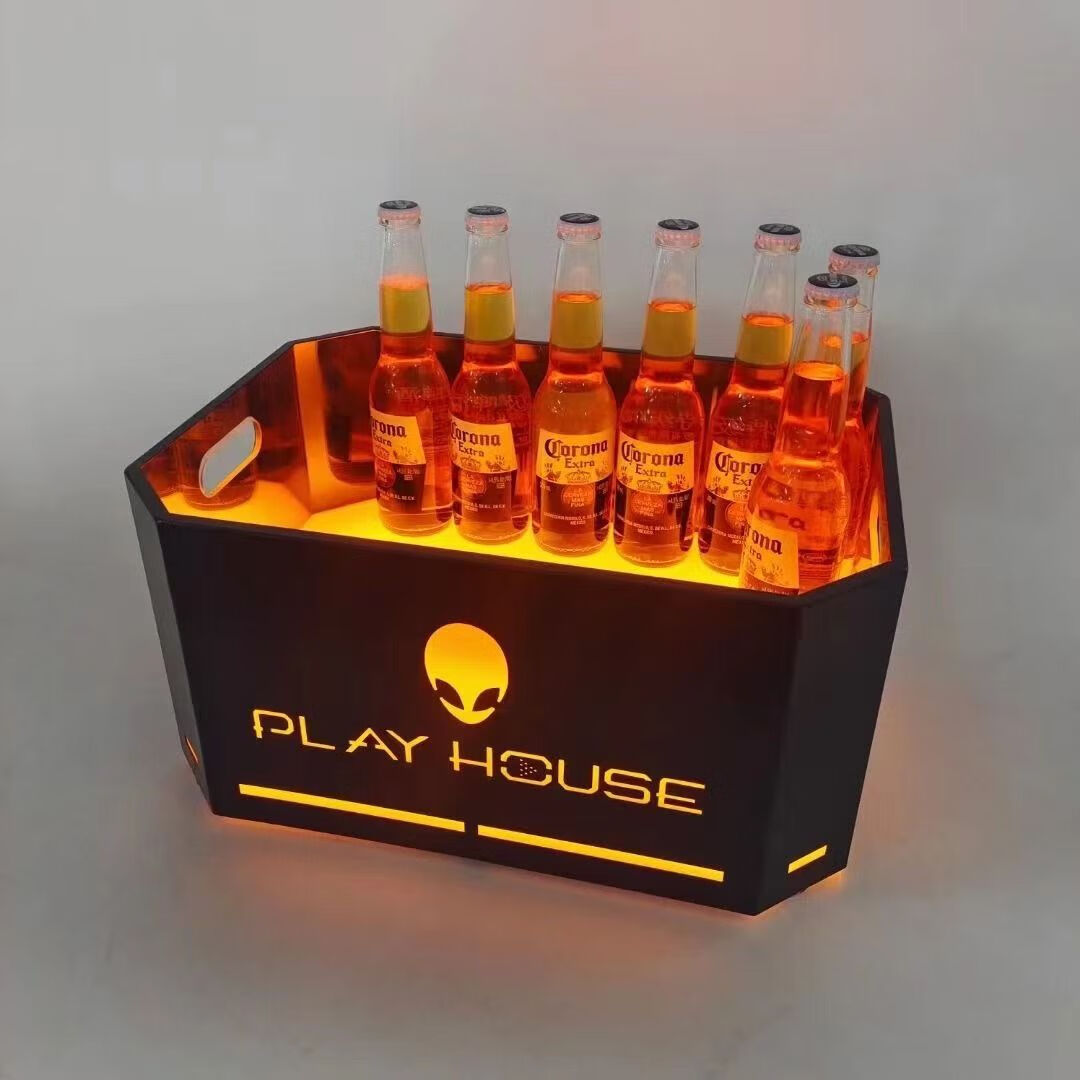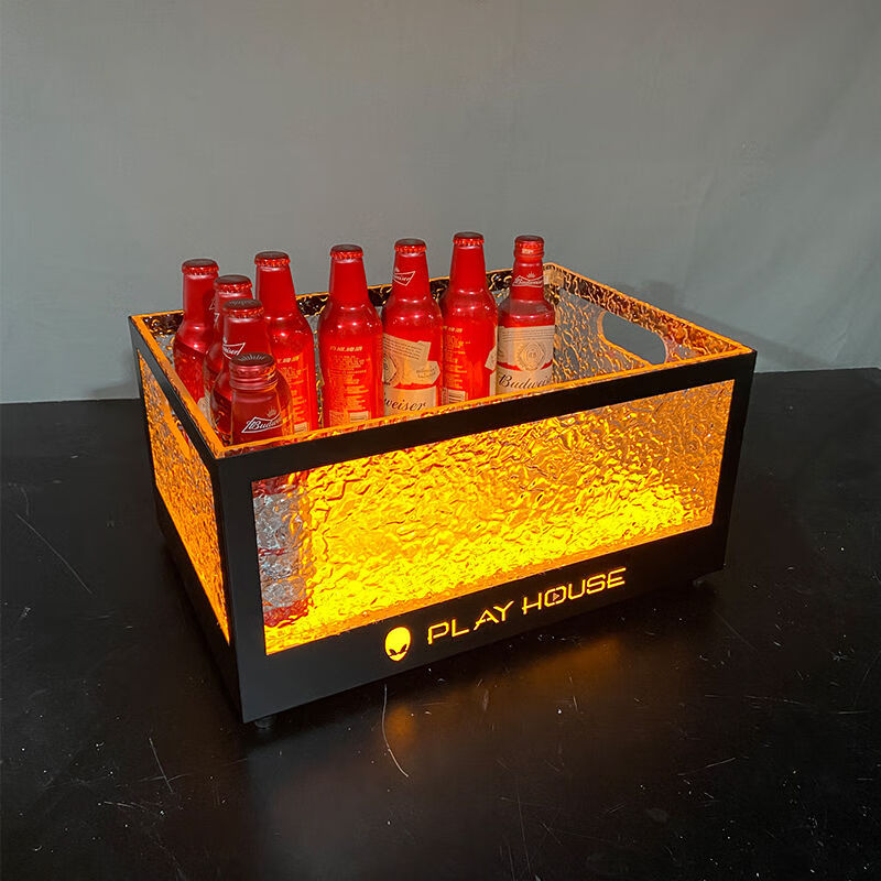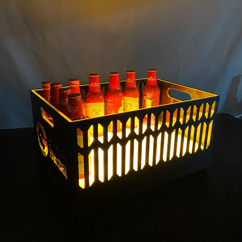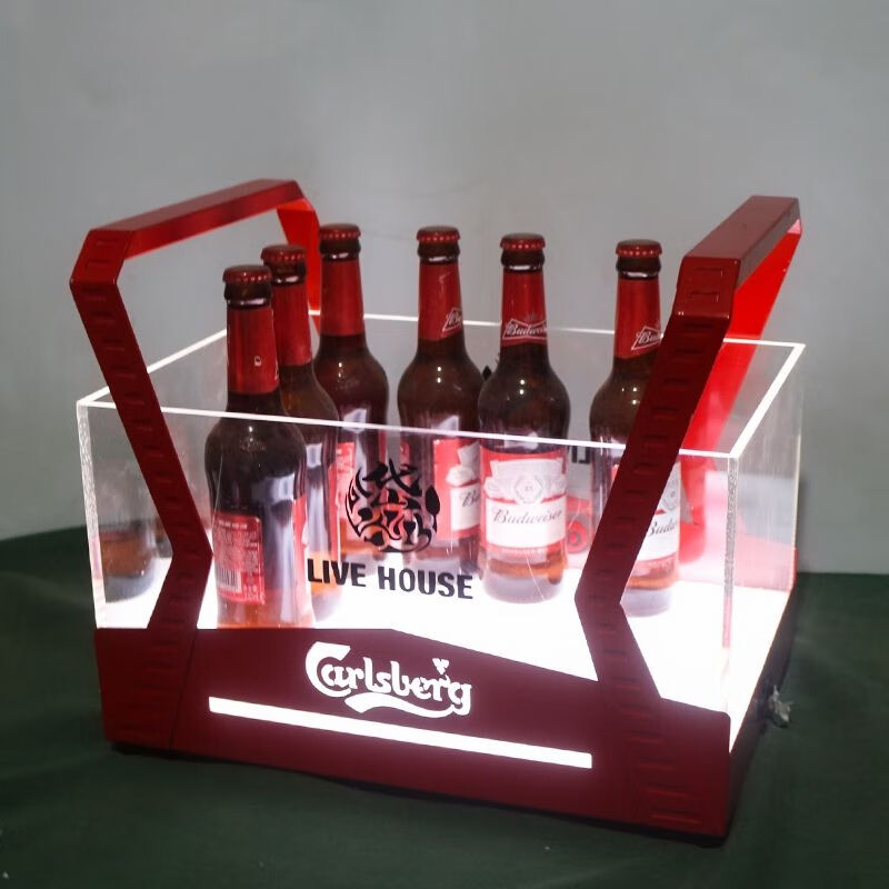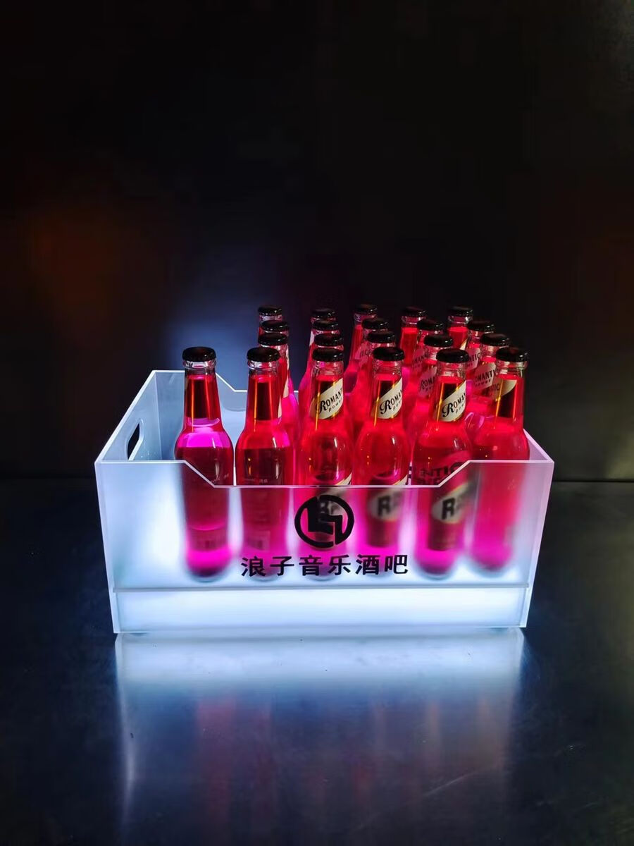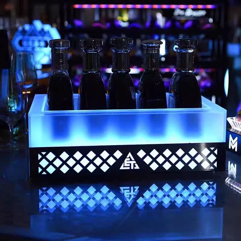 Fantasy bar luminous wine frame V beer basket champagne bucket E luminous ice bucket ice pattern pc anti-fall 24-pack black bottom injection molded wine frame