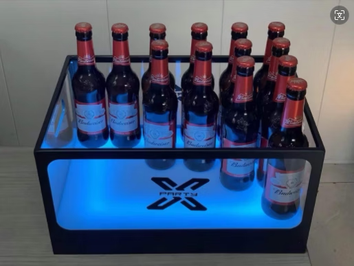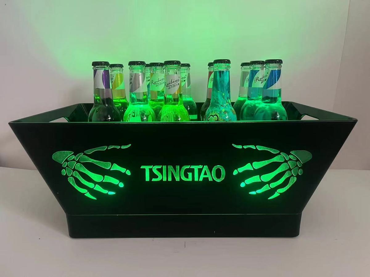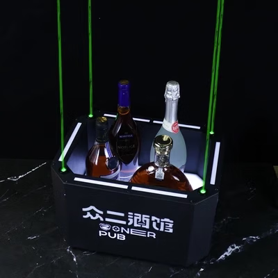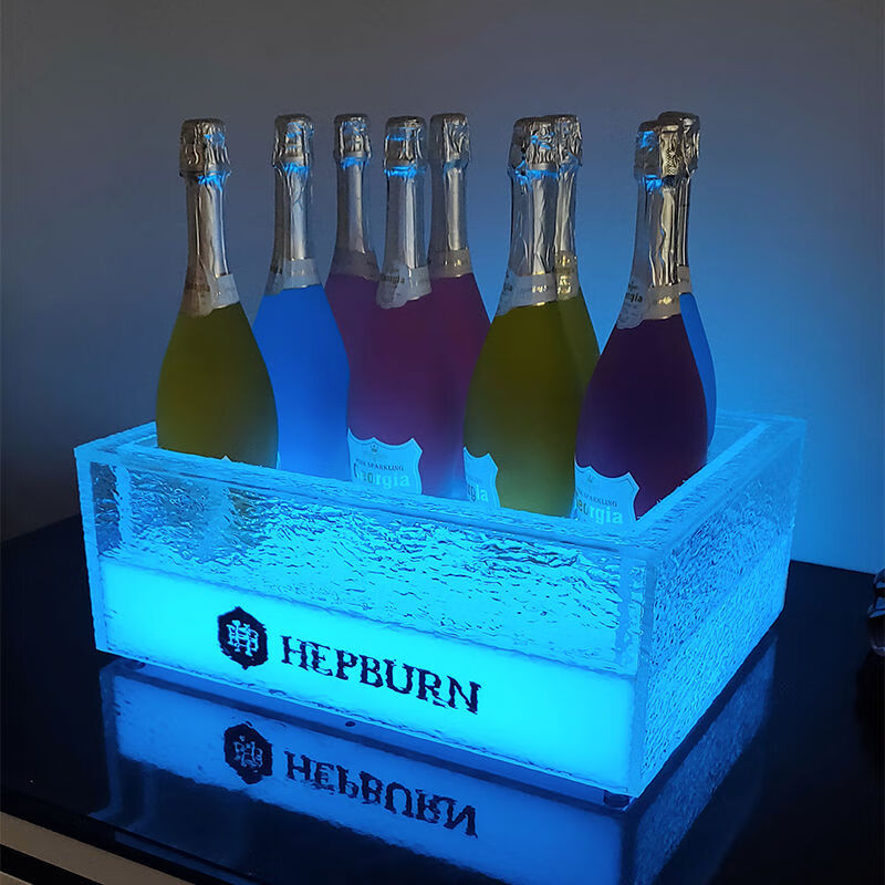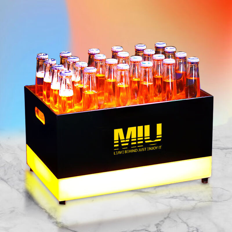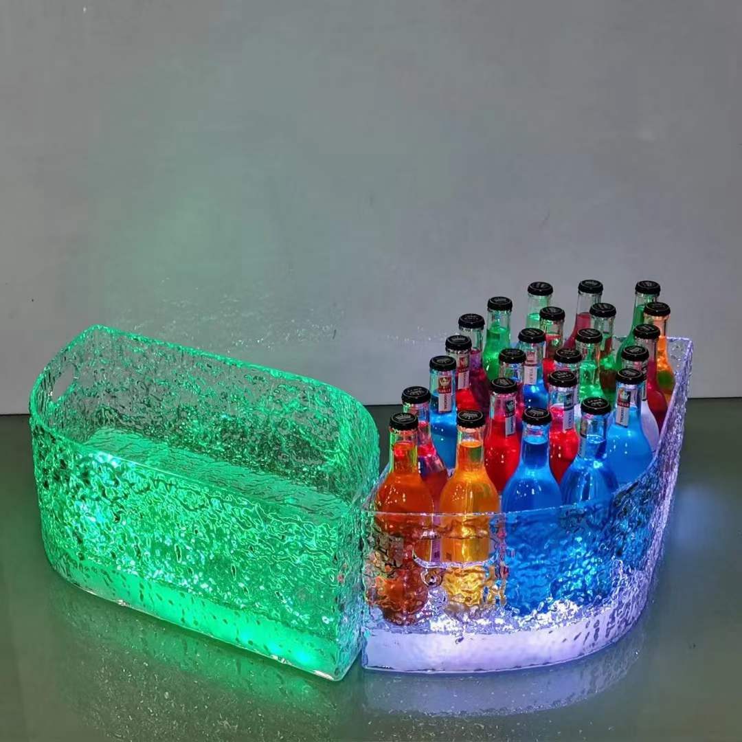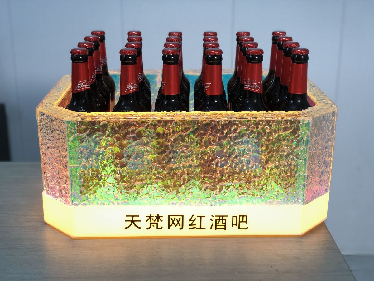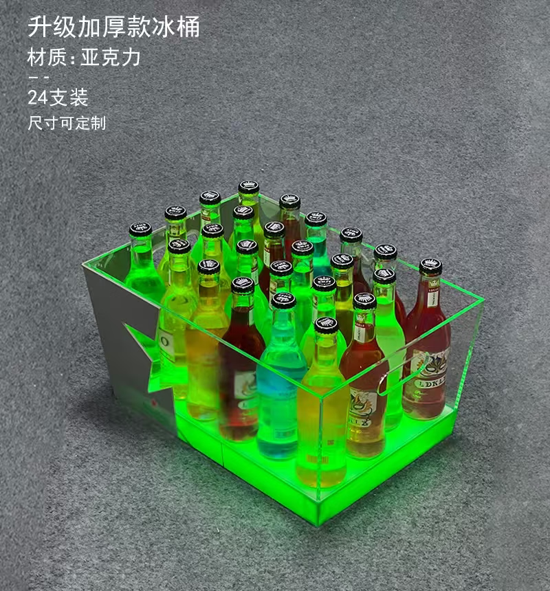 Fantasy bar luminous wine frame V beer basket champagne bucket E luminous ice bucket ice pattern pc anti-fall 24-pack black bottom injection molded wine frame