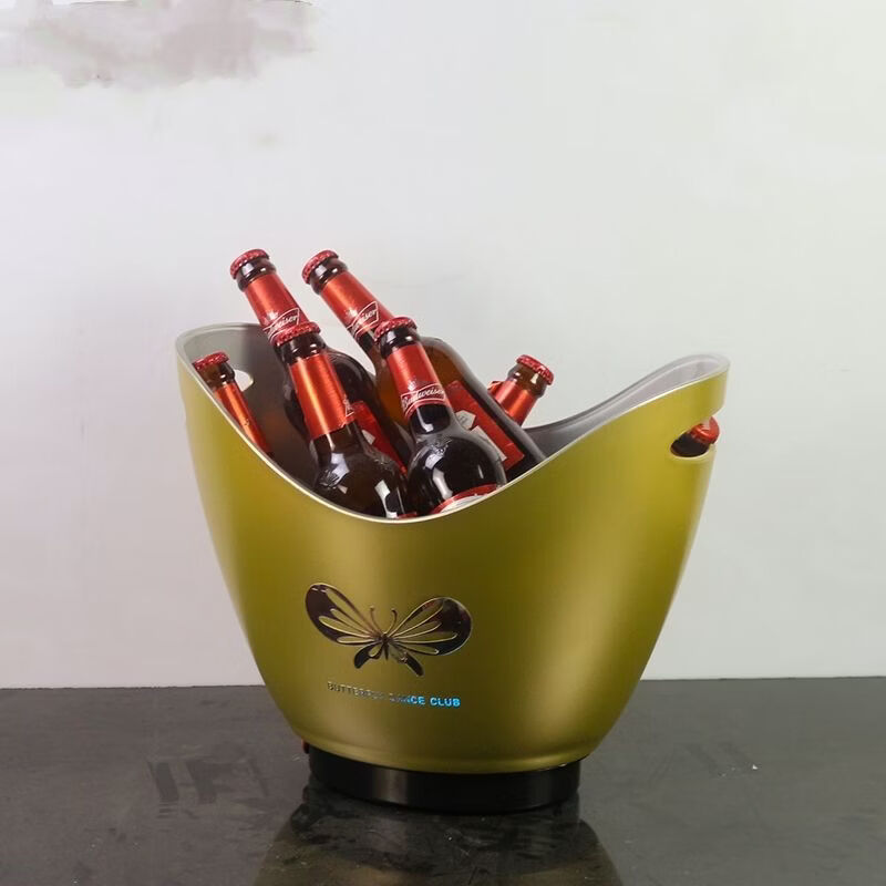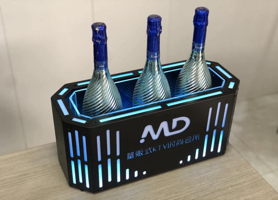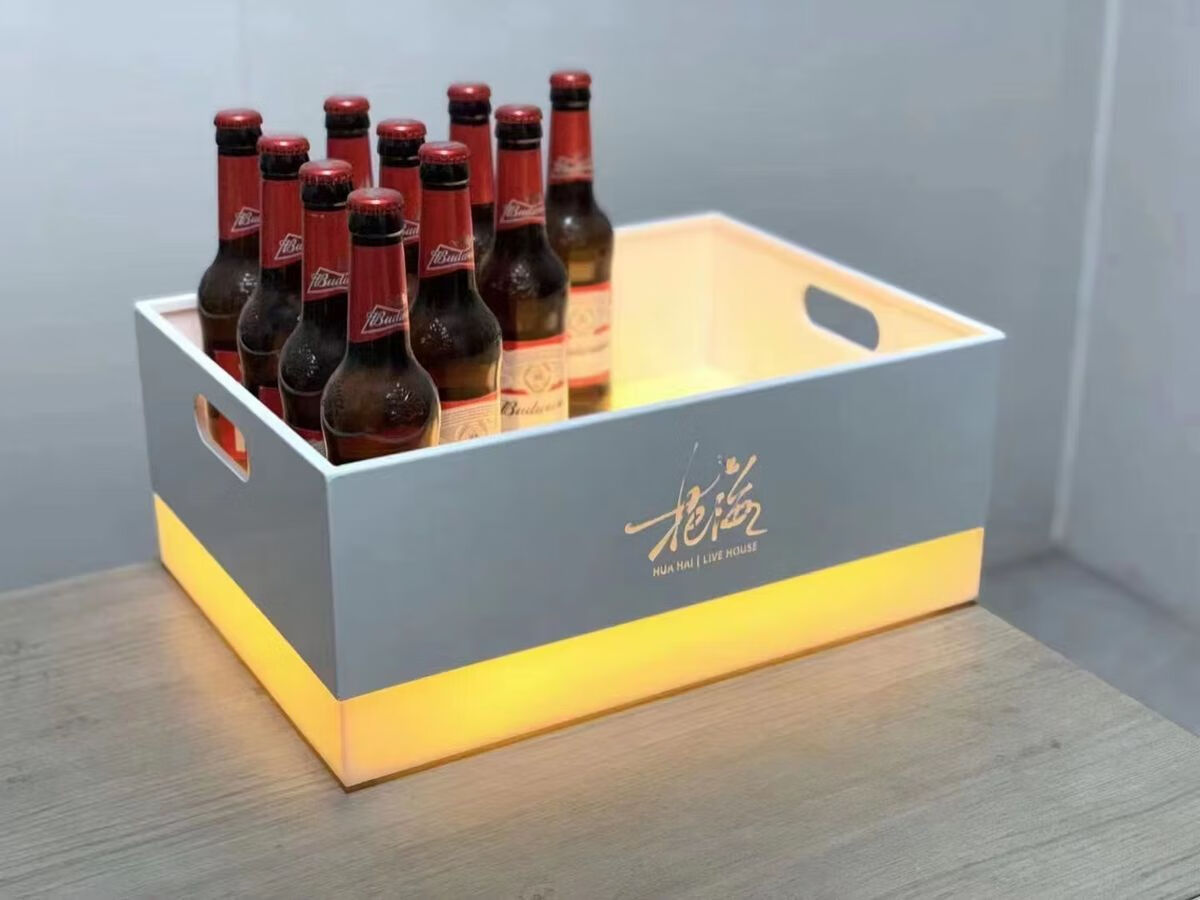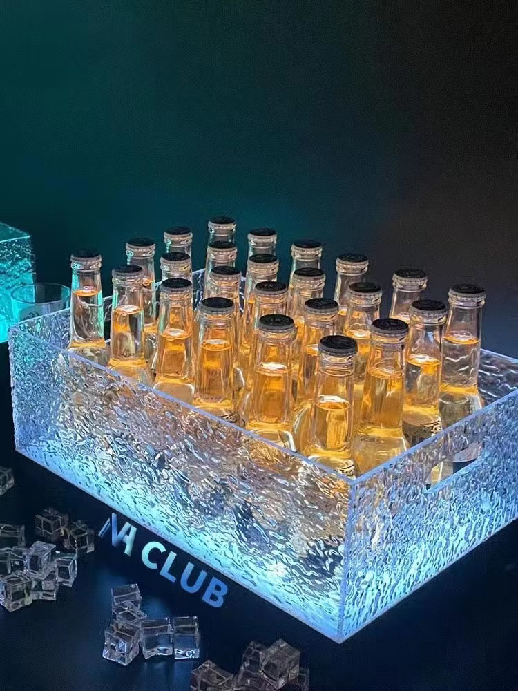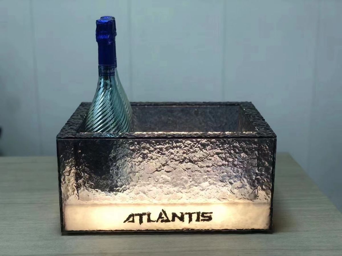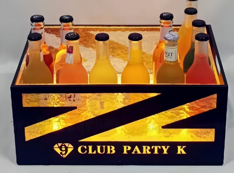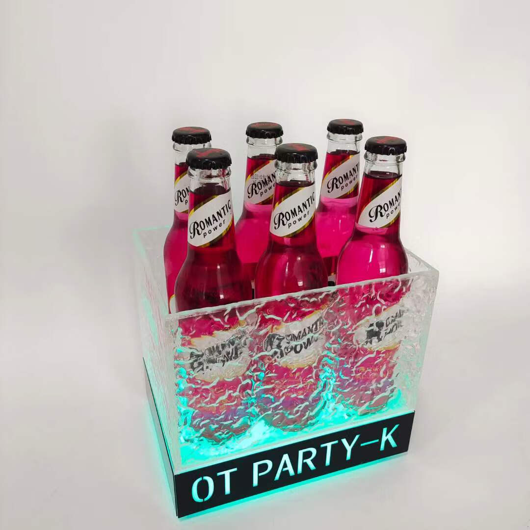 Fantasy bar luminous wine frame V beer basket champagne bucket E luminous ice bucket ice pattern pc anti-fall 24-pack black bottom injection molded wine frame