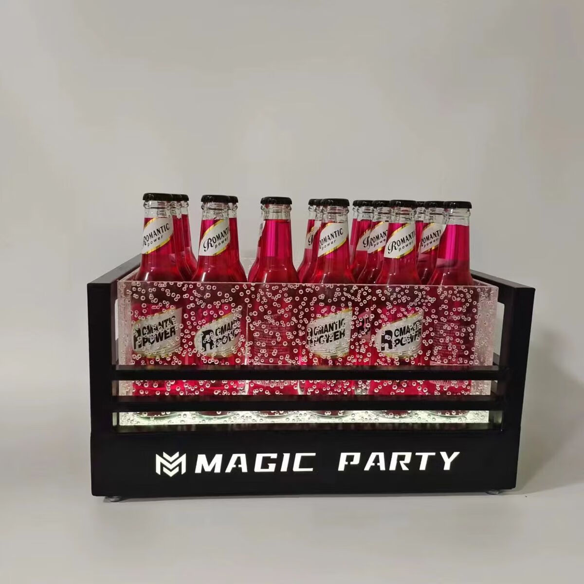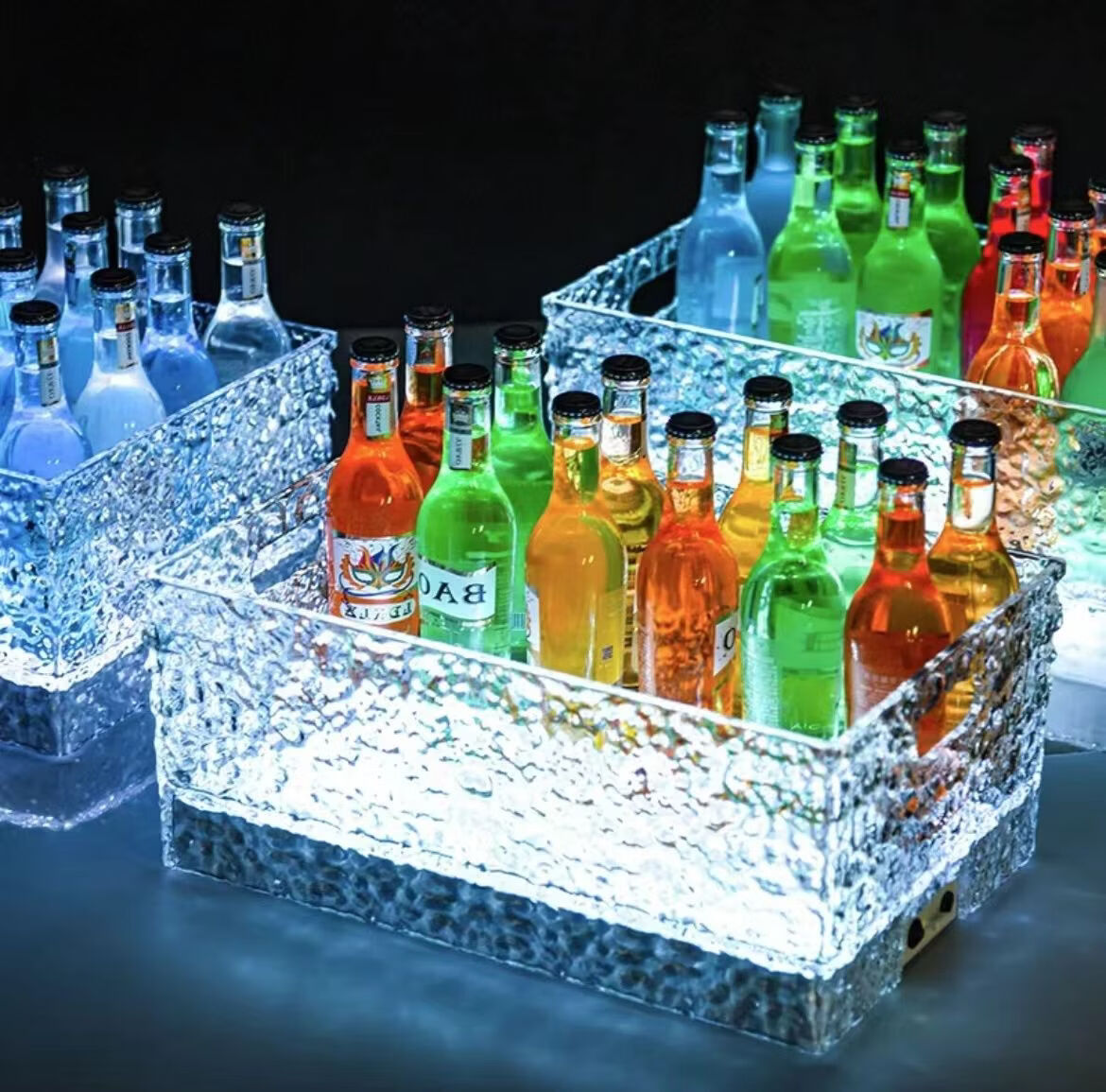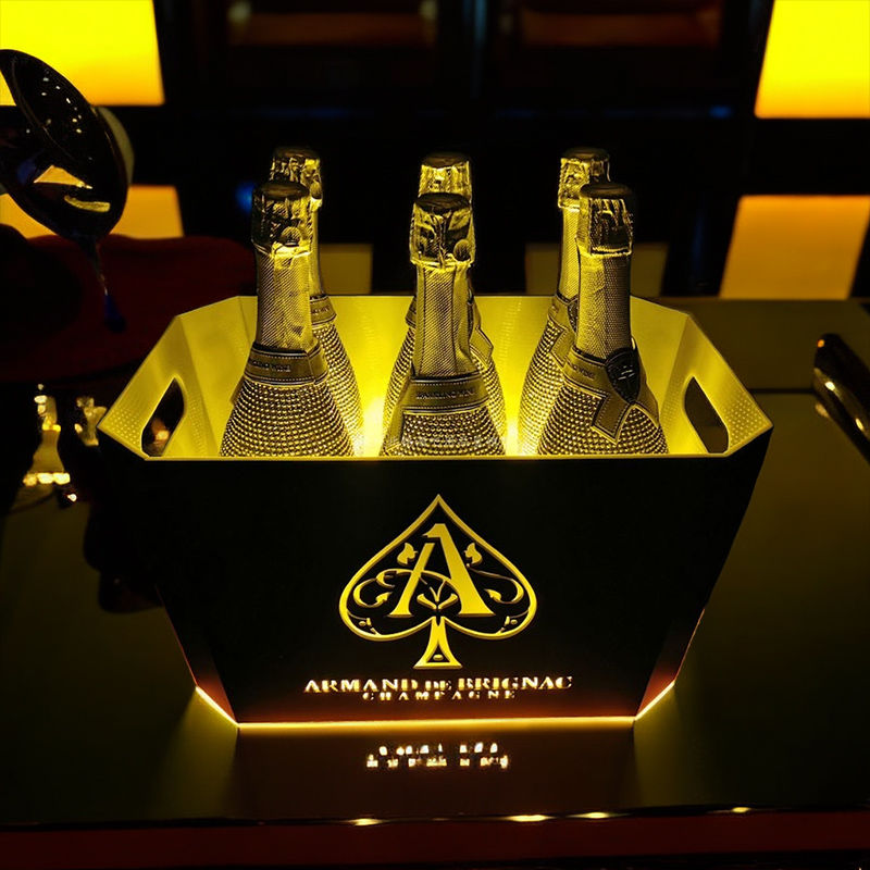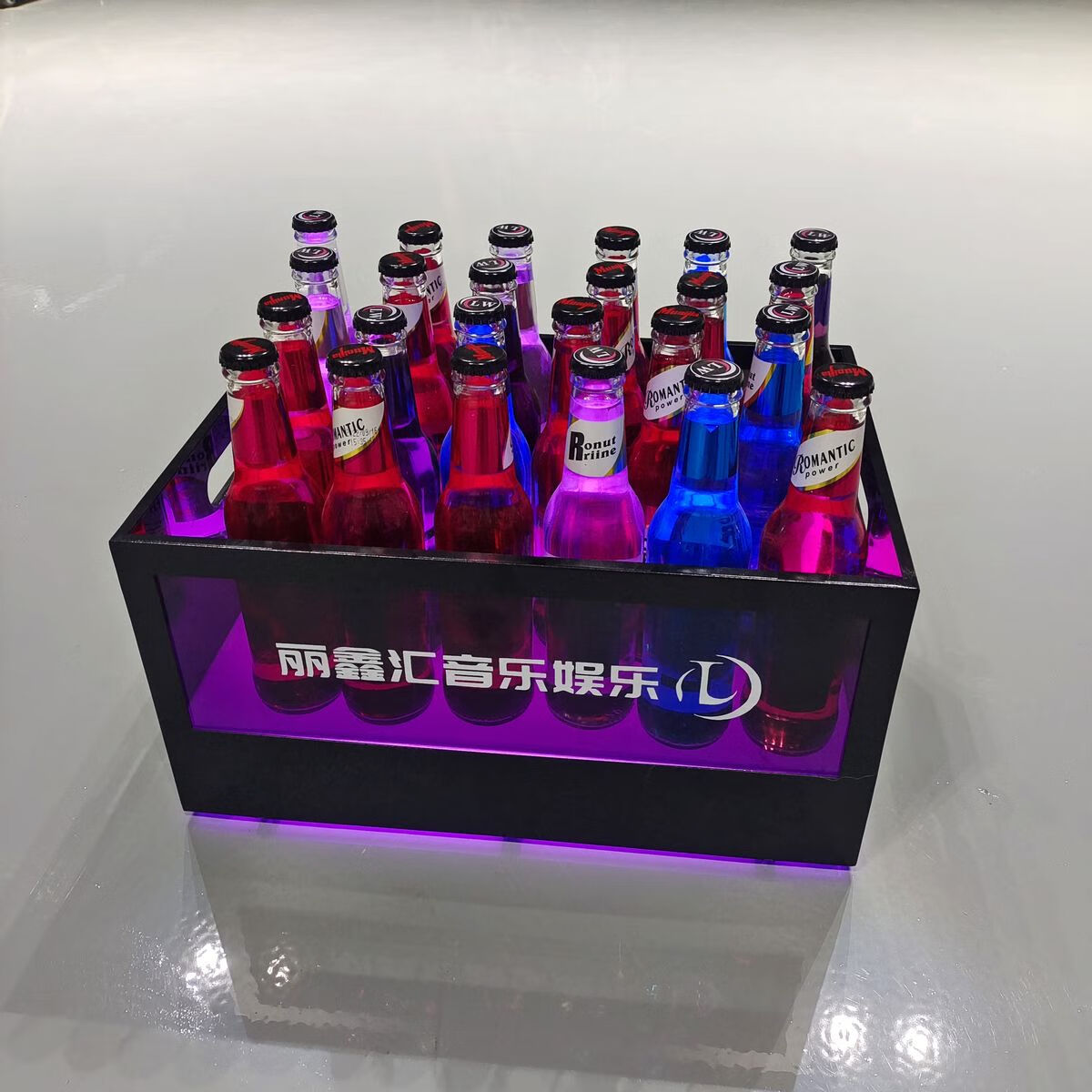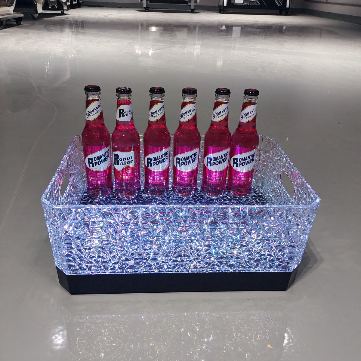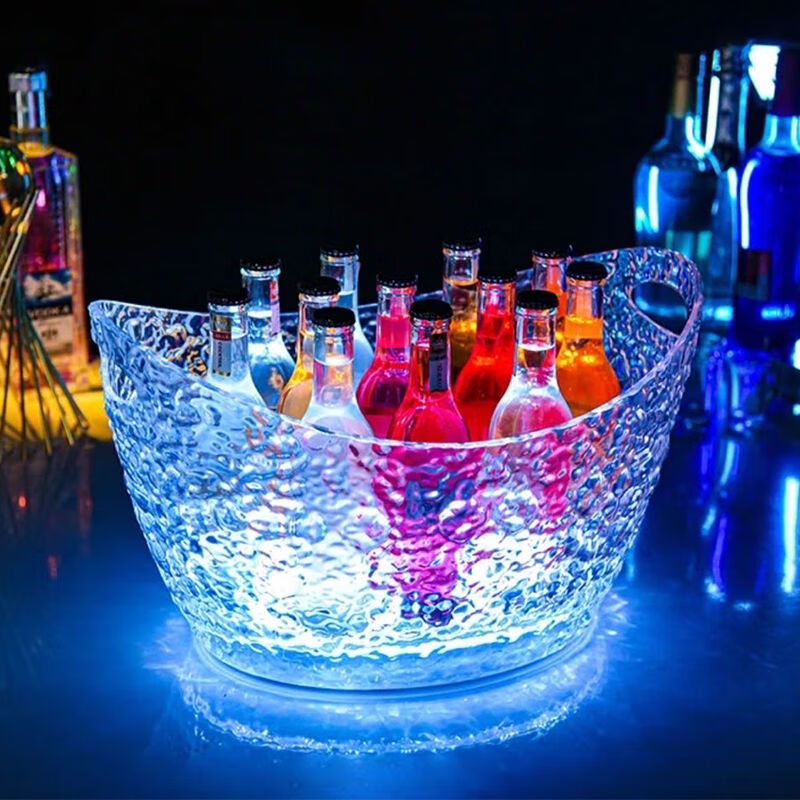 Fantasy bar luminous wine frame V beer basket champagne bucket E luminous ice bucket ice pattern pc anti-fall 24-pack black bottom injection molded wine frame