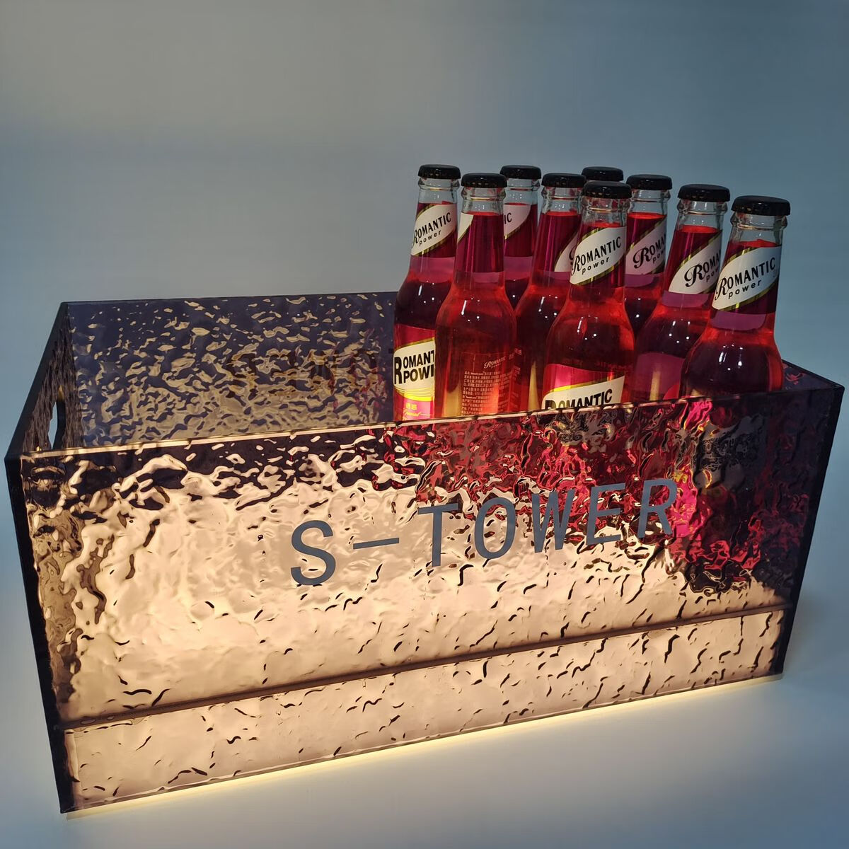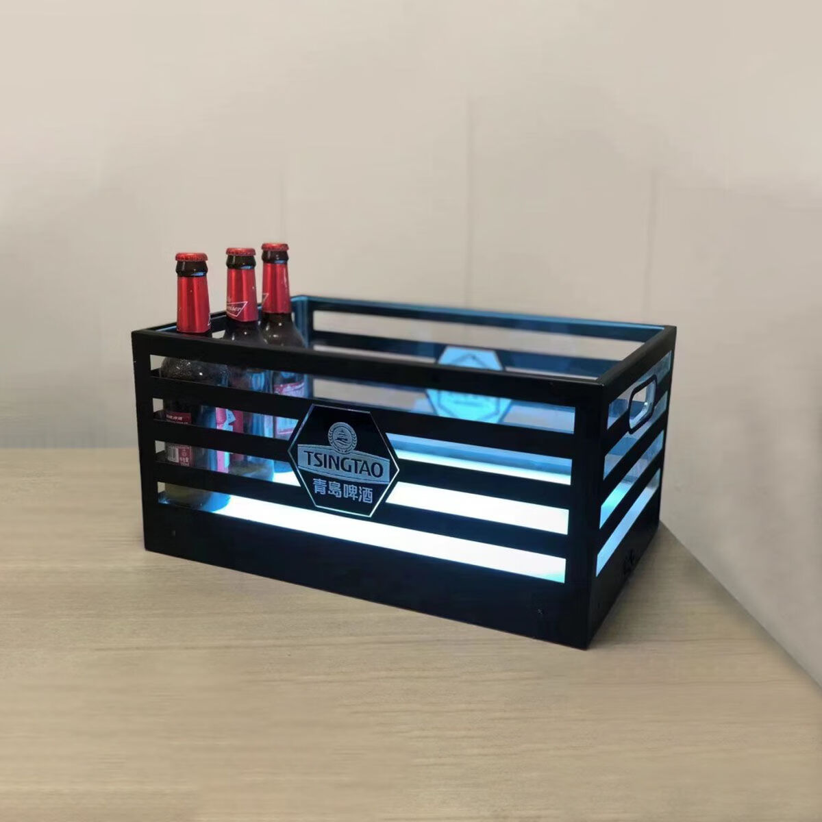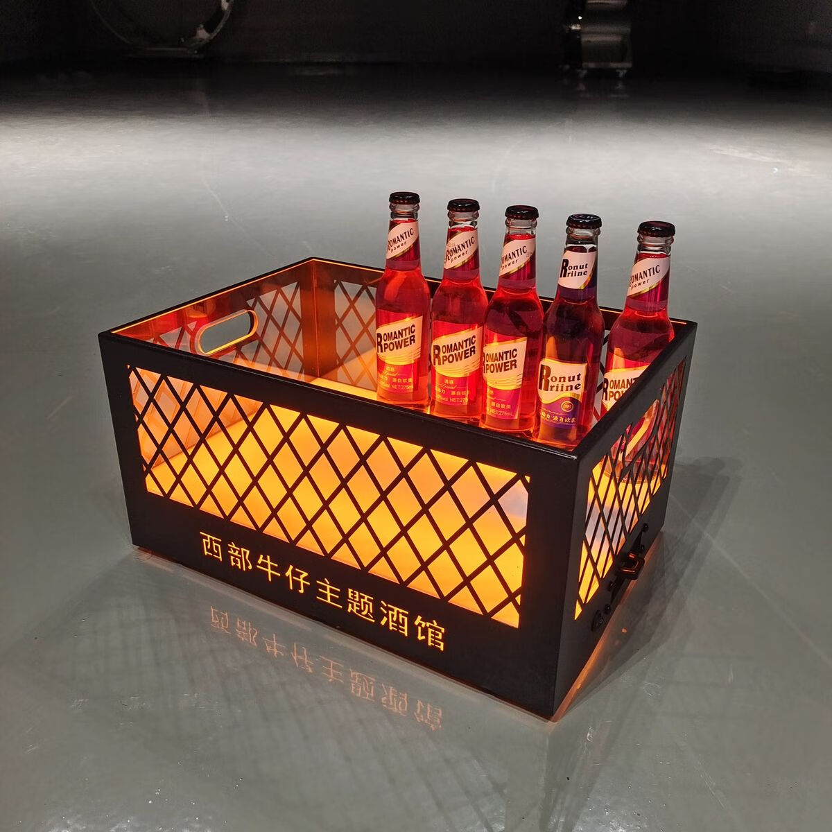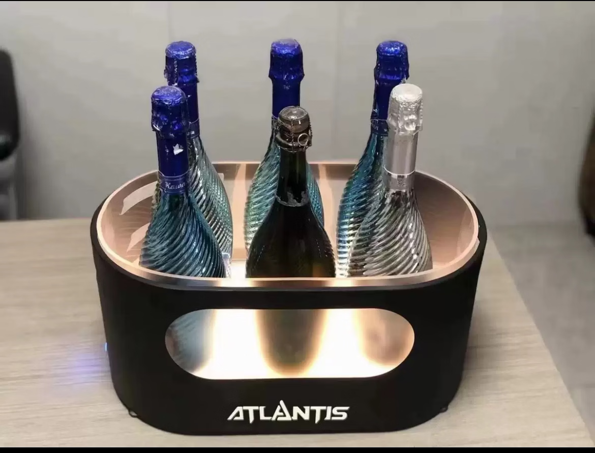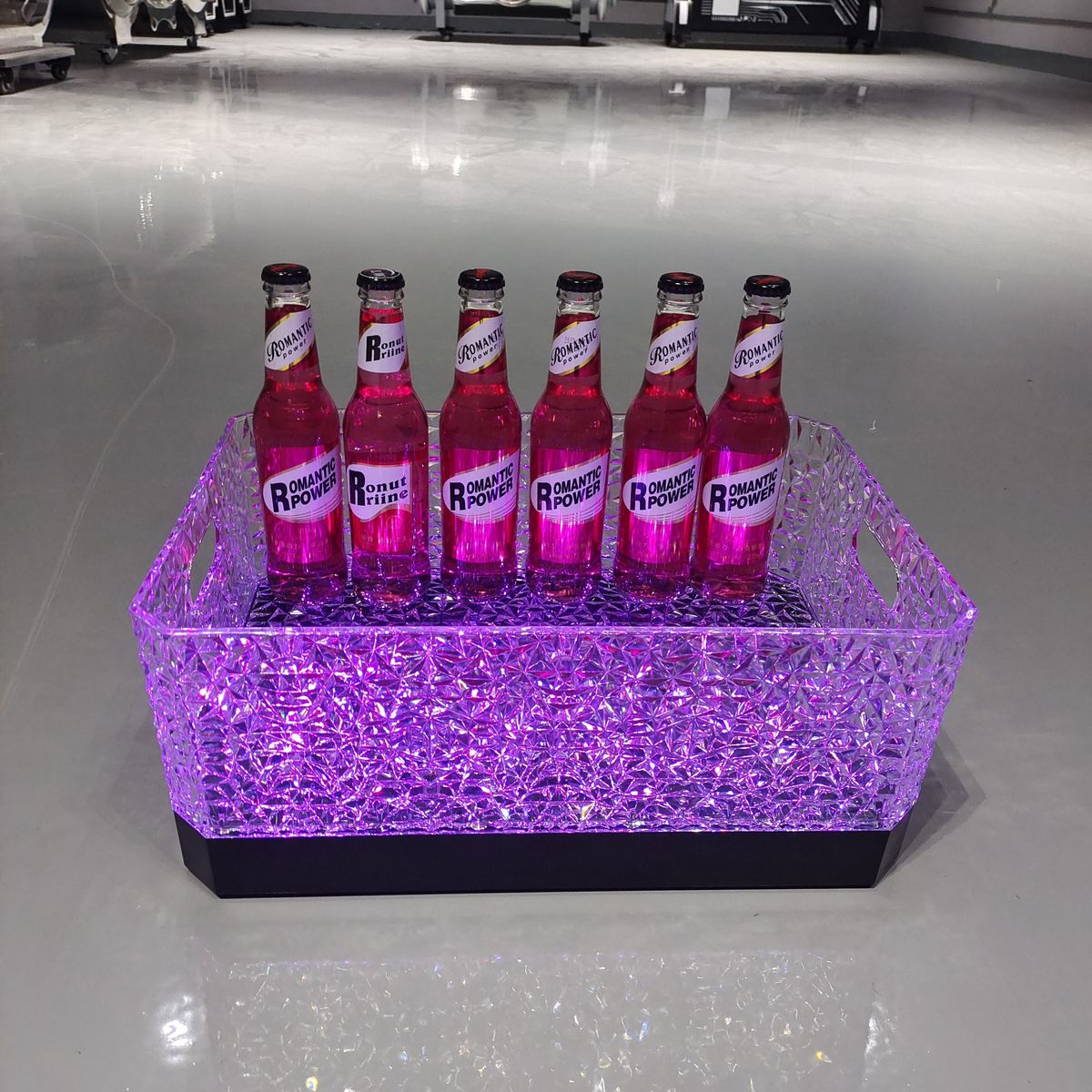 Fantasy bar luminous wine frame V beer basket champagne bucket E luminous ice bucket ice pattern pc anti-fall 24-pack black bottom injection molded wine frame