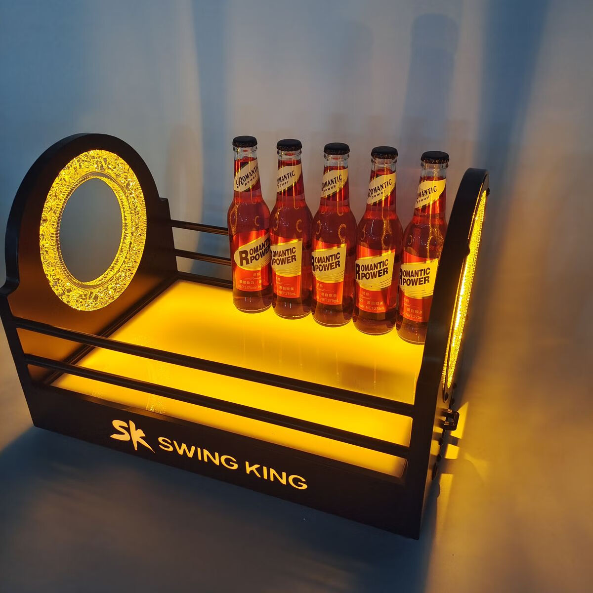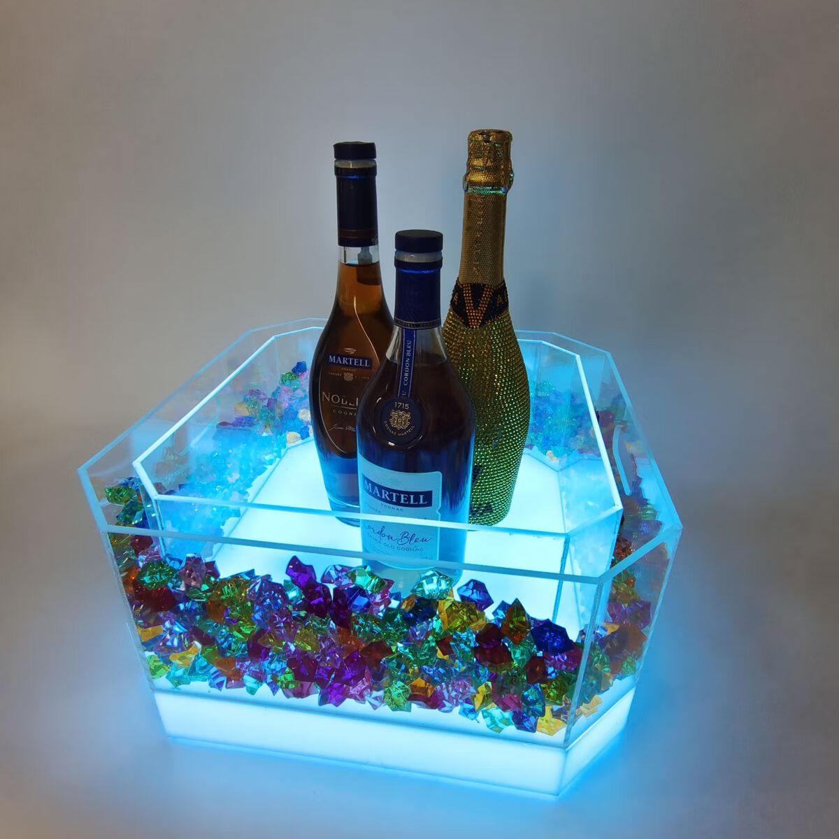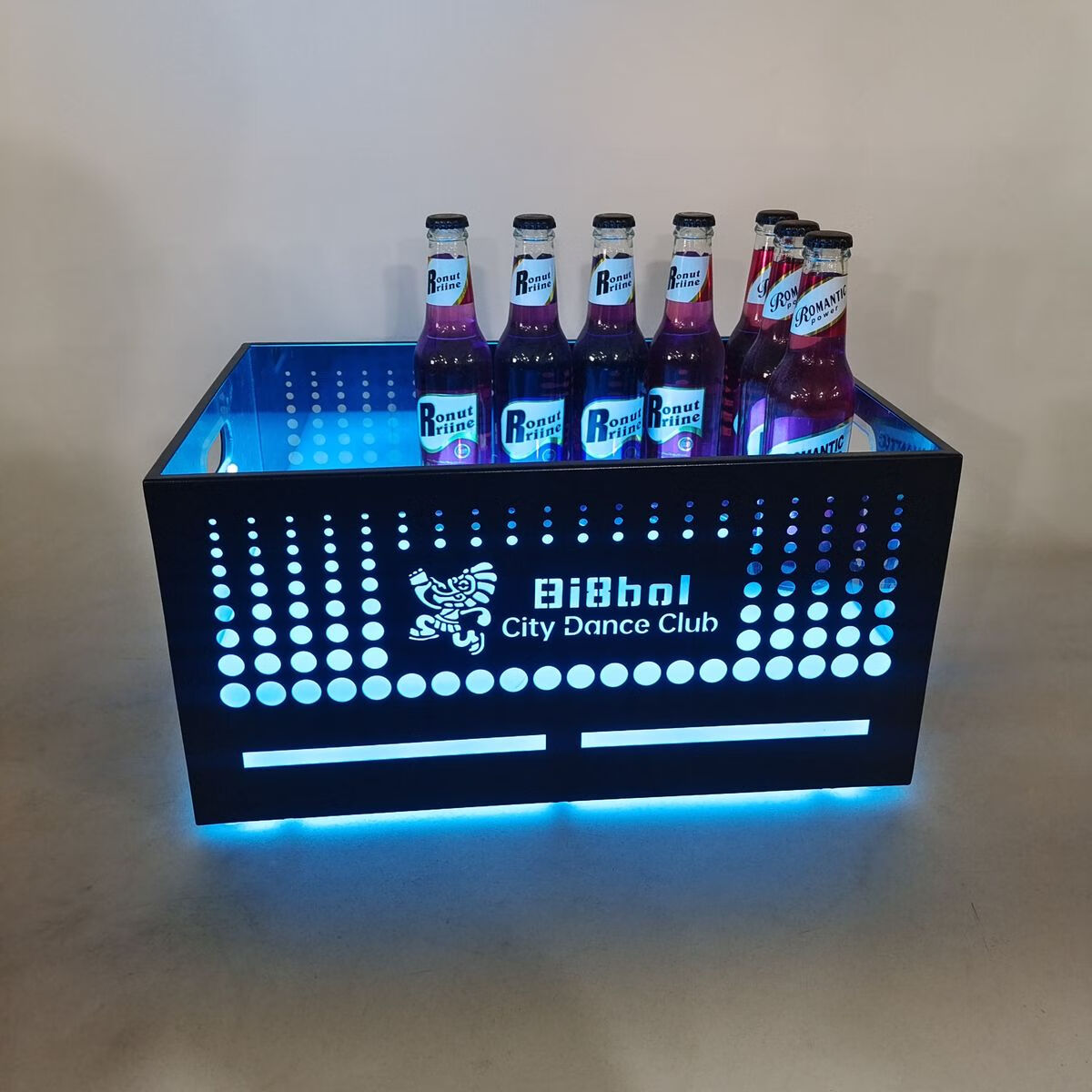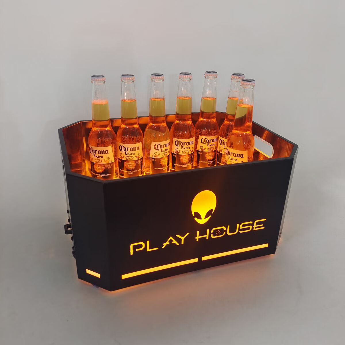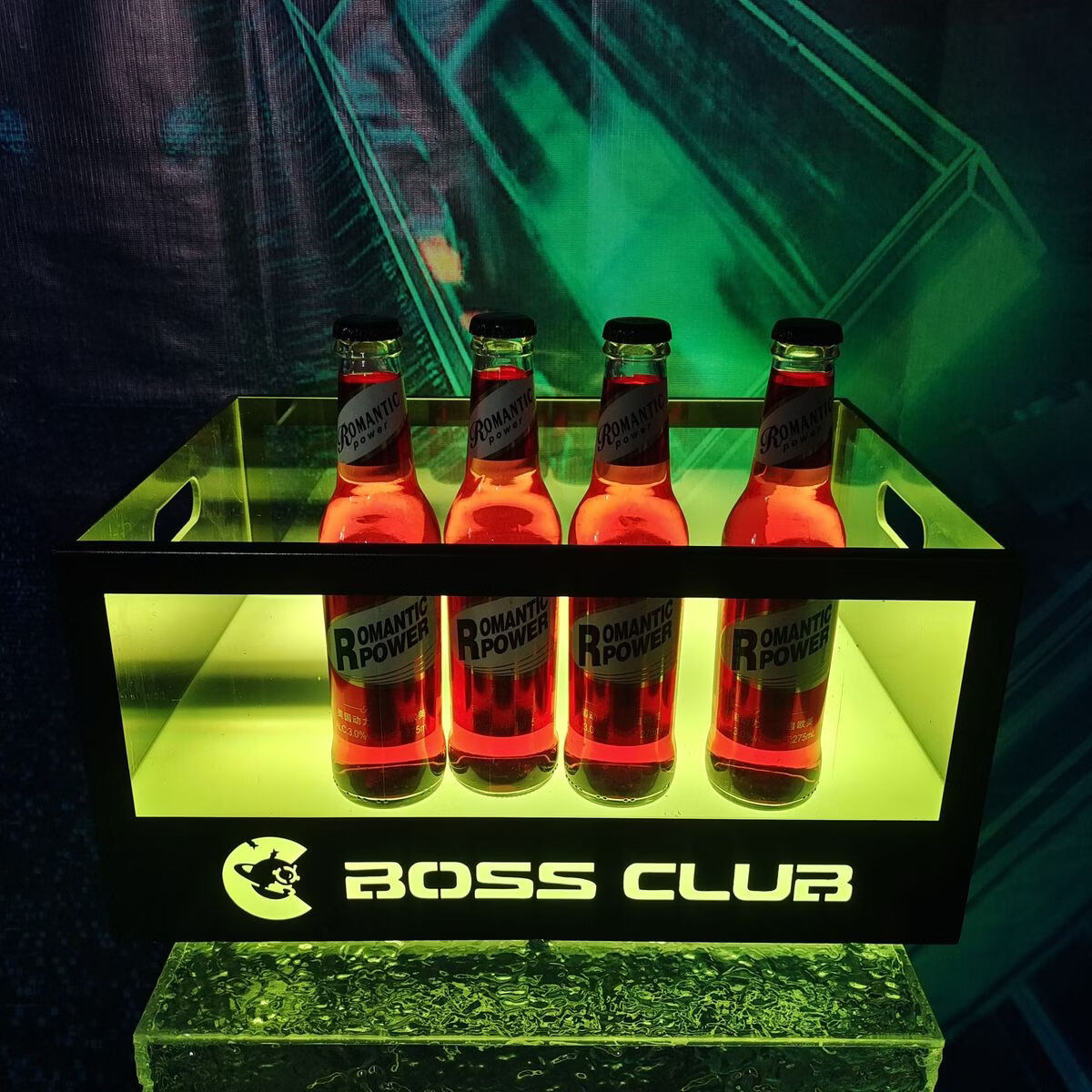 Fantasy bar luminous wine frame V beer basket champagne bucket E luminous ice bucket ice pattern pc anti-fall 24-pack black bottom injection molded wine frame