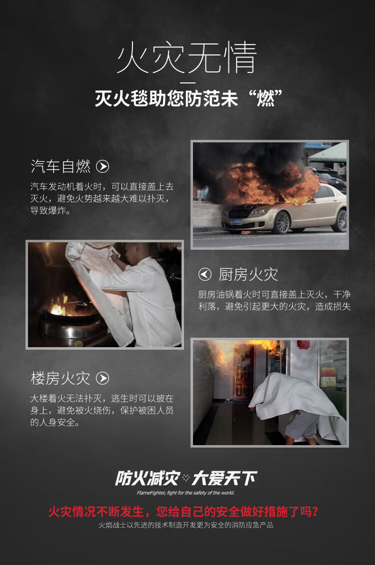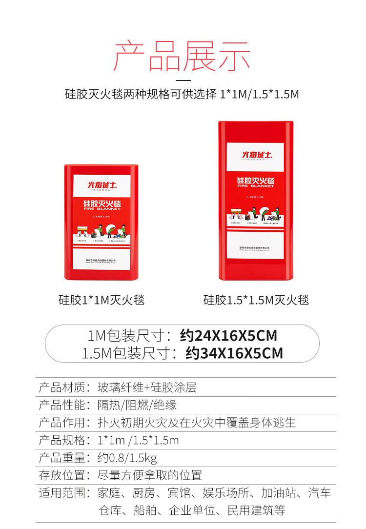 Flame Warrior Fire Blanket Fire Blanket Fire Extinguisher Supporting Home Home Kitchen Factory 1.5m/1m Glass Fiber 1*1m