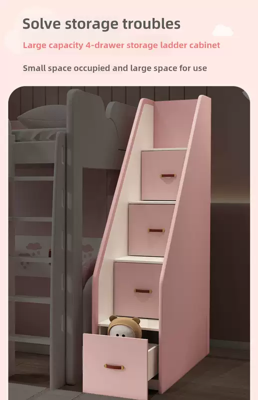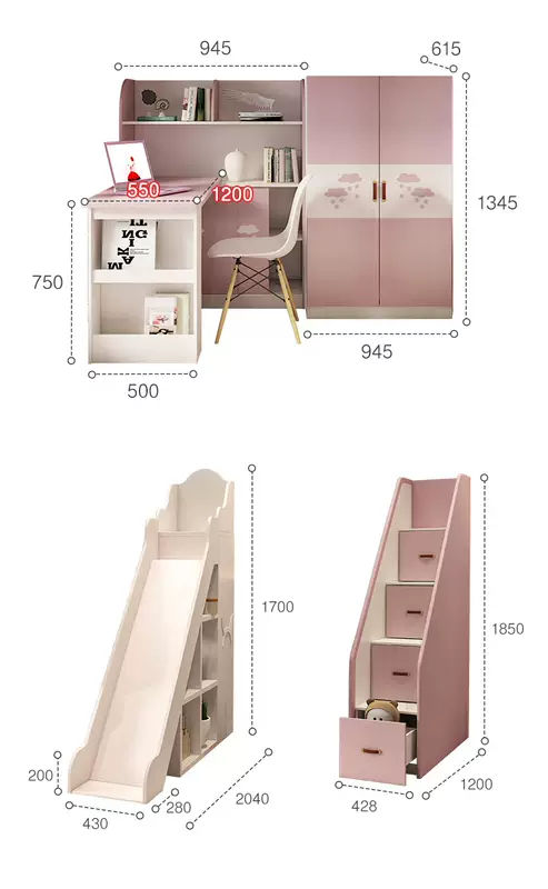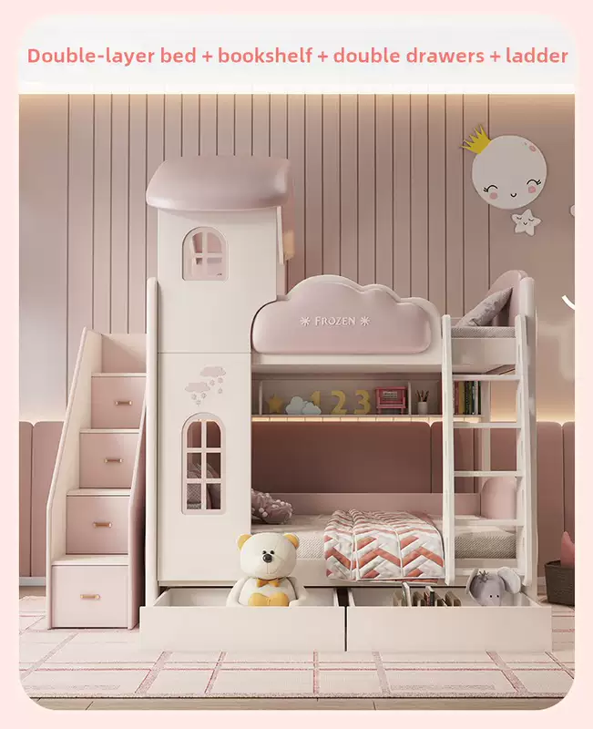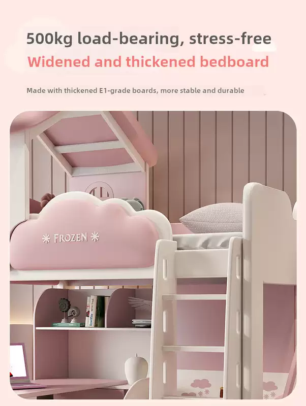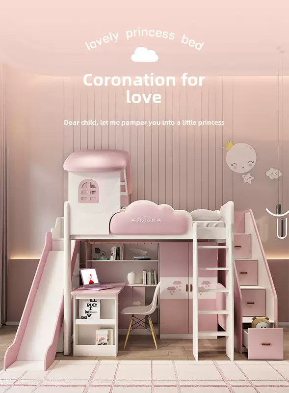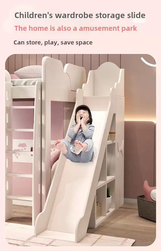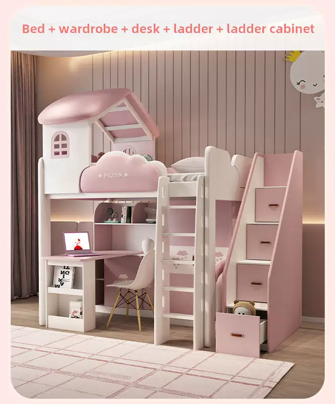 Yusenyi children's bed, under bed, table and bunk bed, girl princess bunk bed combination bunk bed, two-story small apartment bunk bed, upper bed-hanging ladder-bookcase desk-bookcase more combinations +1500mmx1900mm