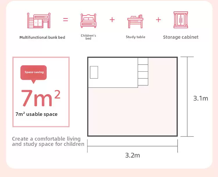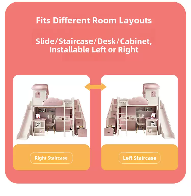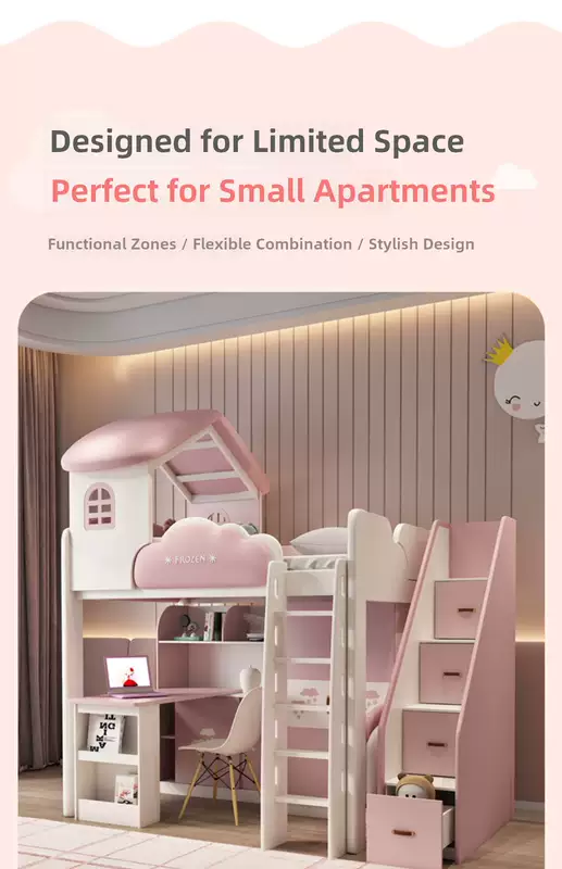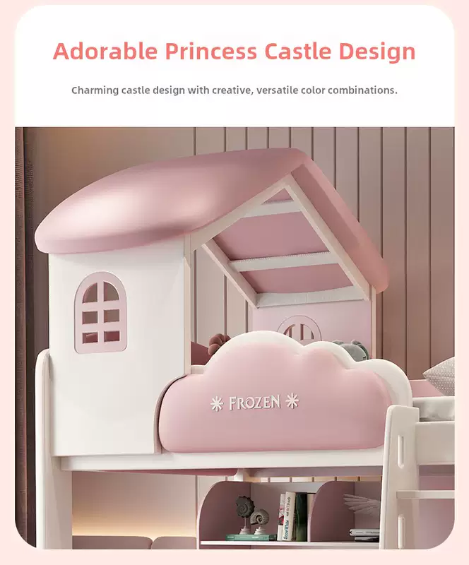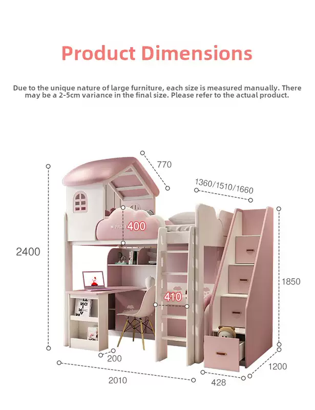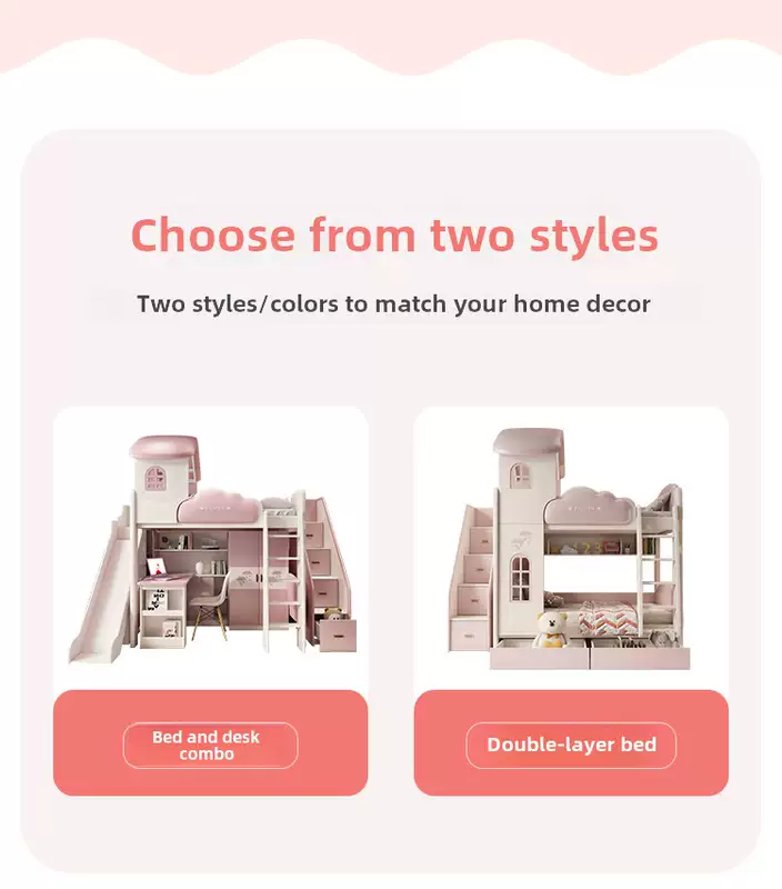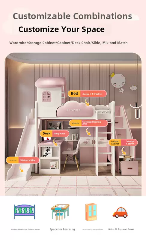 Yusenyi children's bed, under bed, table and bunk bed, girl princess bunk bed combination bunk bed, two-story small apartment bunk bed, upper bed-hanging ladder-bookcase desk-bookcase more combinations +1500mmx1900mm