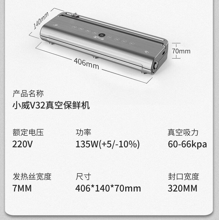Willin Xiaowei Xiaowei double pump vacuum sealing machine small household commercial food preservation packaging machine plastic sealing fully automatic sealing upgrade single pump with cutter + can pump water + 7MM heating wire + 32CM sealing comes with 2 meter roll bag +
