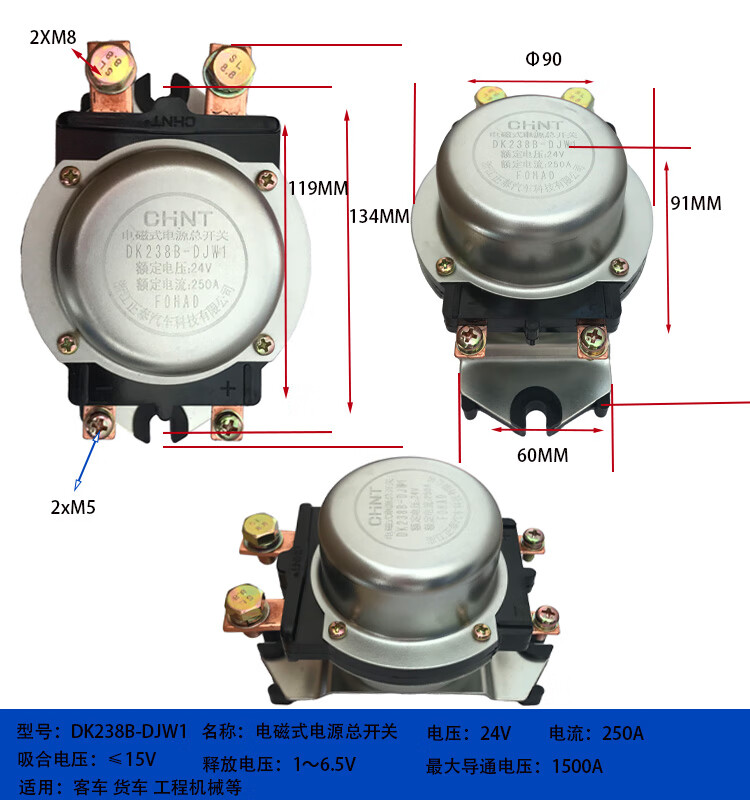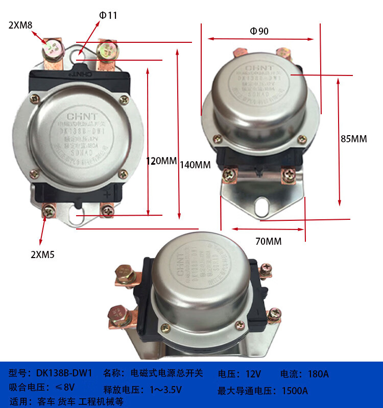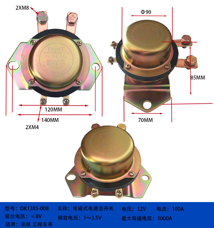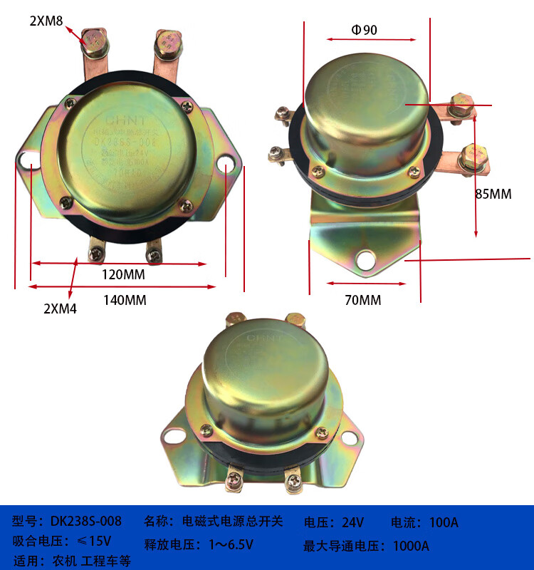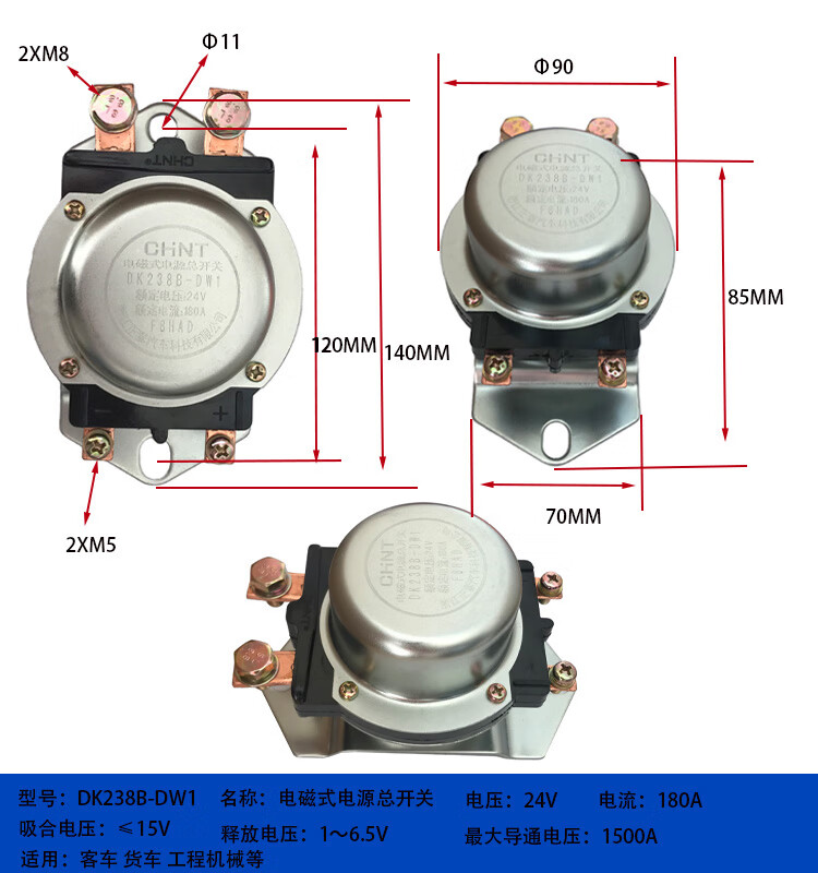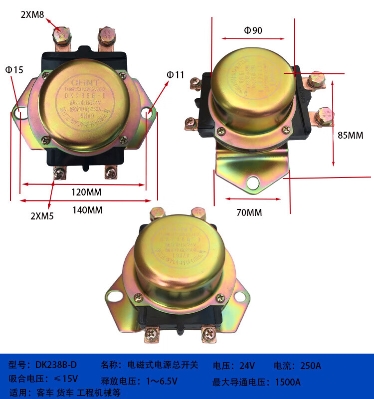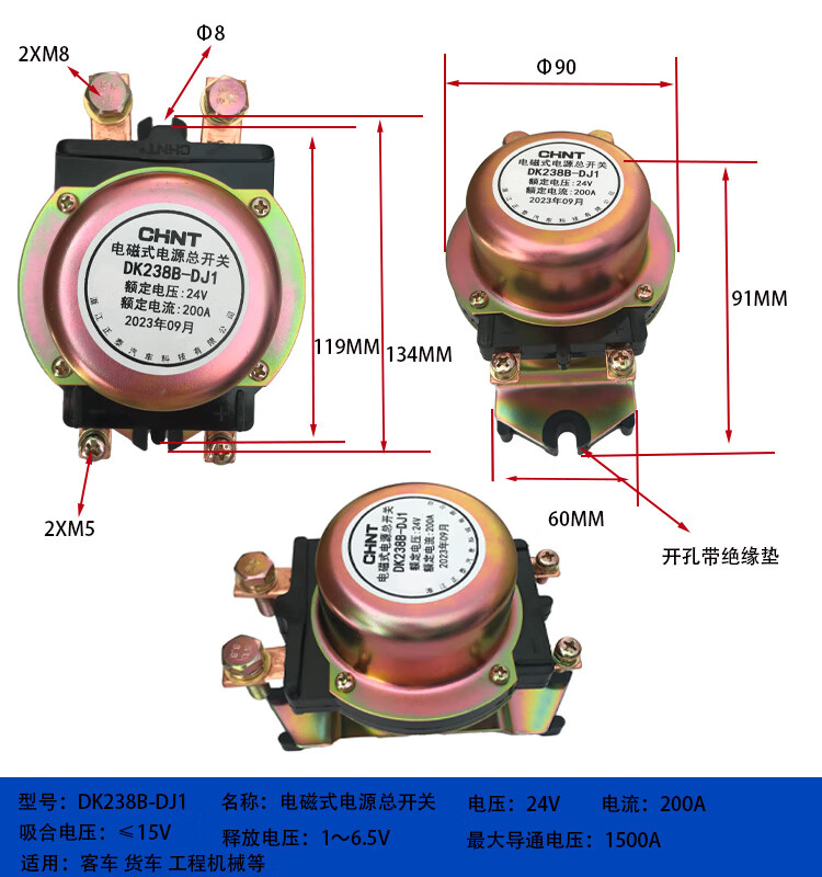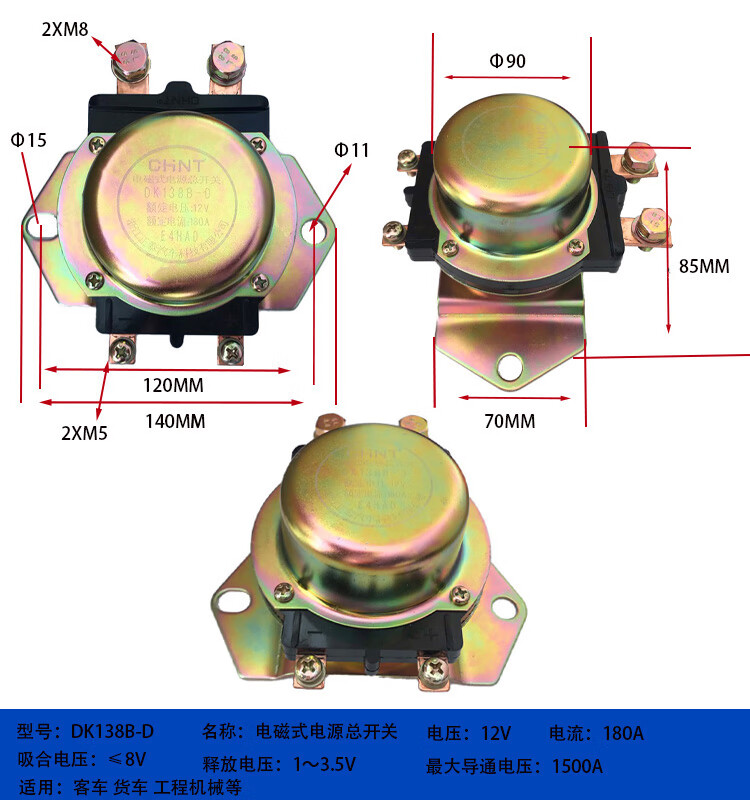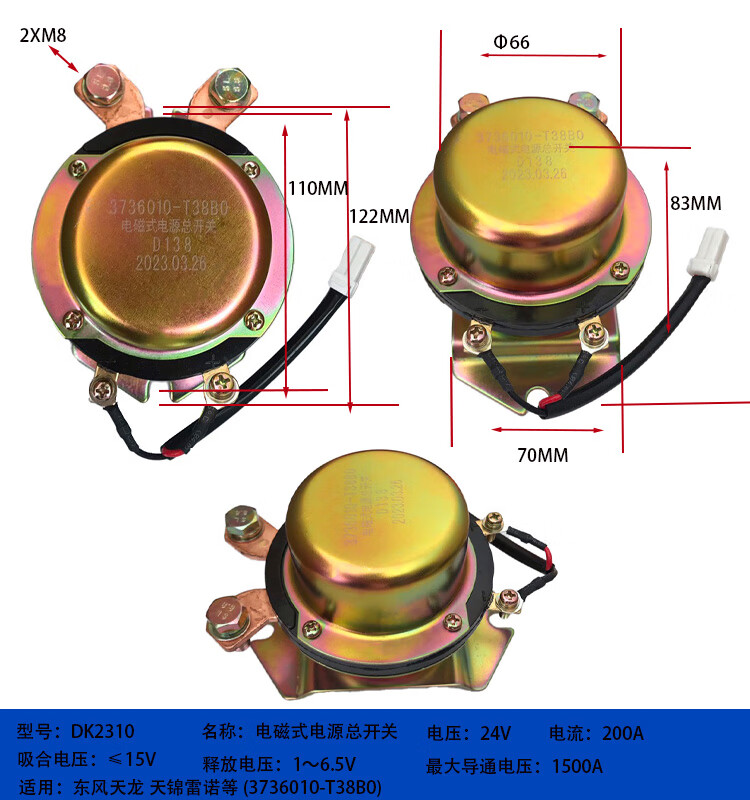 Automobile electromagnetic power main switch DK238DK138B24V 12V battery anti-leakage main switch DK138B-DJ1_200A_12V_silver contact