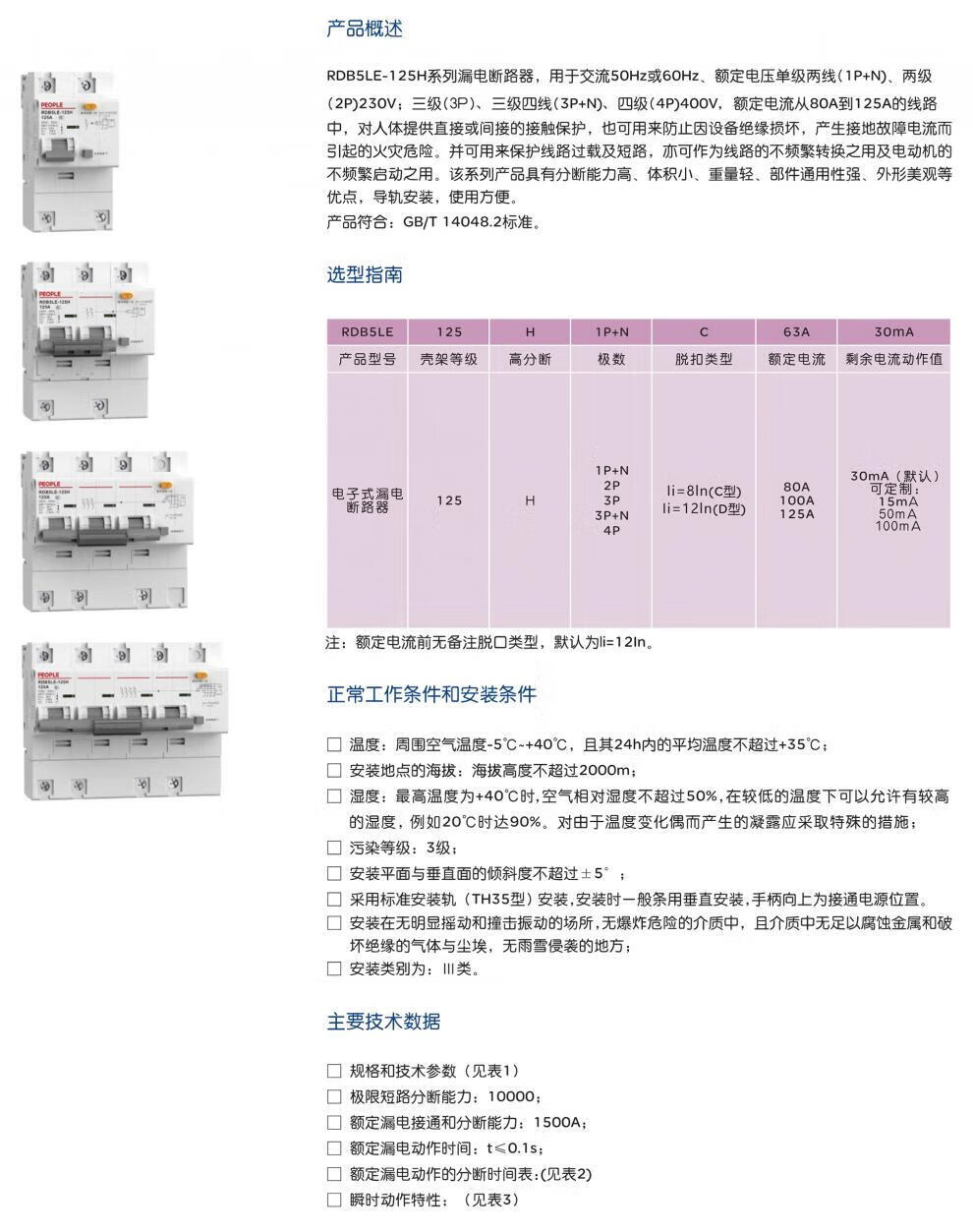 People's Electrical Appliances Leakage Circuit Breaker-125 80/100a High Current Leakage Protection Switch Main Gate 4p 125A