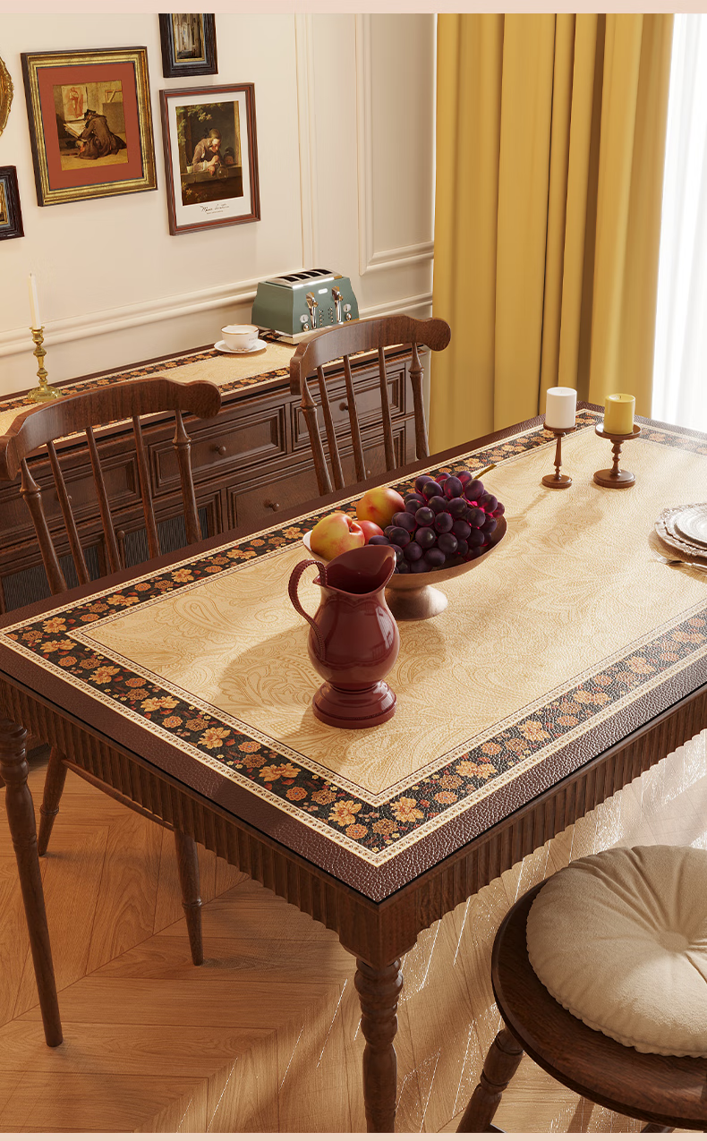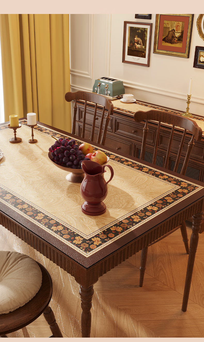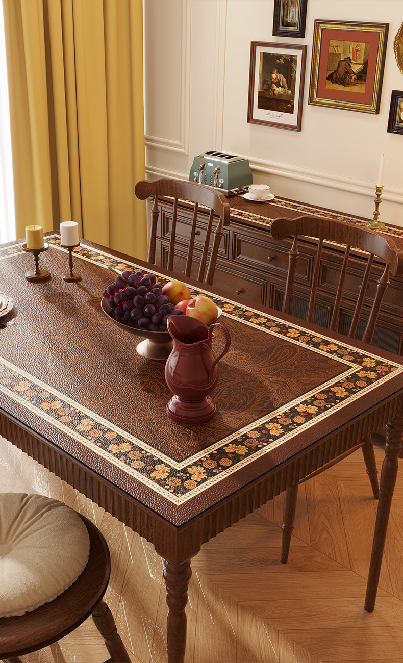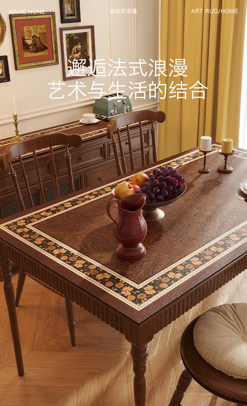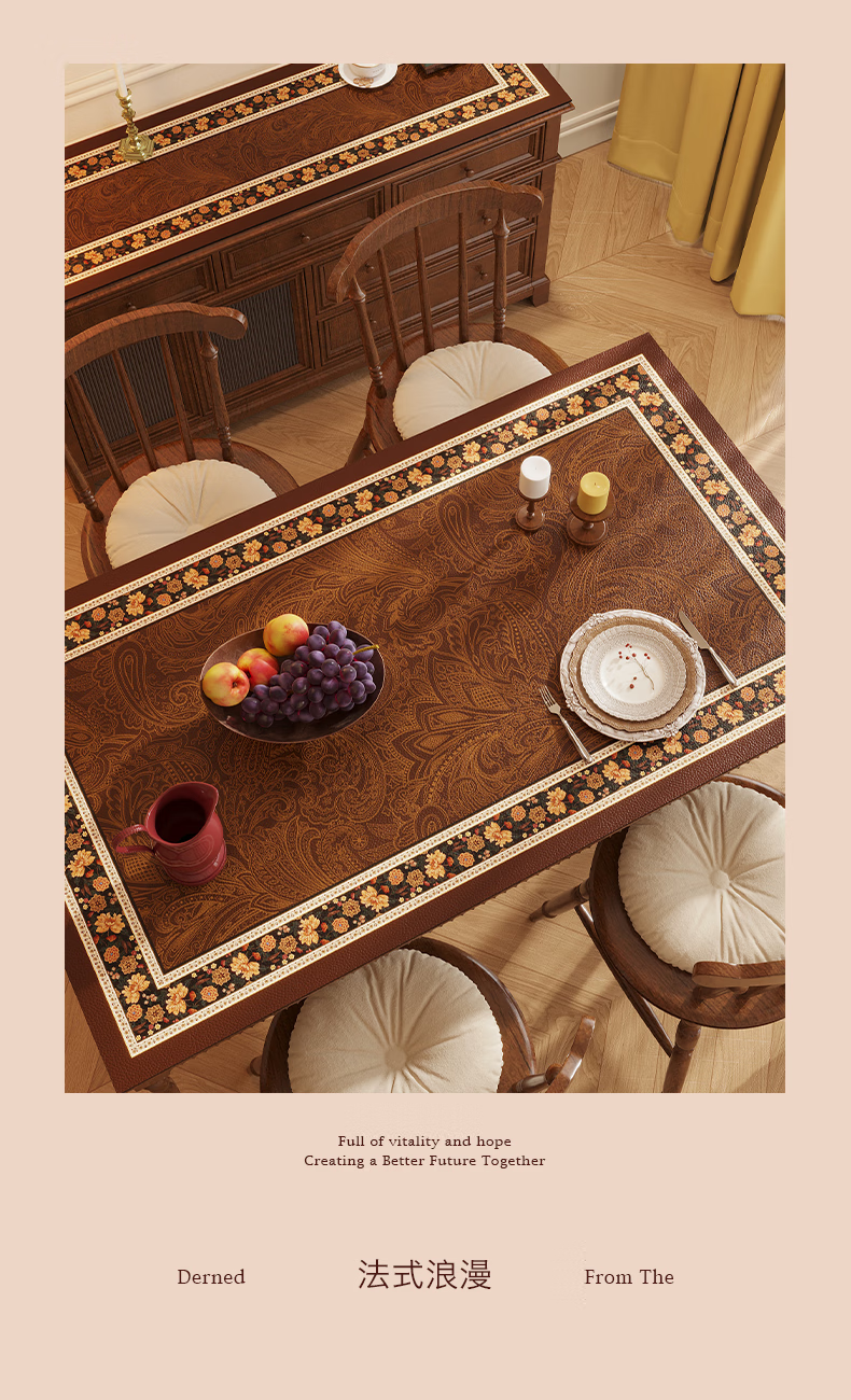Sailotou retro leather table mat, light luxury dining table mat, waterproof, oil-proof, anti-scalding, no-wash table mat, American coffee table mat, Palestine, waterproof, oil-proof, anti-scalding, 60*100cm
