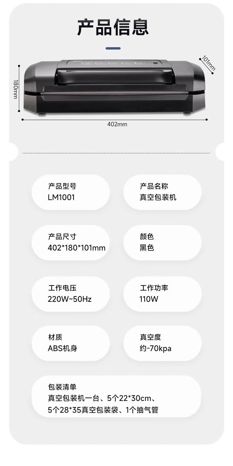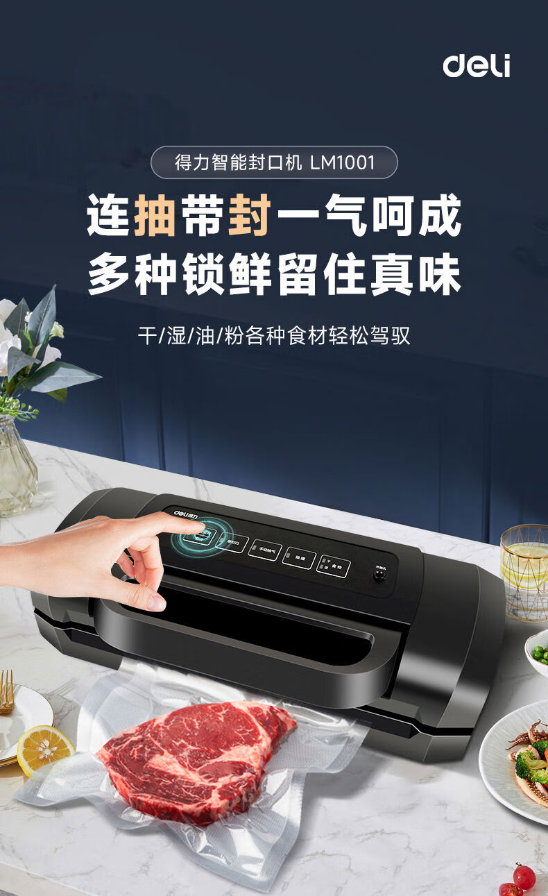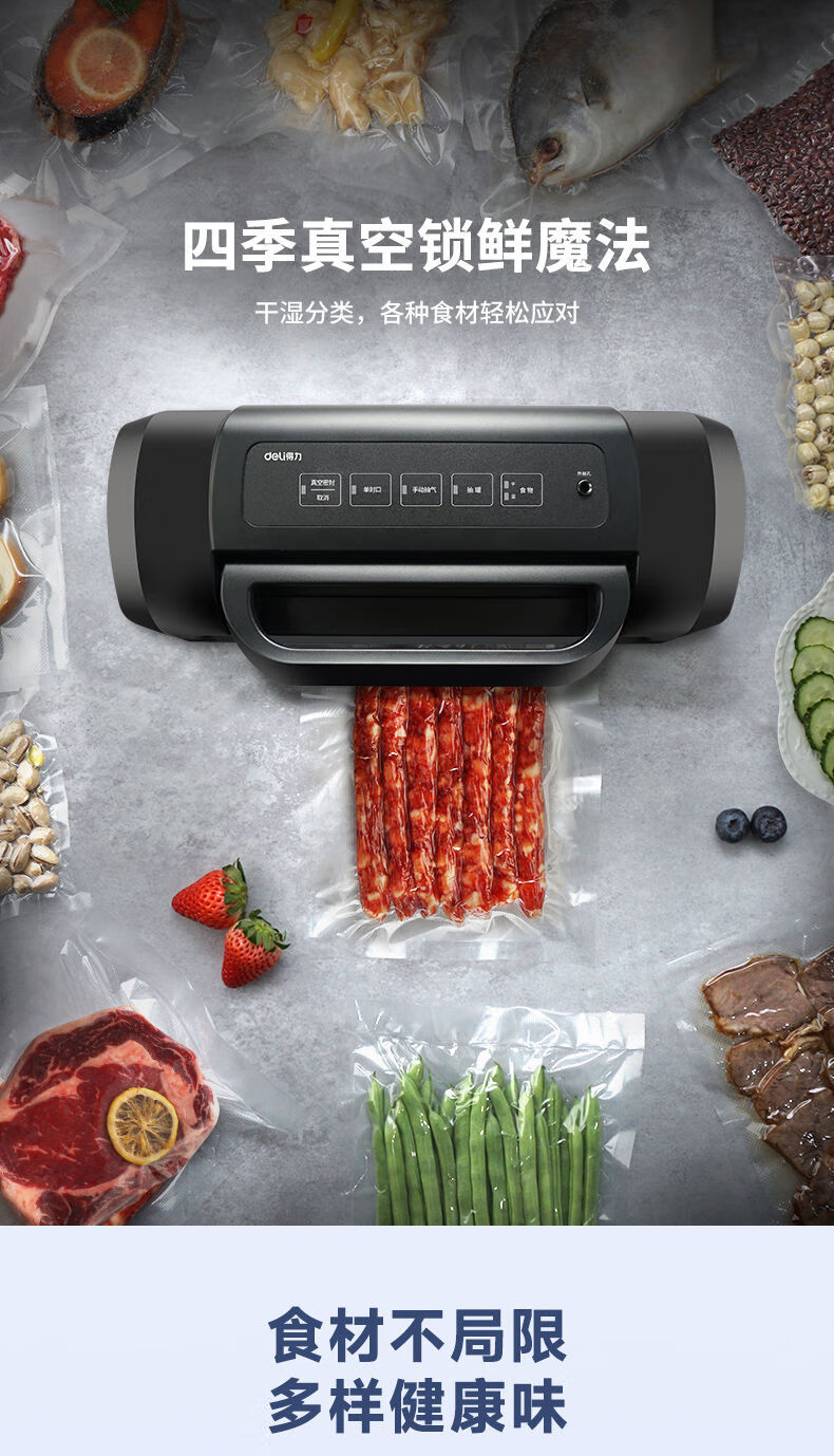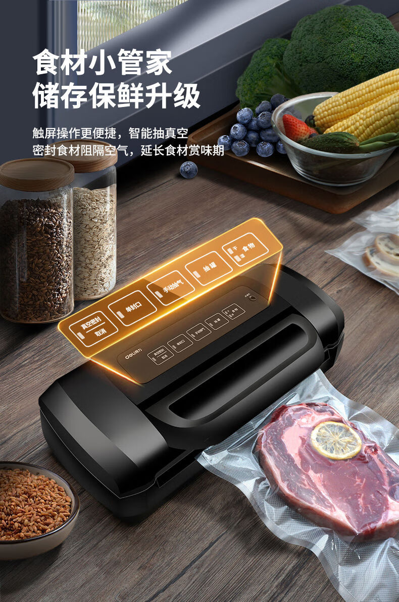 Fully automatic vacuum sealing machine fresh-keeping packaging bag commercial small household plastic sealing compressed food LM669 intelligent digital display screen knob control free 5 vacuum bags