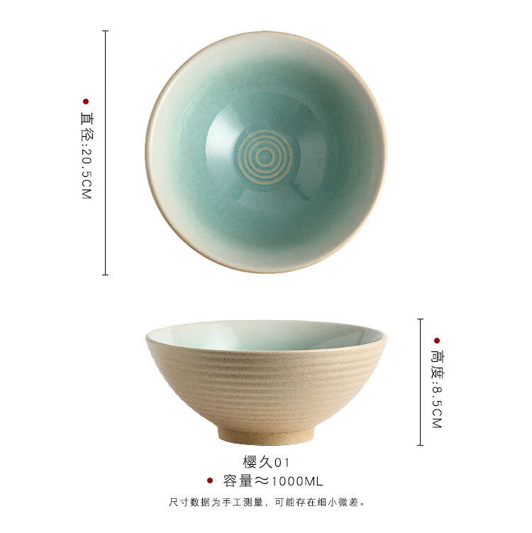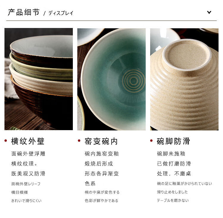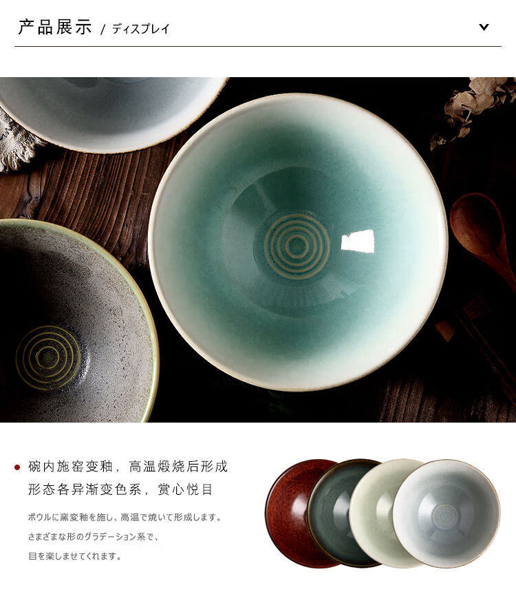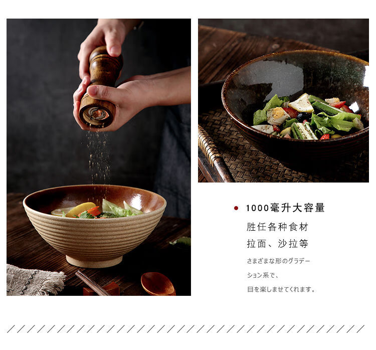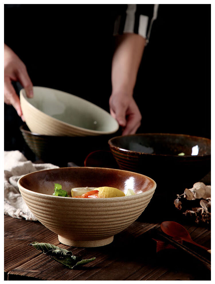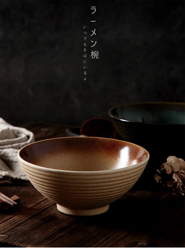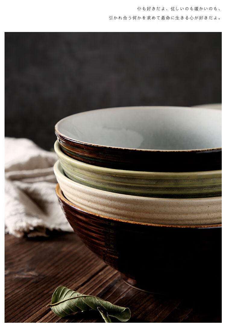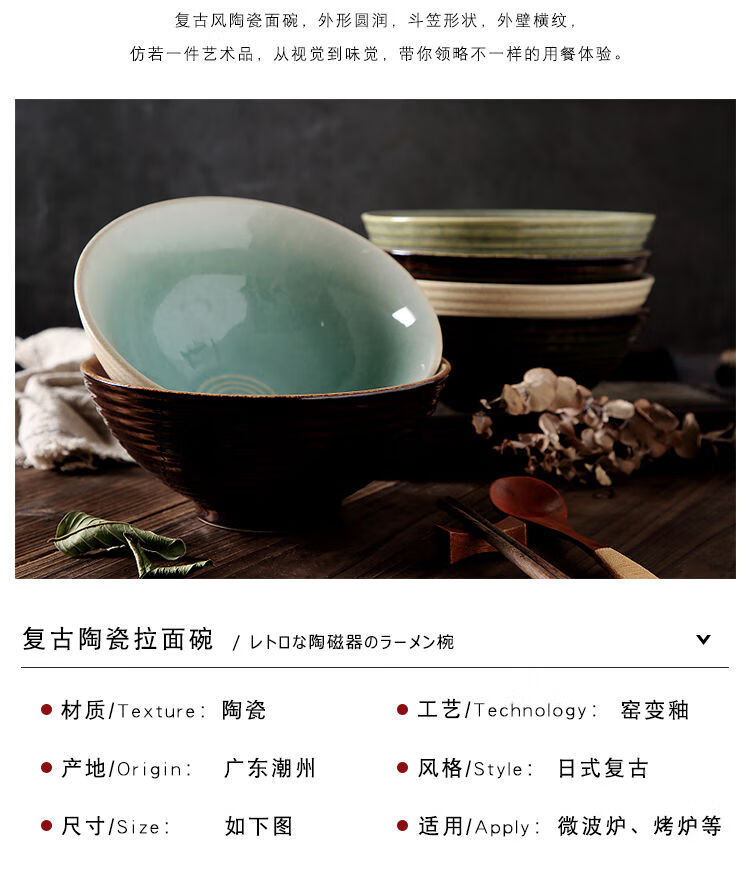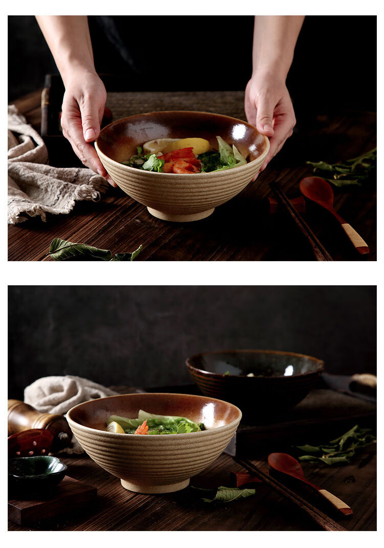 He Jiagong Qianwanjia Japanese-style large ramen bowl ceramic soup bowl household instant noodle bowl bamboo hat bowl retro kiln noodle bowl commercial Yingjiu-08