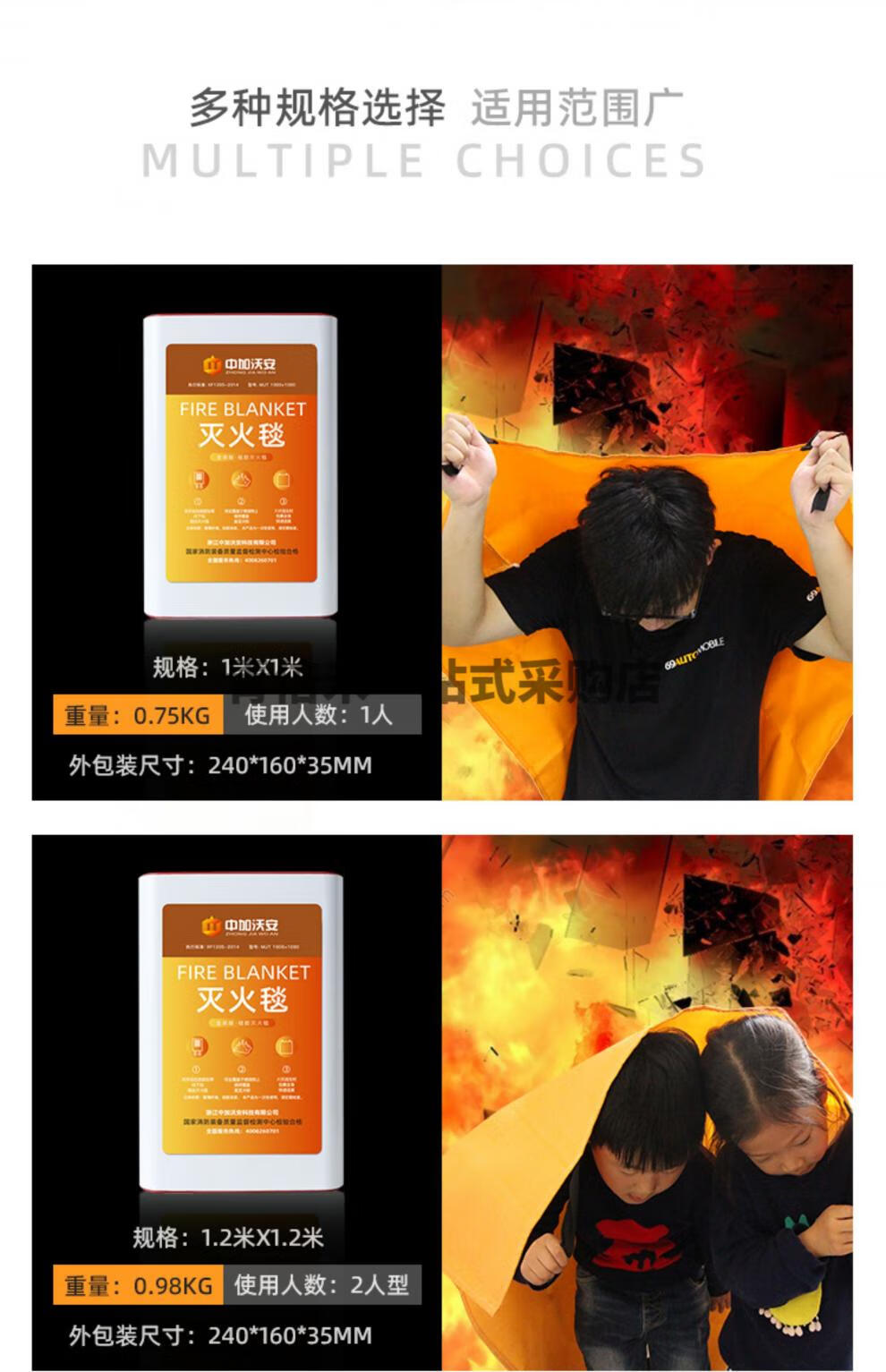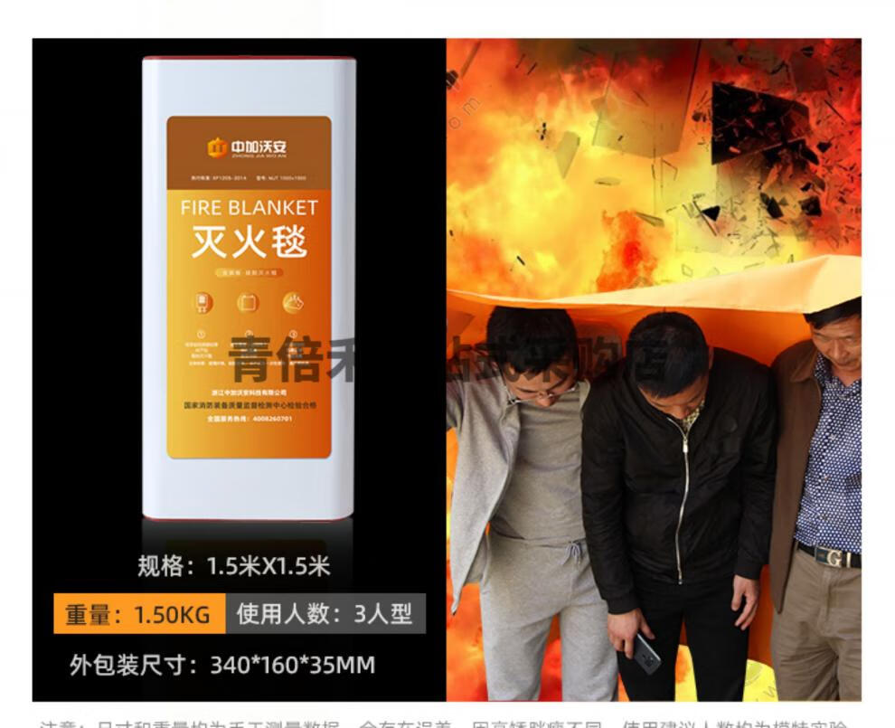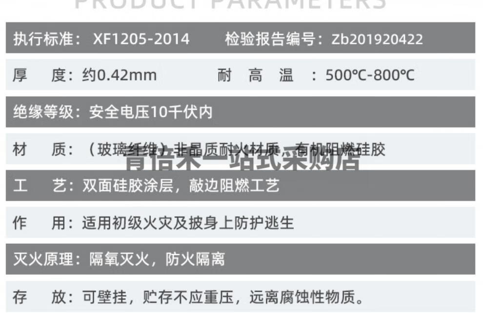 Zhongjia Woan Fire Blanket Household Fire Fighting Supplies Kitchen Commercial Fiberglass Silicone Fire Blanket Flame Retardant National Standard Fire Fighting Equipment EU CE Certified Silicone 1 Meter_National Standard