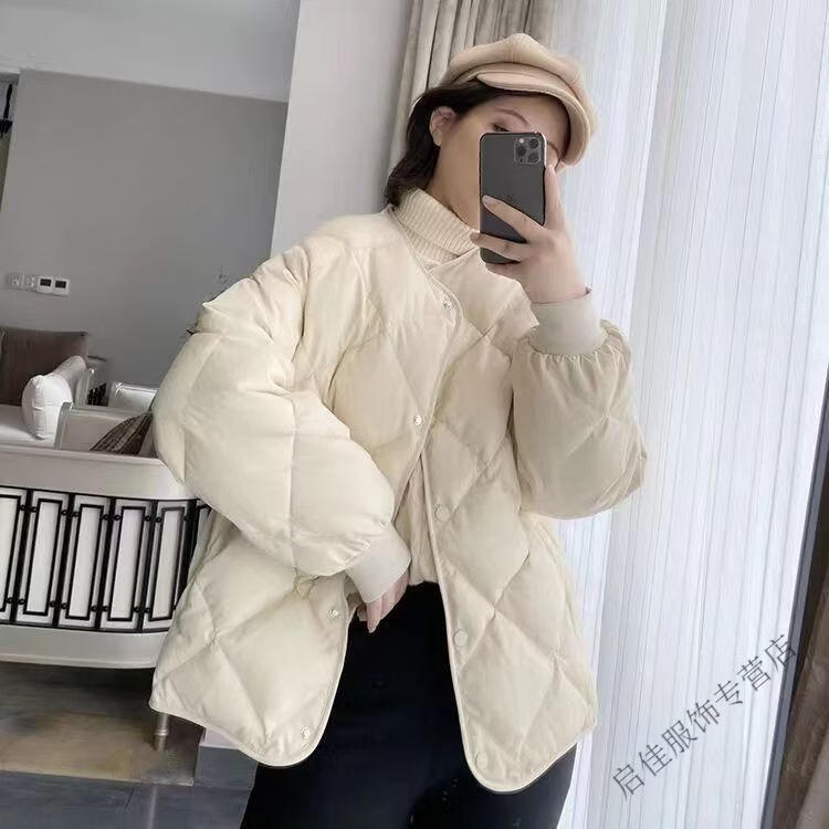 Chujing Maillard Lightweight Down Jacket Women's Short New Winter Thickened Collarless White Duck Down Small Jacket White S 90-120 Jin