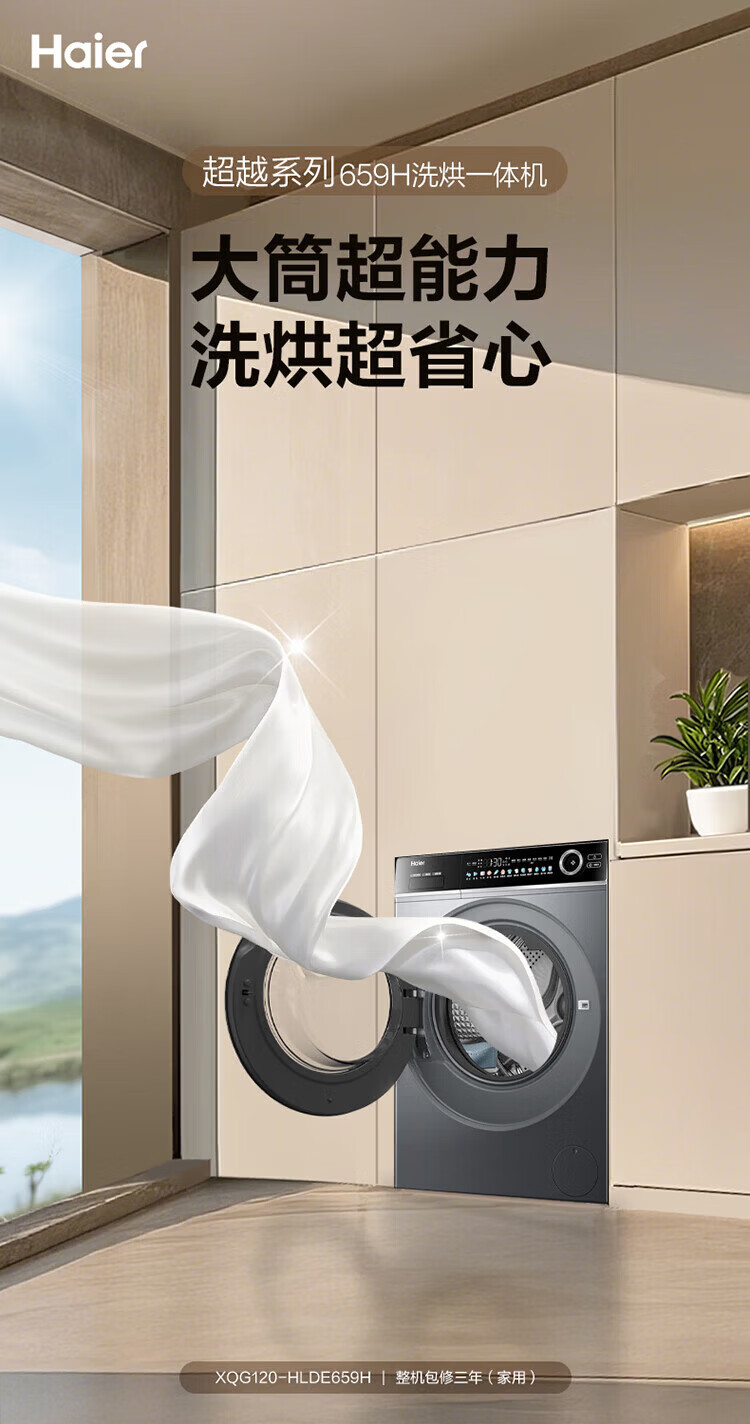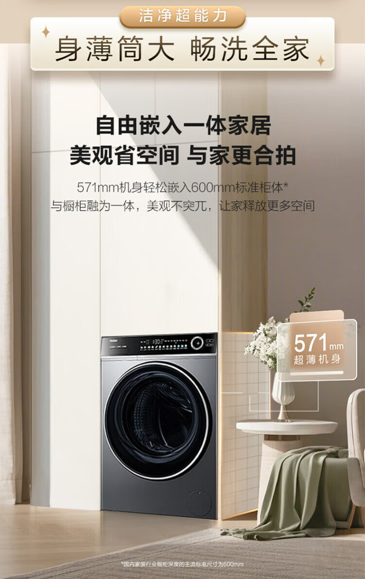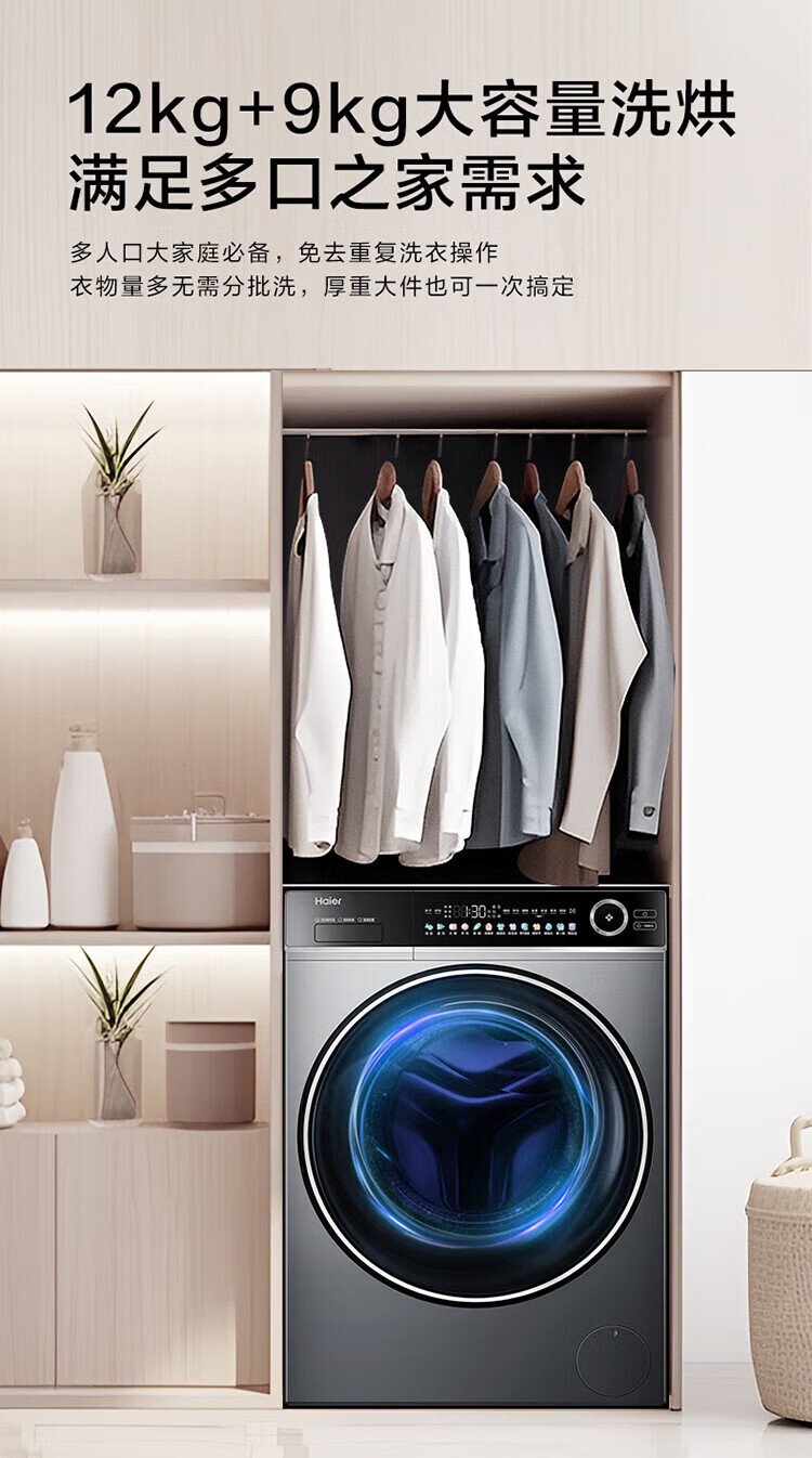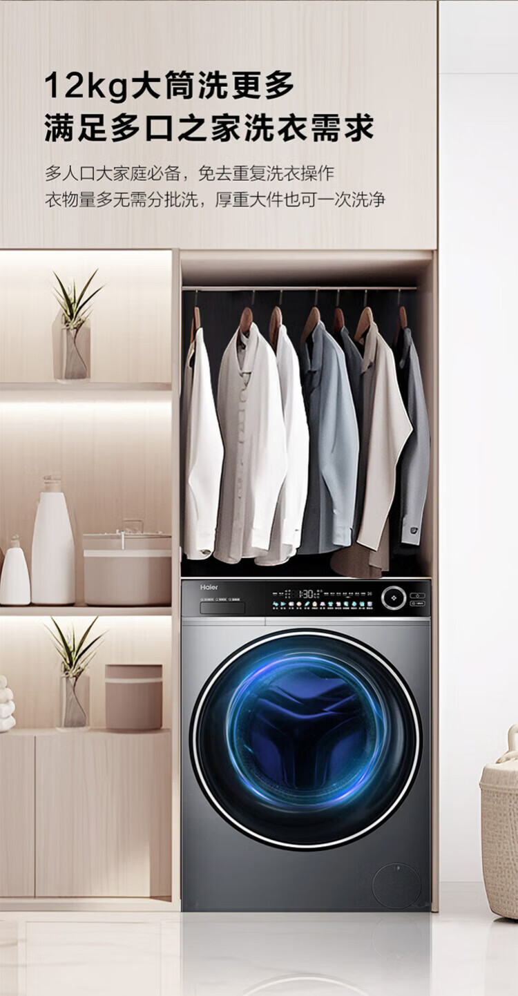 Haier (Haier) 4.0 Beyond 659H drum fully automatic washing machine 12kg ultra-large capacity 2.0 essence wash ultra-thin fully flat embedded AI smart home appliance subsidy 15% off 659H single wash | 1.21 high net ratio + smart investment + 2.0 essence wash
