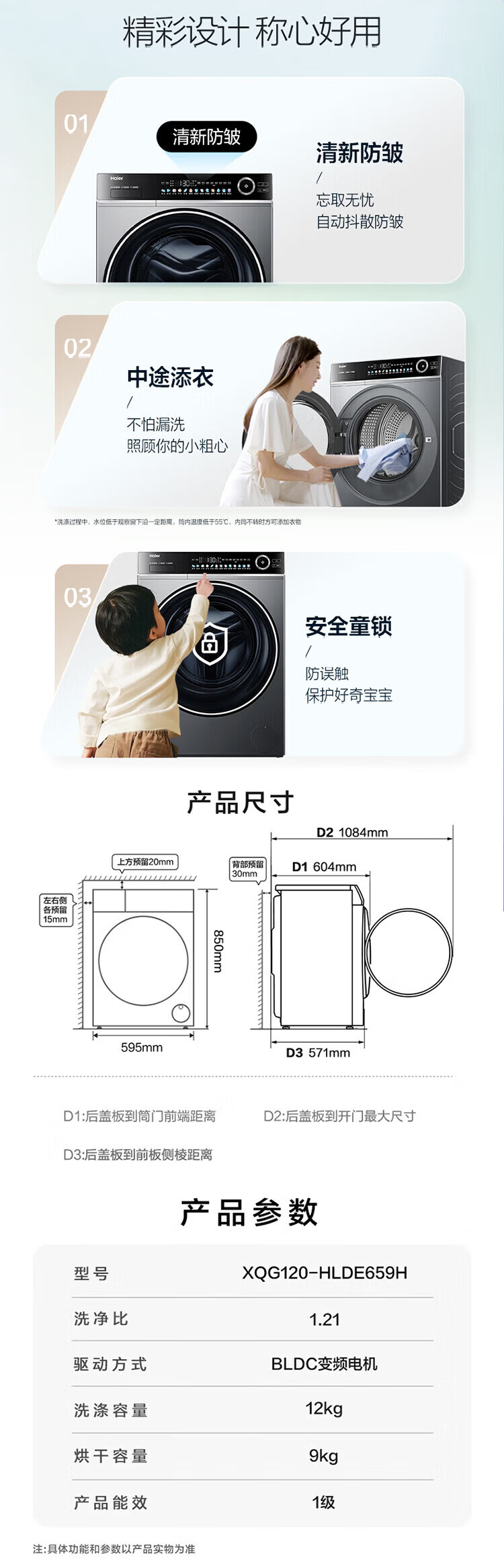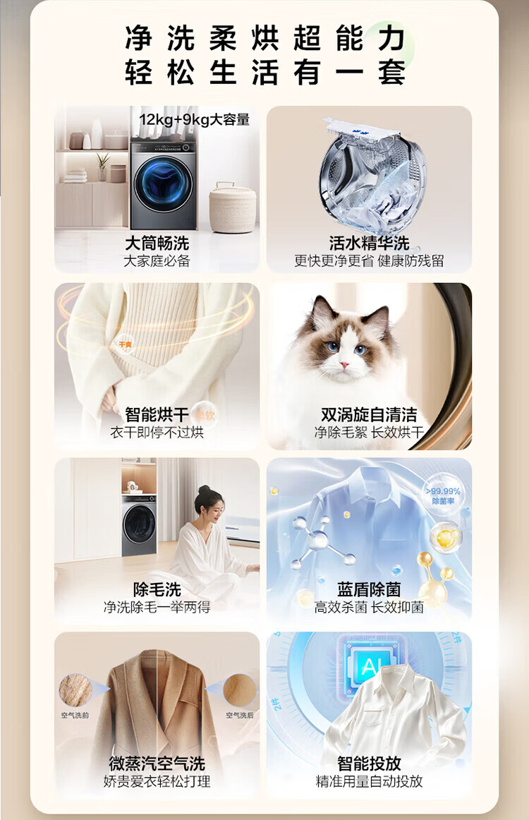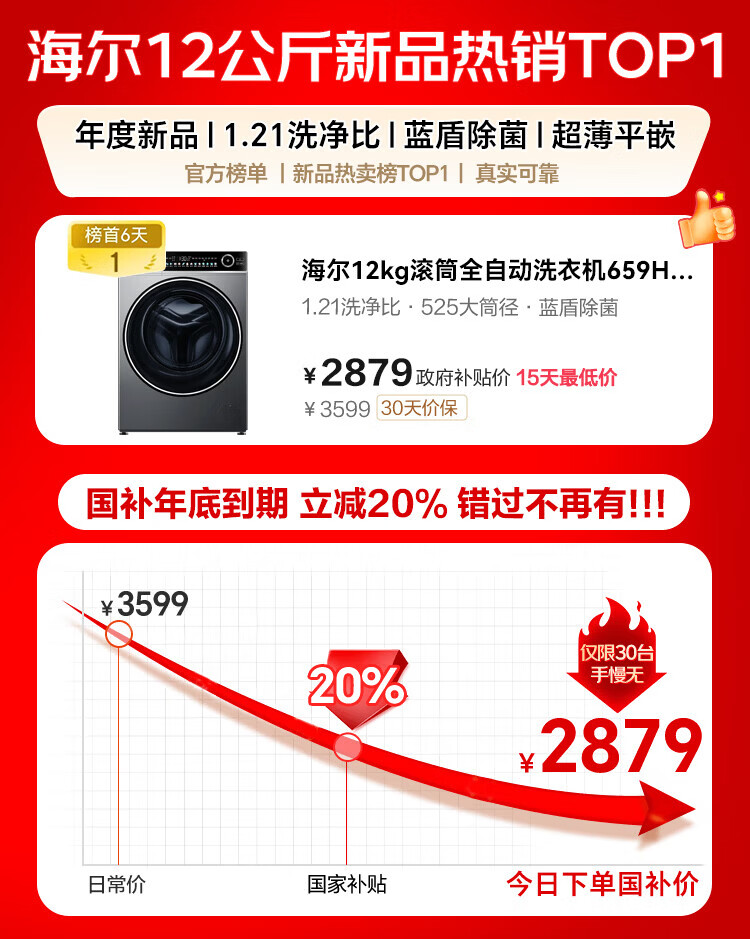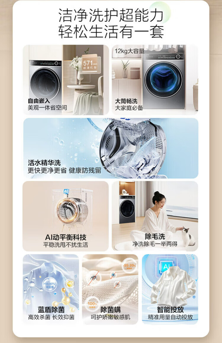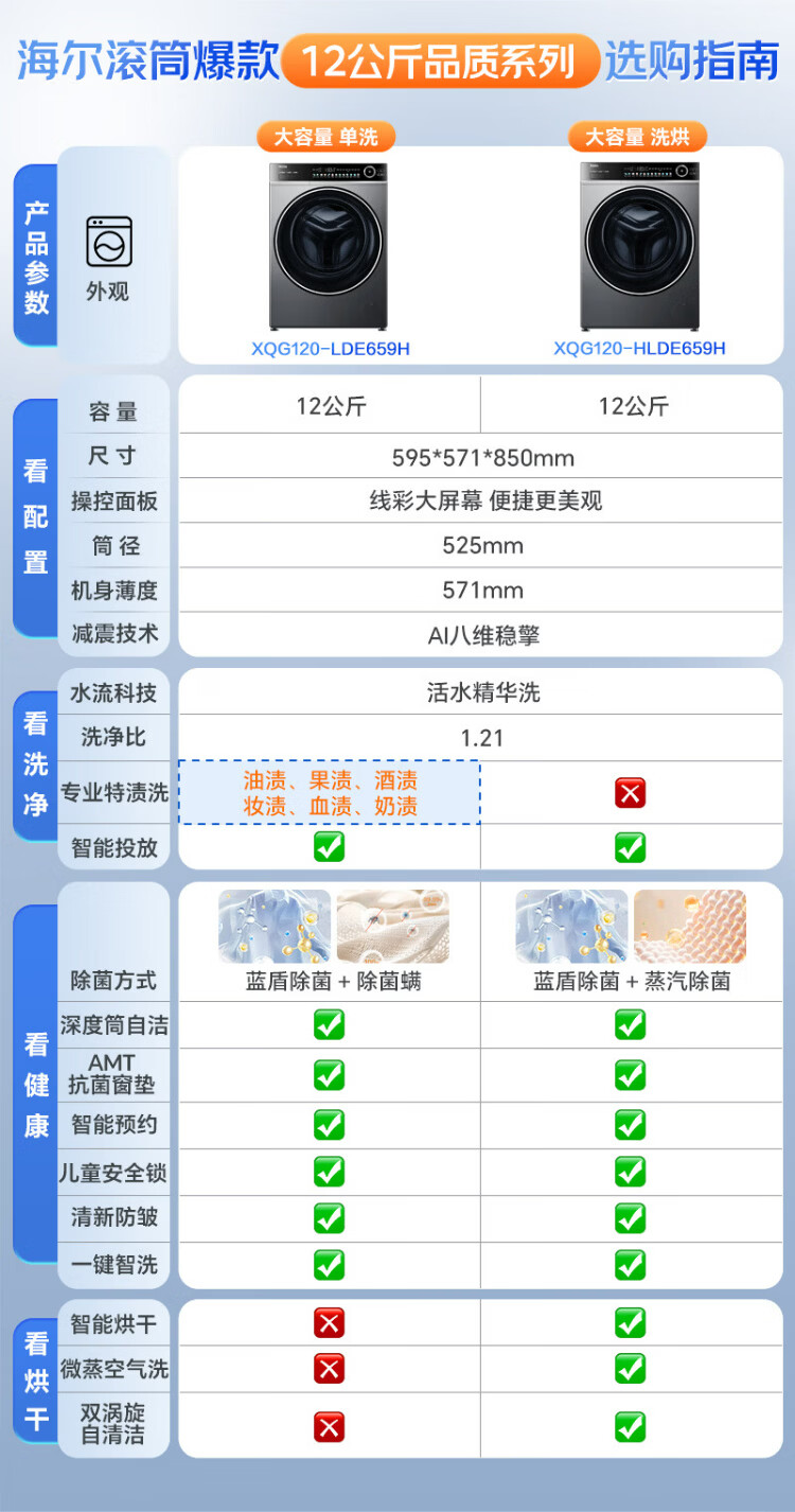 Haier (Haier) 4.0 Beyond 659H drum fully automatic washing machine 12kg ultra-large capacity 2.0 essence wash ultra-thin fully flat embedded AI smart home appliance subsidy 15% off 659H single wash | 1.21 high net ratio + smart investment + 2.0 essence wash
