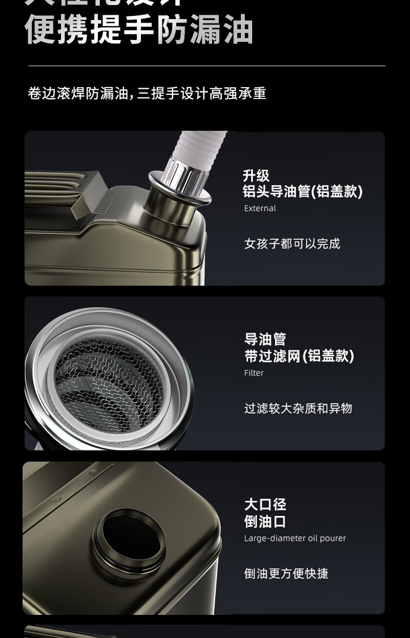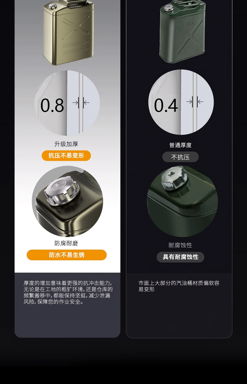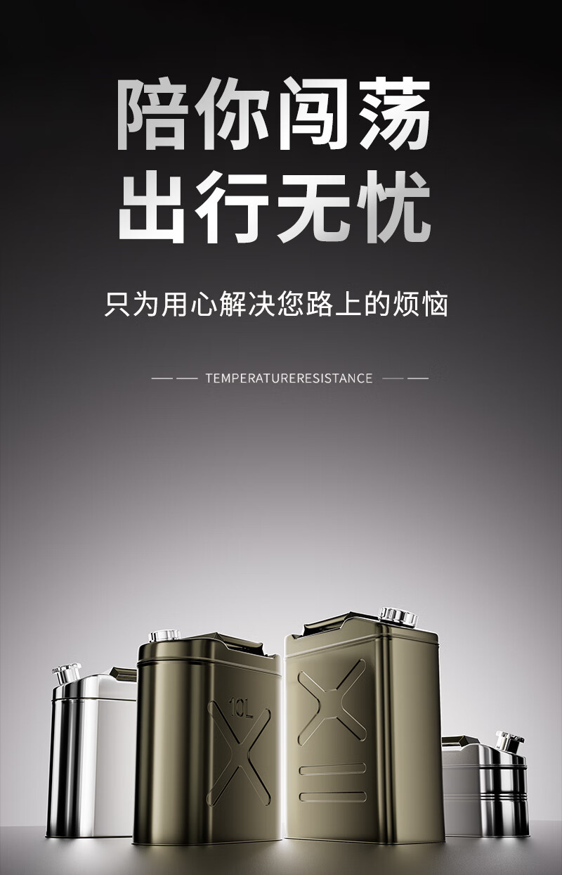 Thickened car spare fuel tank, household emergency rescue oil barrel, gasoline barrel, self-driving diesel barrel, military industry丨Thickened iron cover, vertical 10L oil delivery pipe